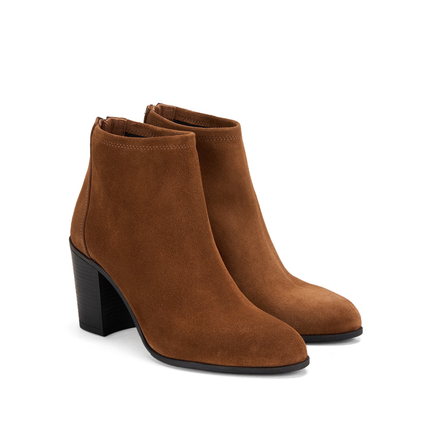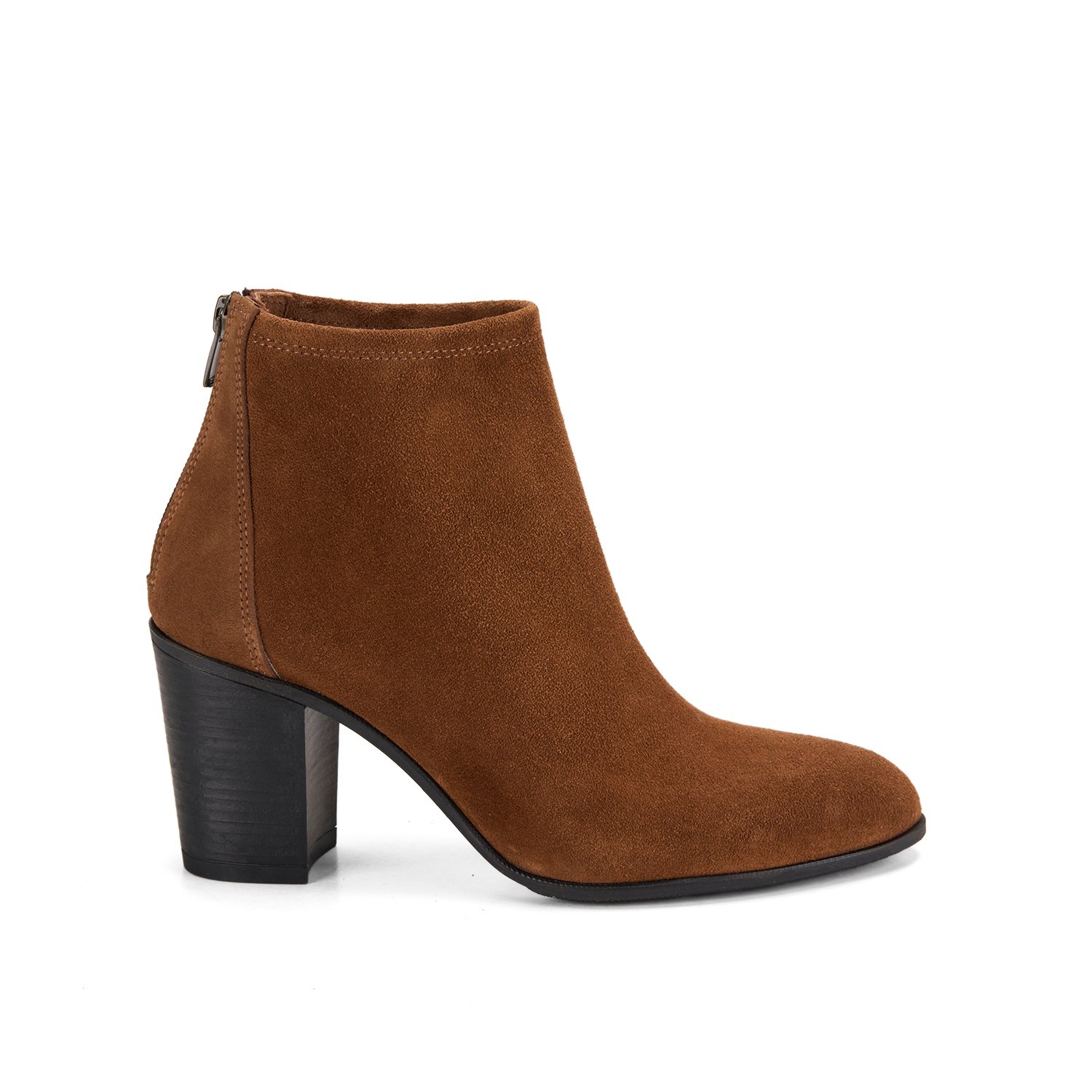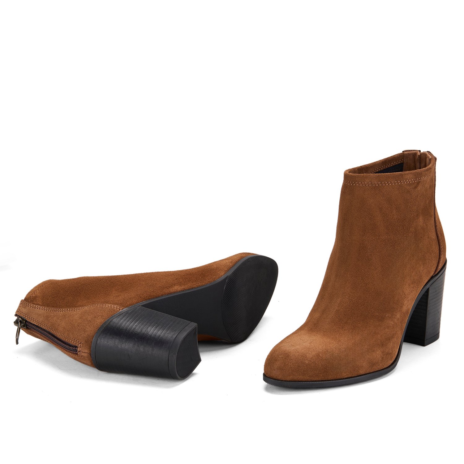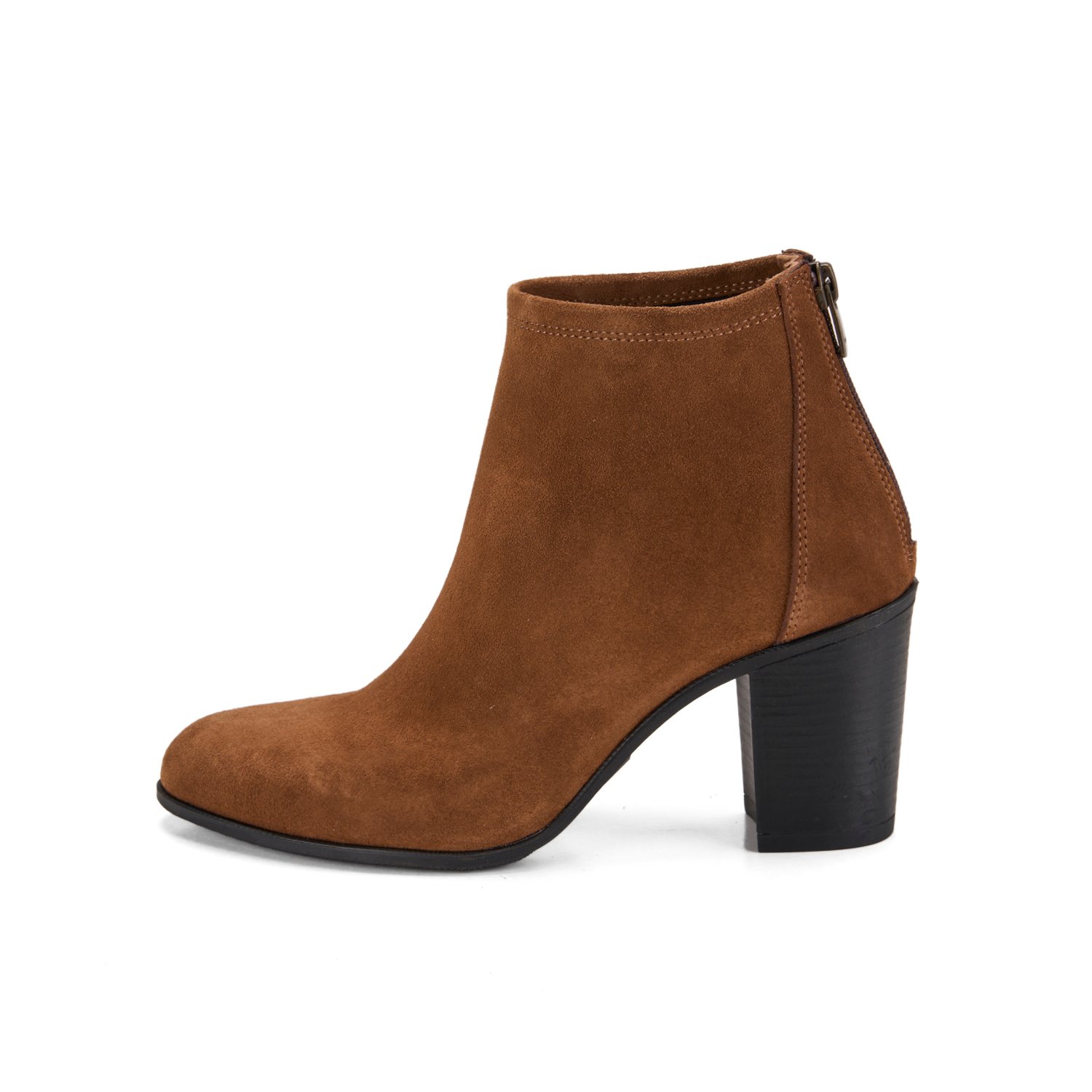 Kadın Taba Fermuarlı Topuklu Süet Bot