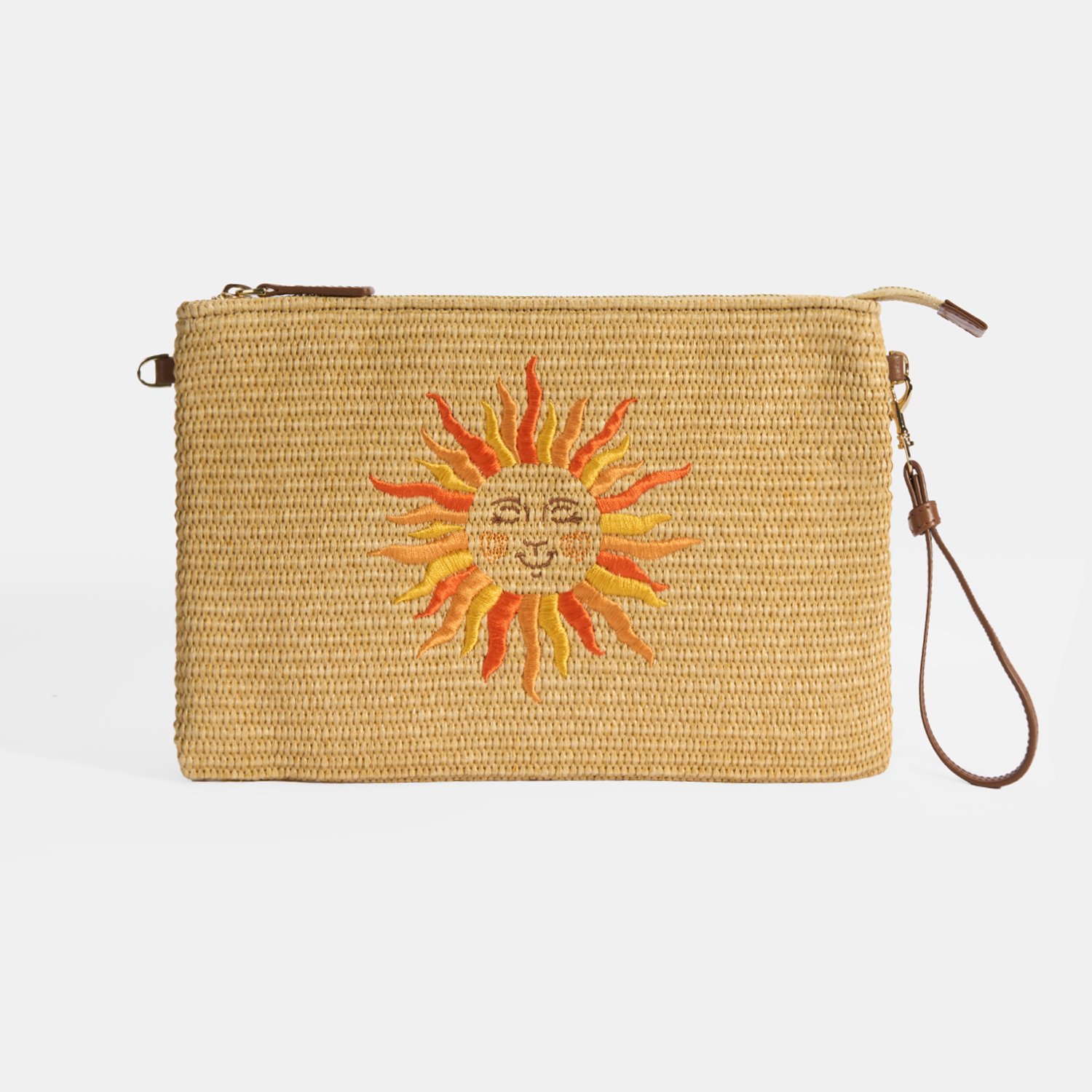 Kadın Taba Güneş Nakışlı Hasır Clutch