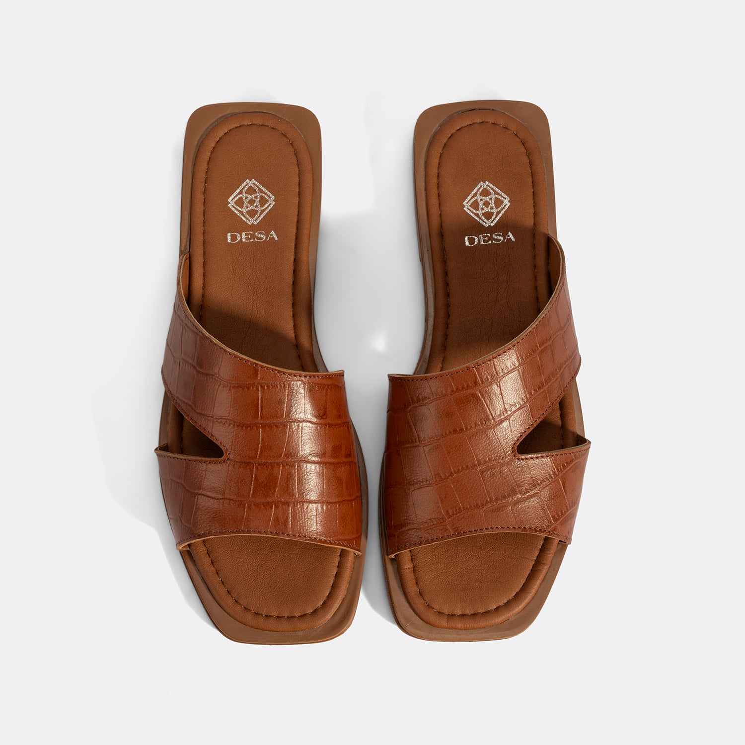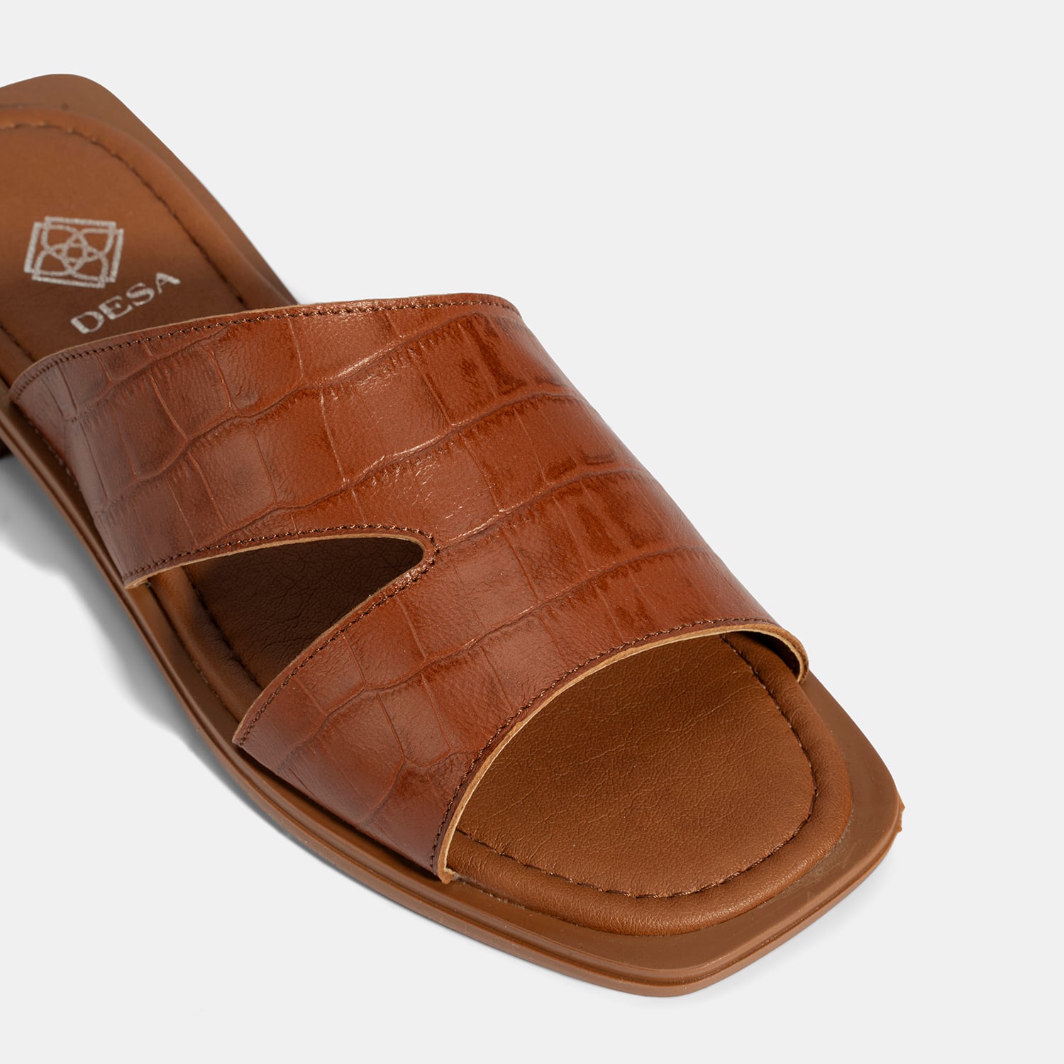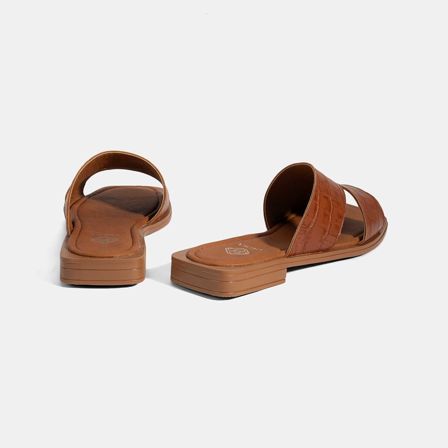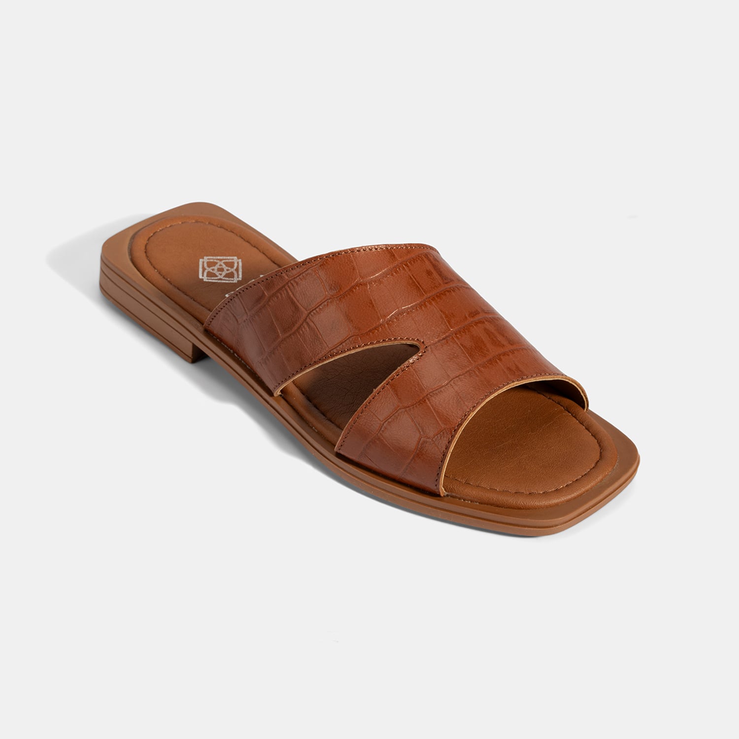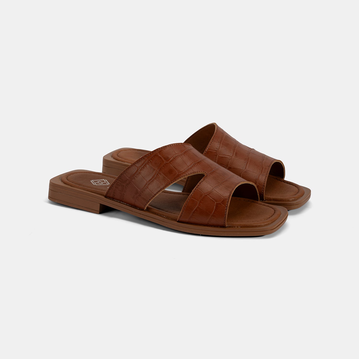Kadın Taba Kroko Baskılı Asimetrik Kesim Deri Terlik