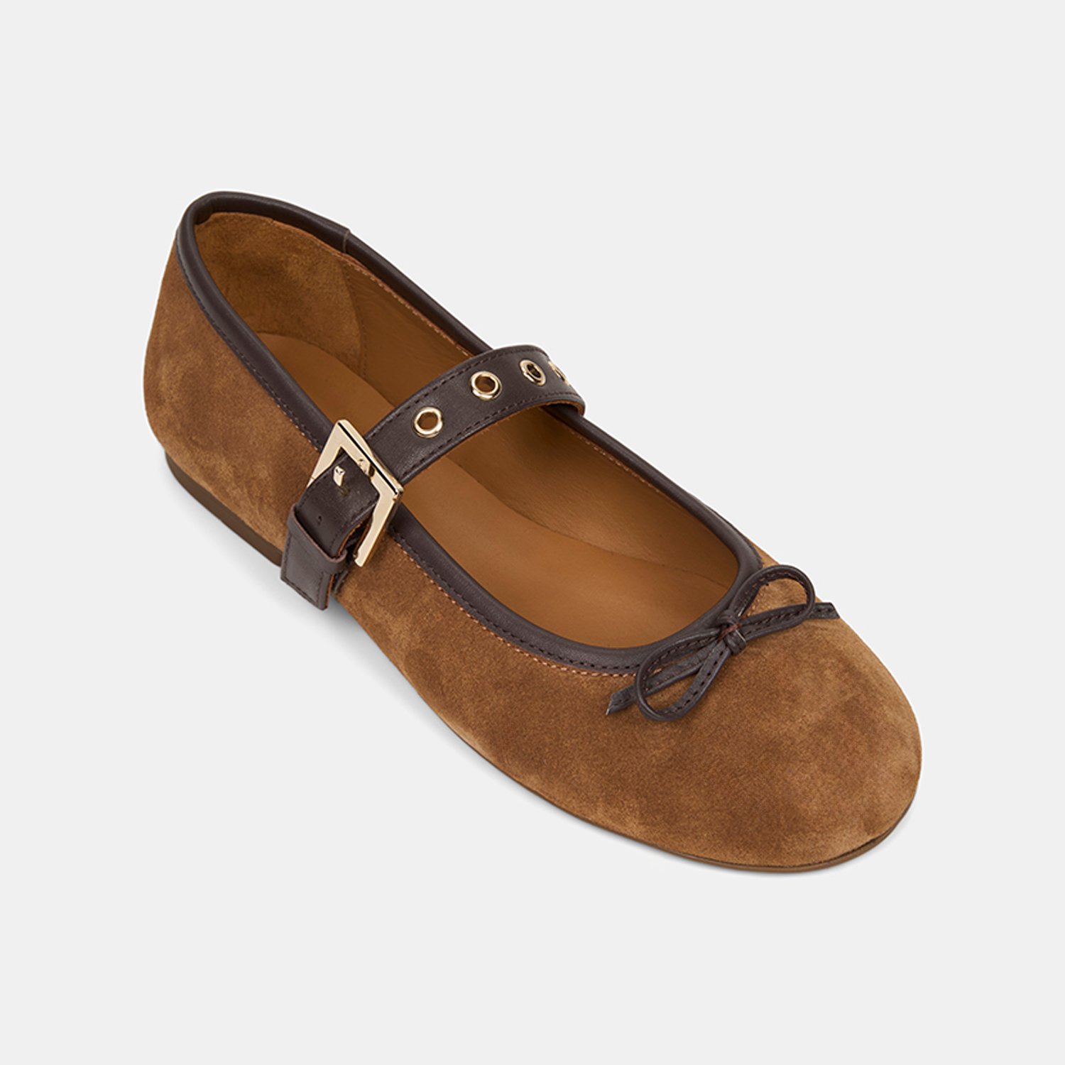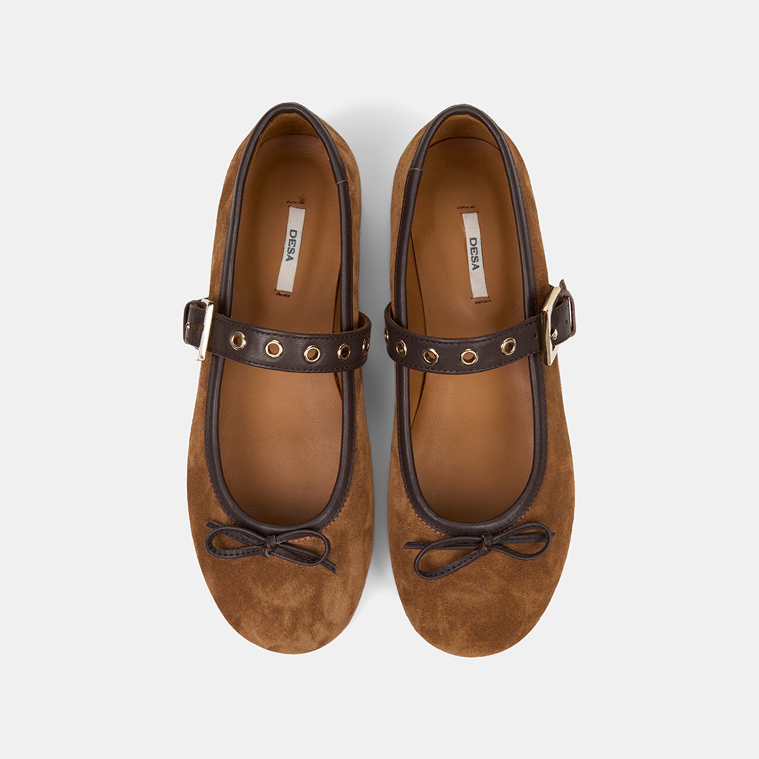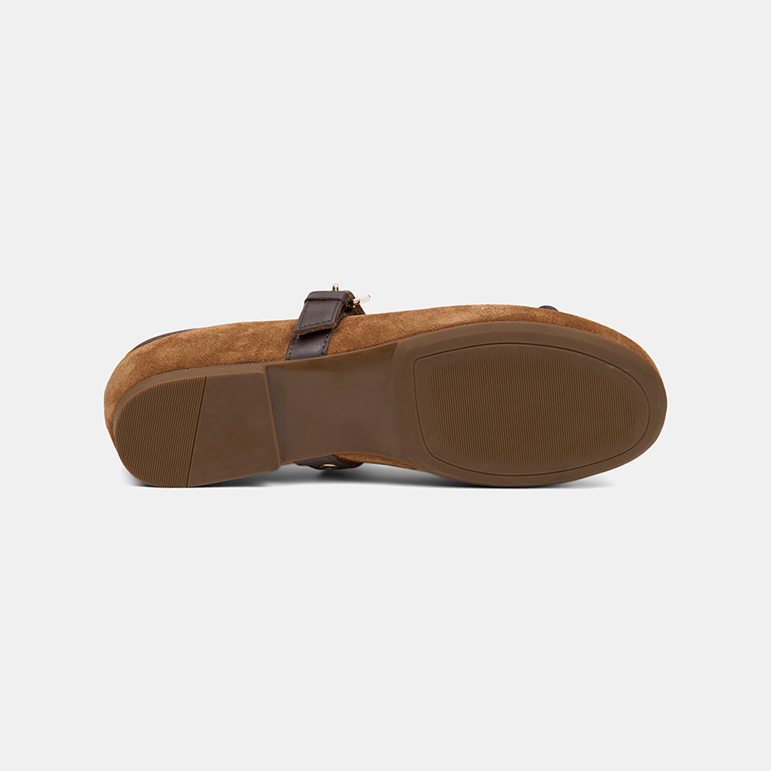 Kadın Taba Kurdeleli Mary Jane Süet Deri Babet