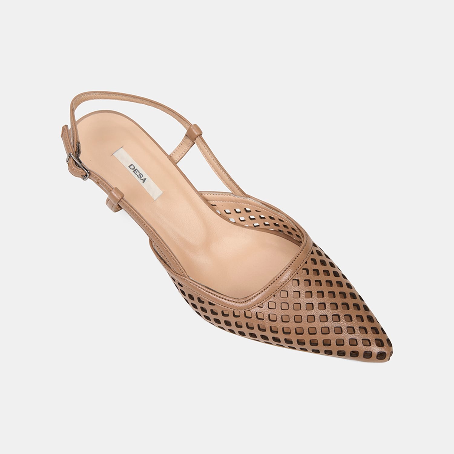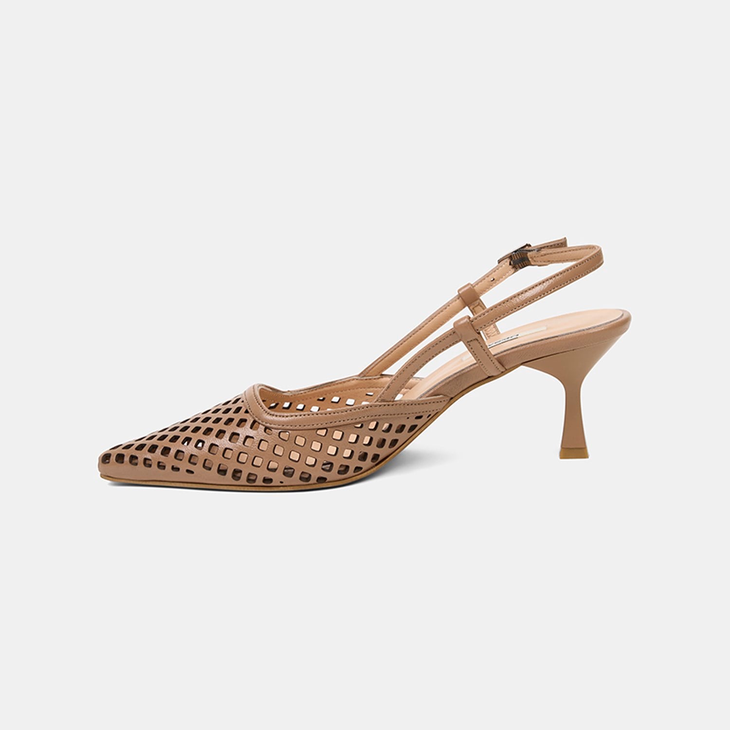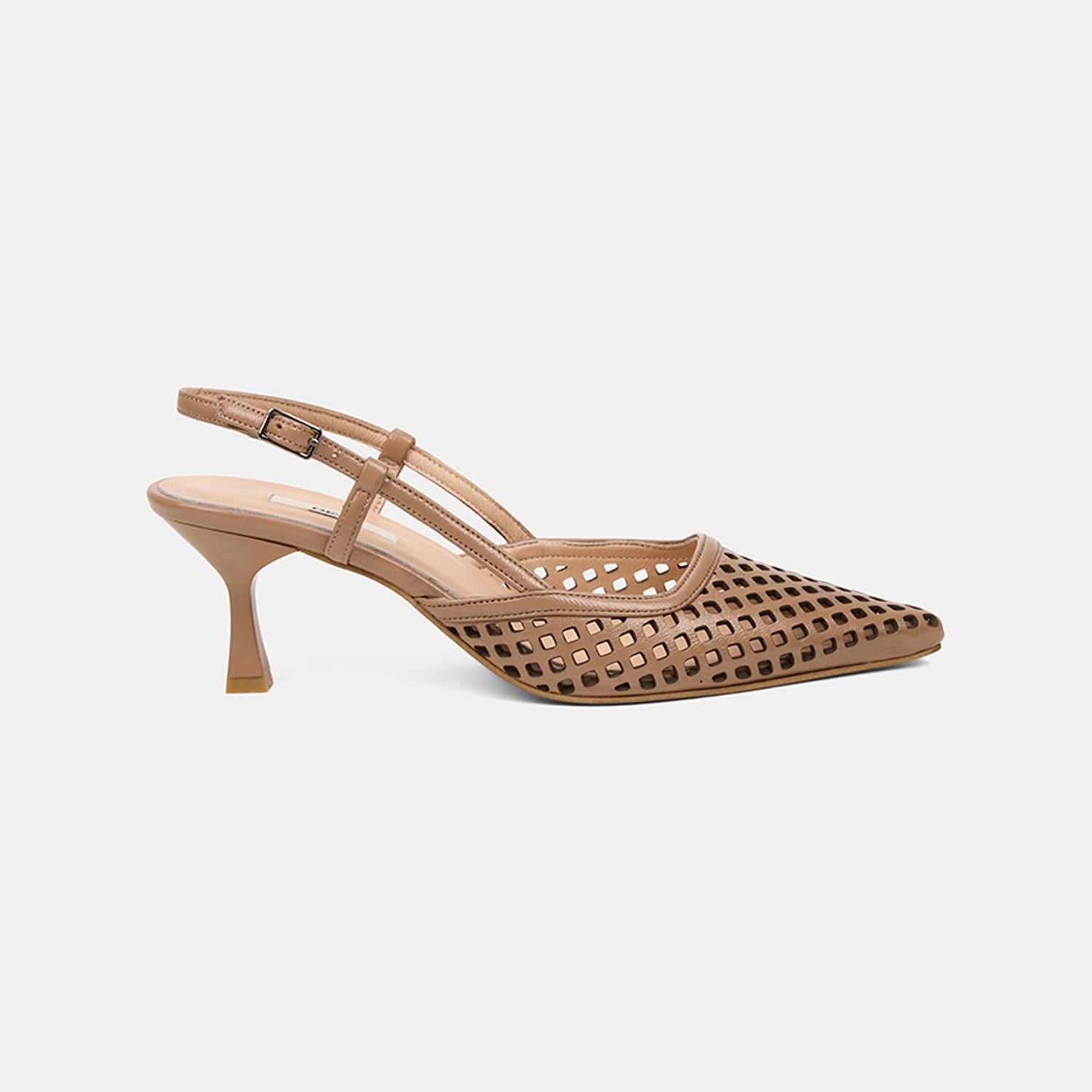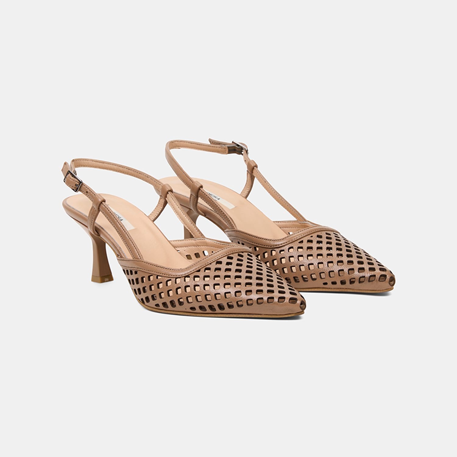 Kadın Taba Lazer Kesim Sivri Burun Deri Topuklu Ayakkabı