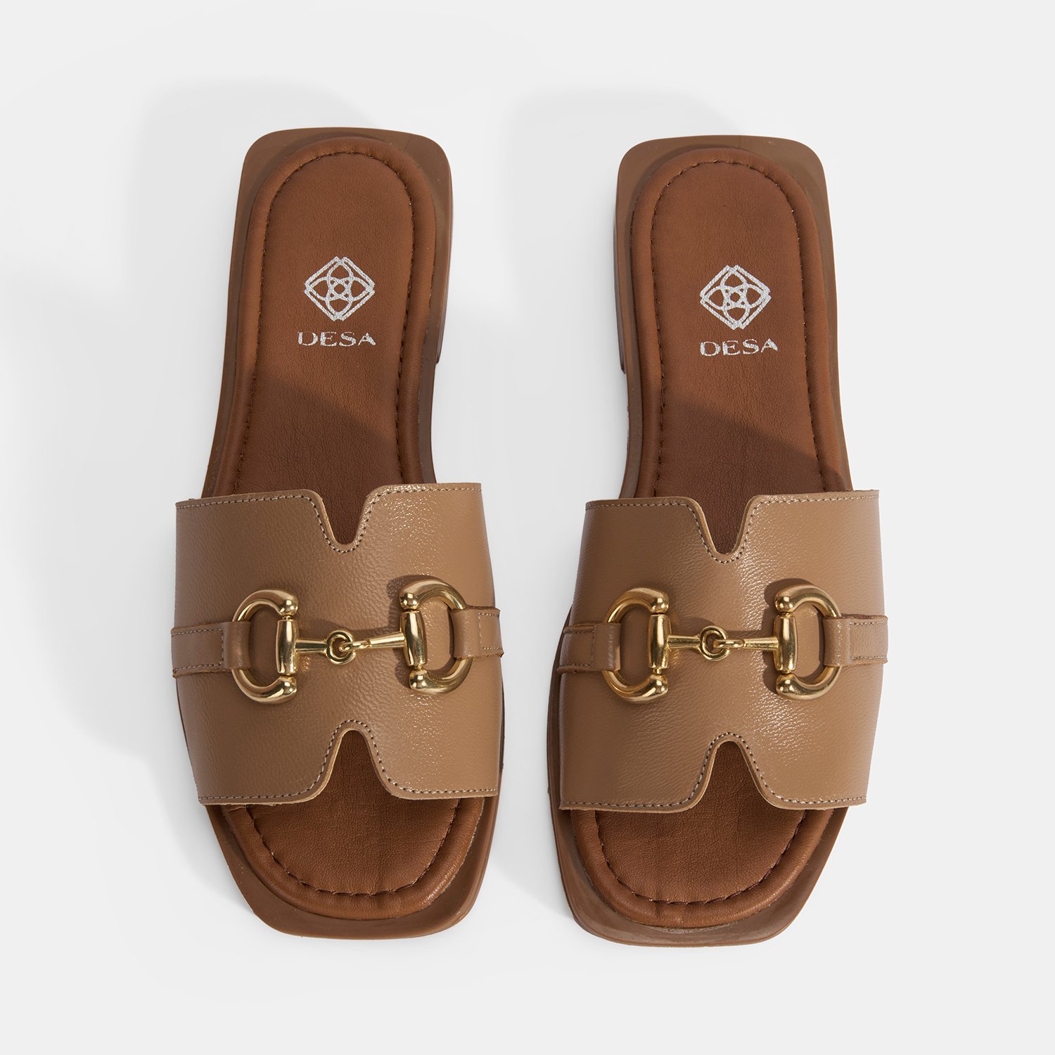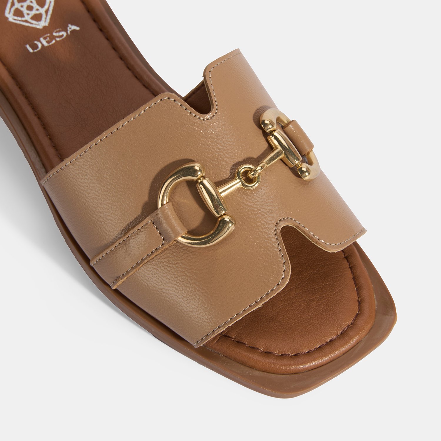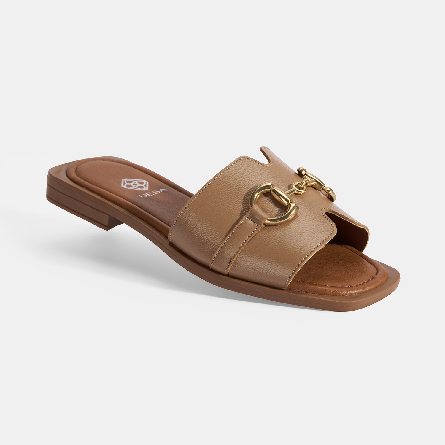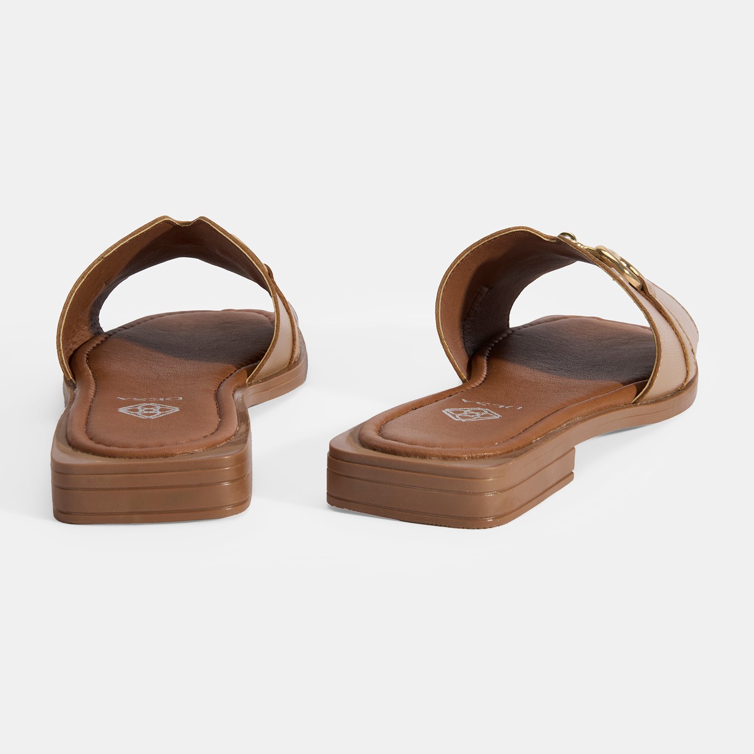 Kadın Taba Metal Toka Aksesuarlı Deri Terlik
