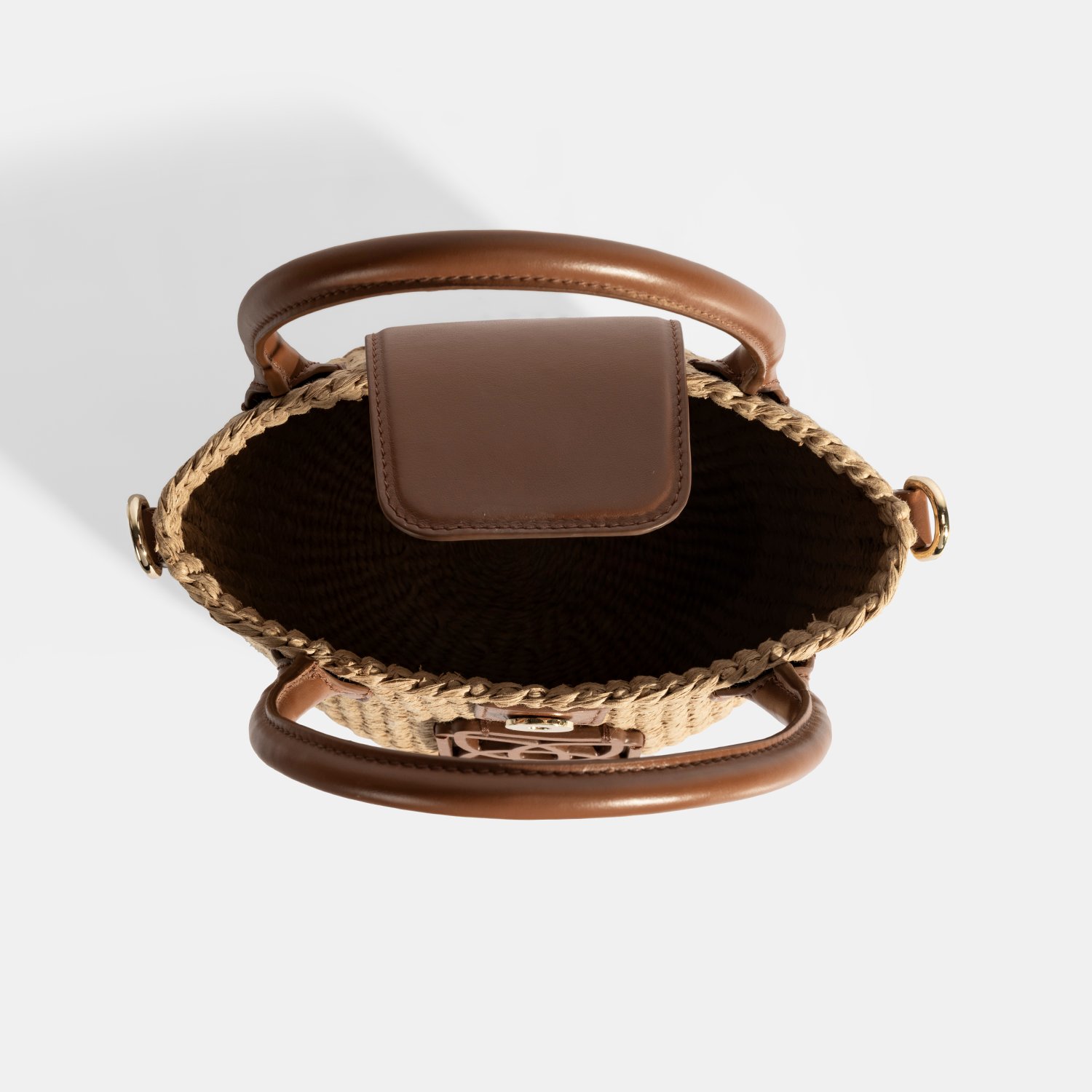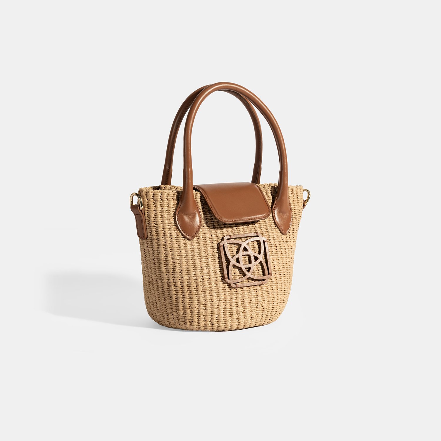 Kadın Taba Monogram Logolu Hasır Mini El Çantası