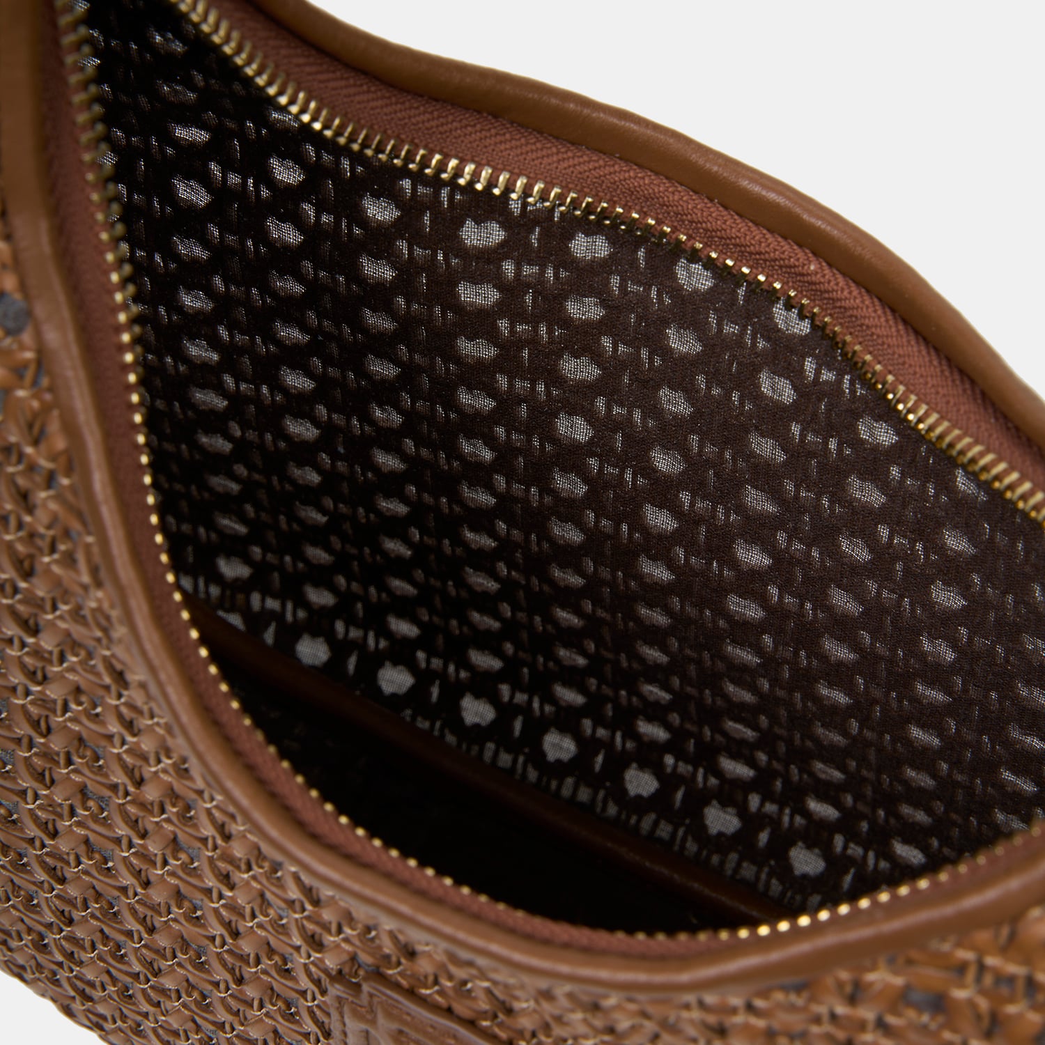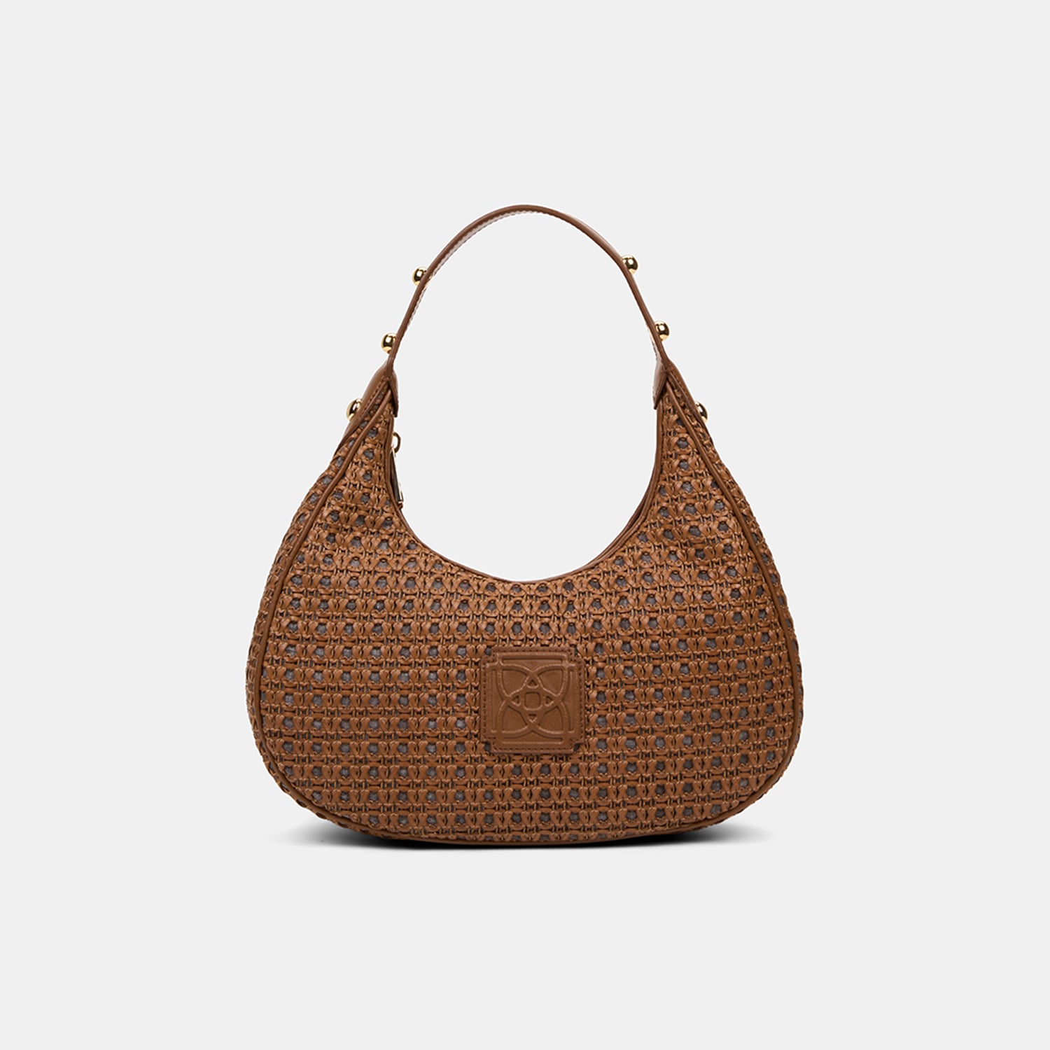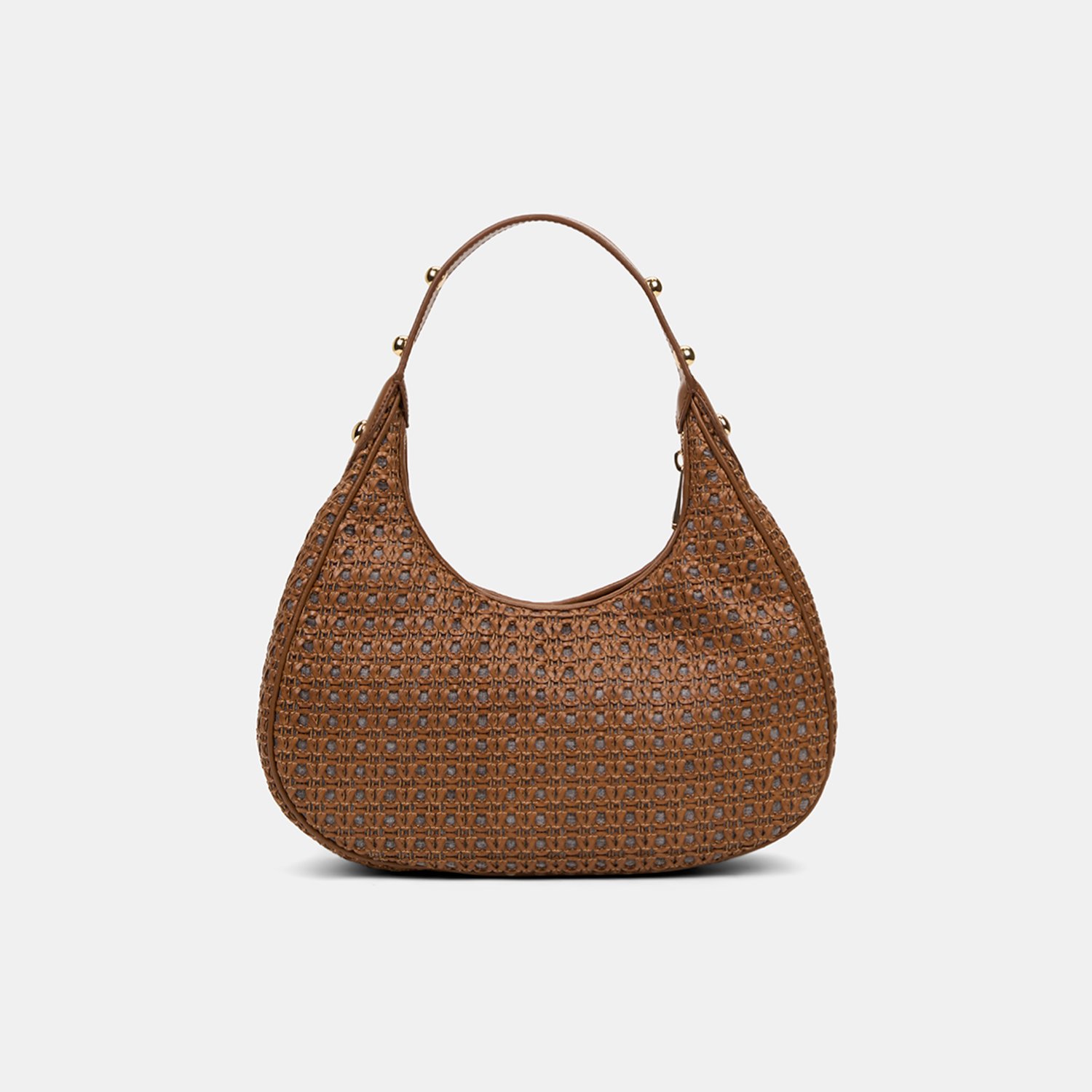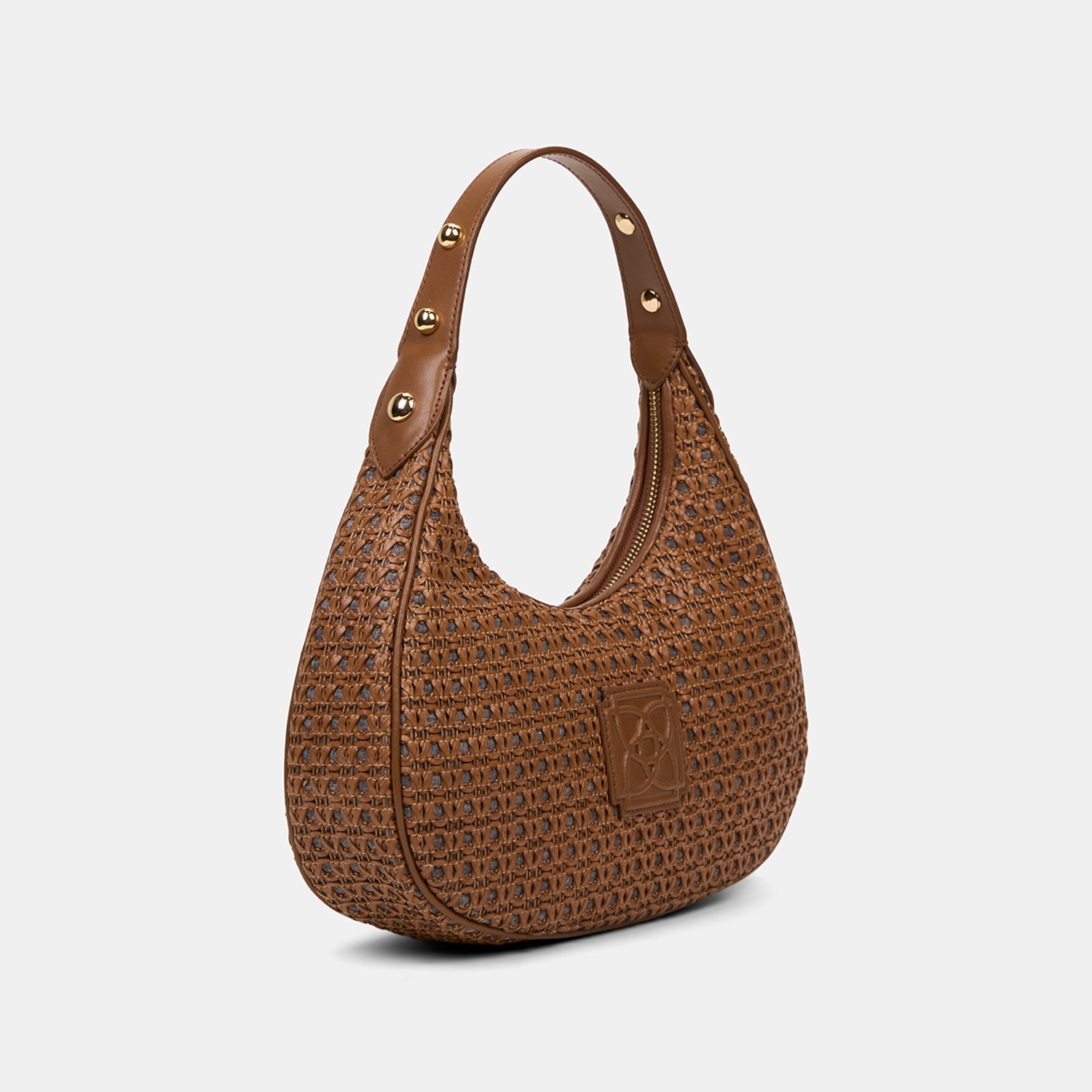 Kadın Taba Örgü Detaylı Gold Aksesuarlı Omuz Çantası