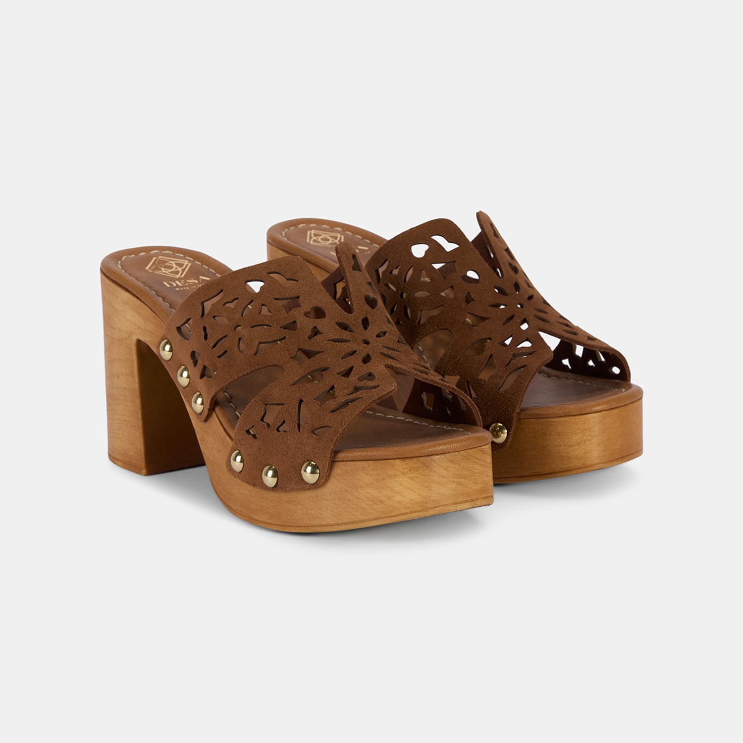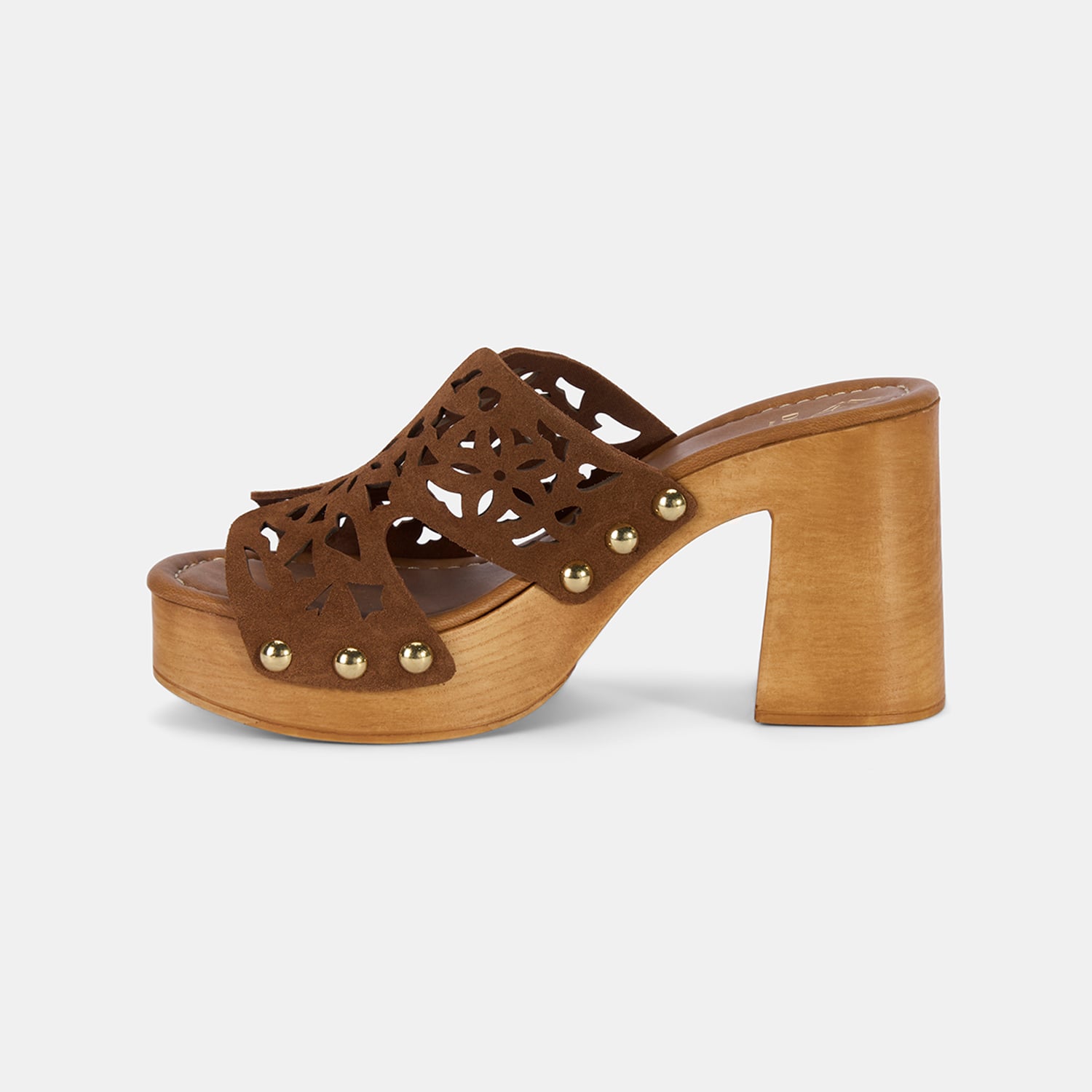 Kadın Taba Perforeli Platform Topuklu Süet Terlik