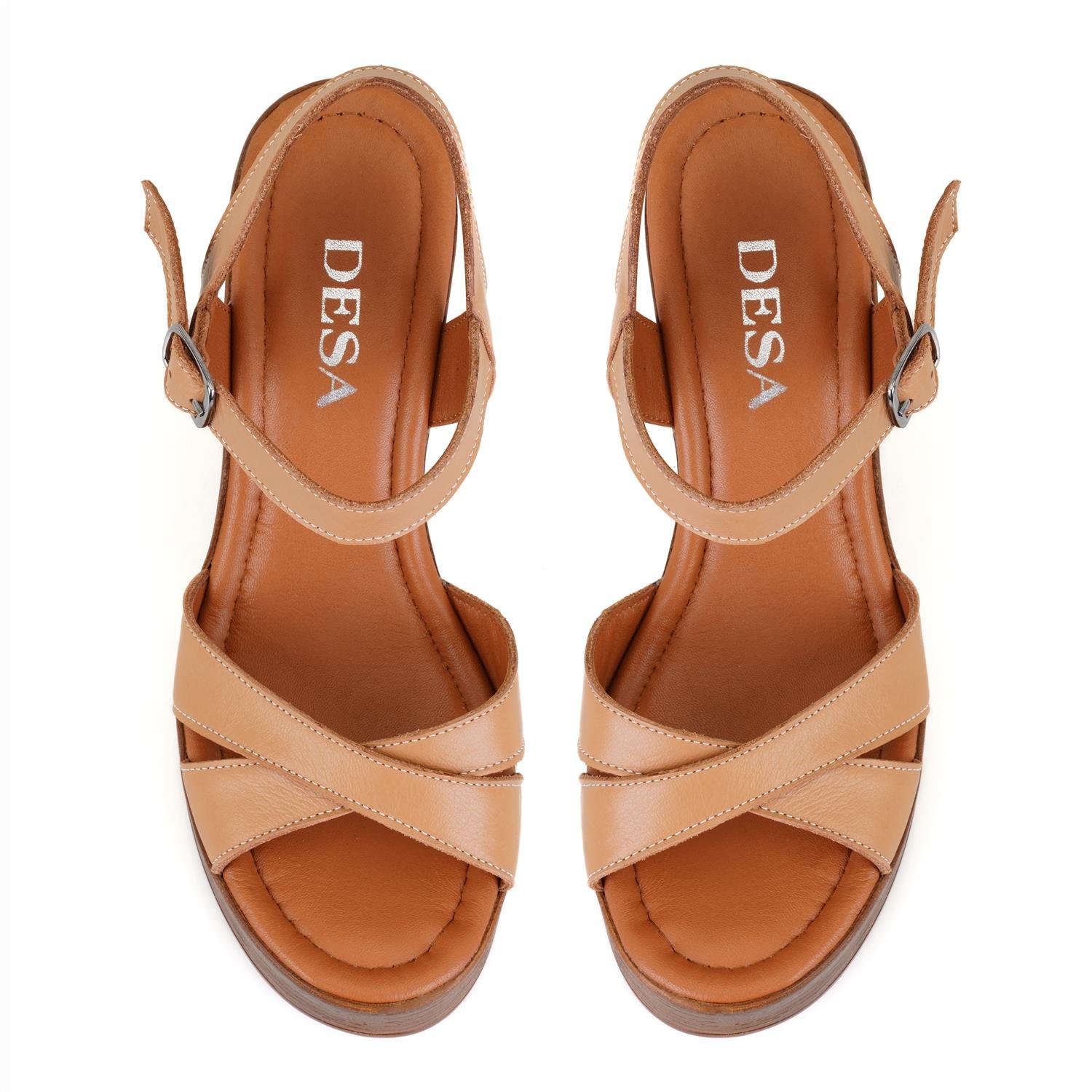 %100 deri, iç astarlı, mostra deri, poli taban, kadın platfrom topuklu deri sandalet.