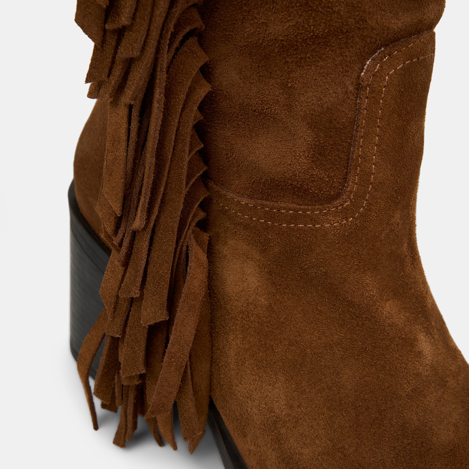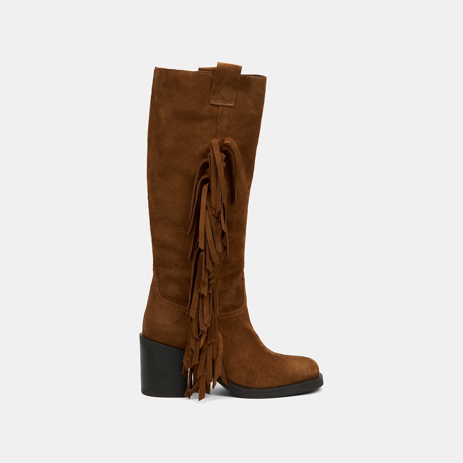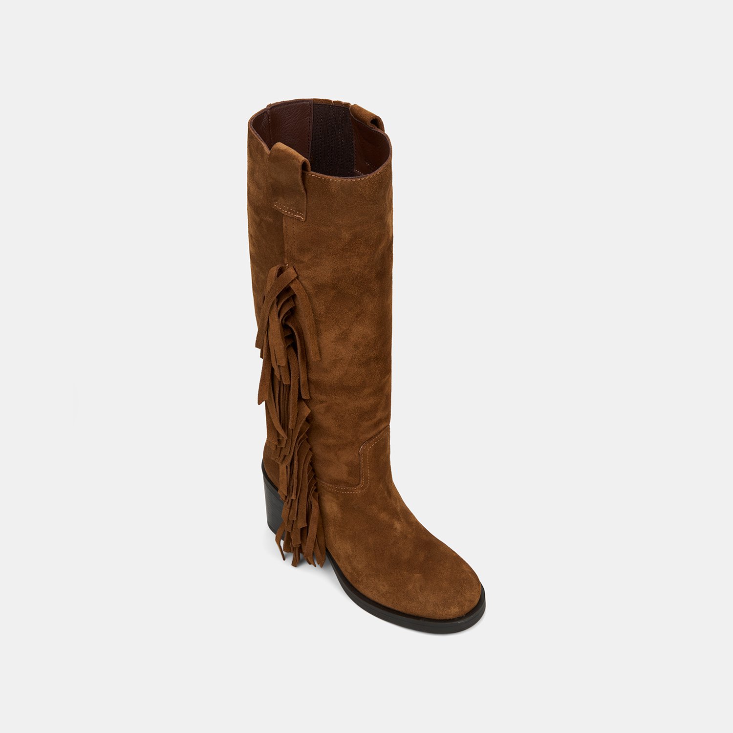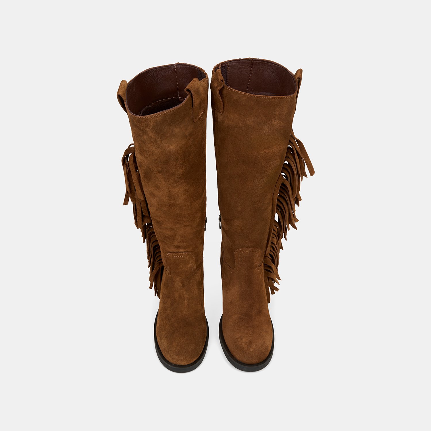%100 süet deri, deri iç tabanlı, sıcak tekstil astarlı, püskül detaylı, termo tabanlı kadın çizme. Topuk yüksekliği: 4,5 cm.