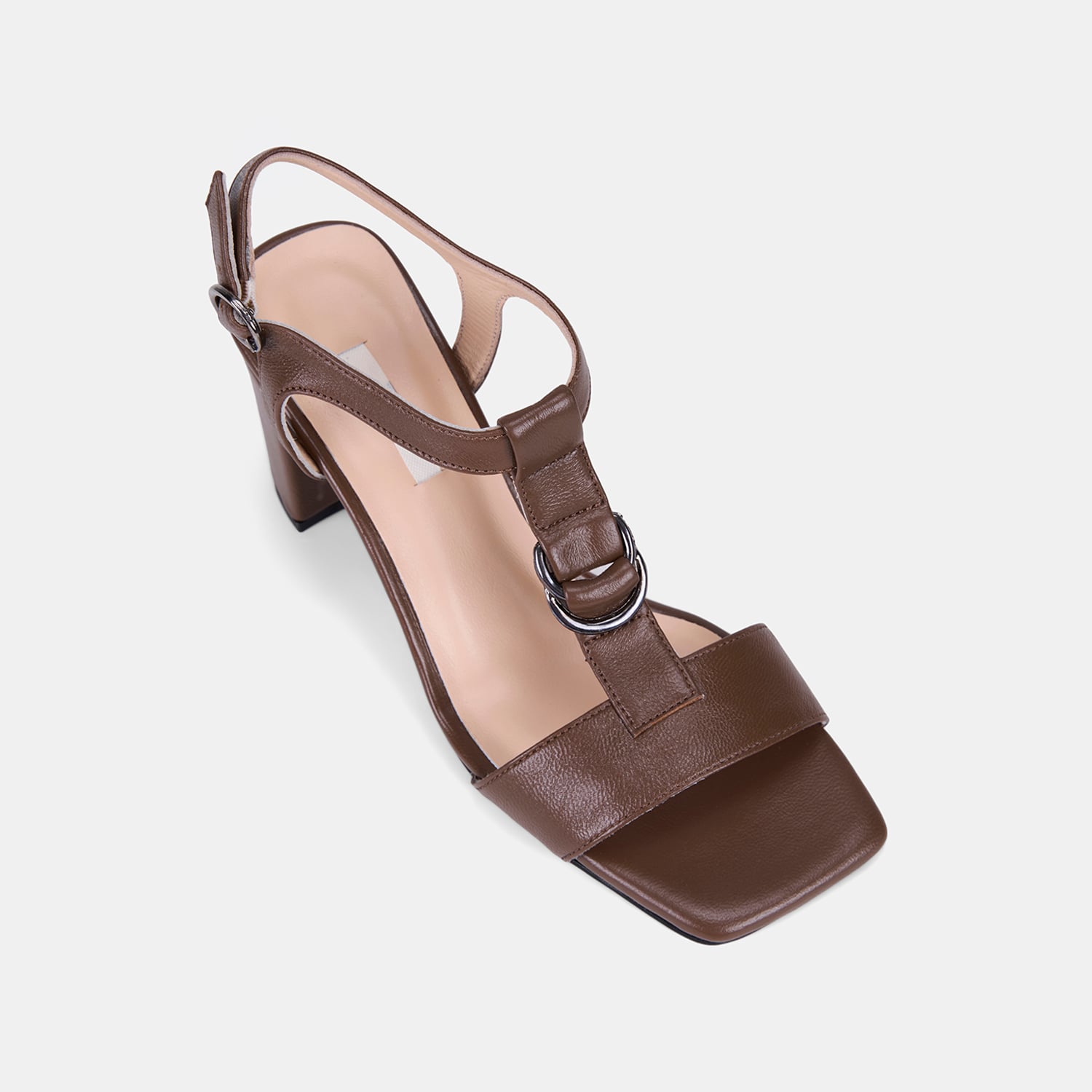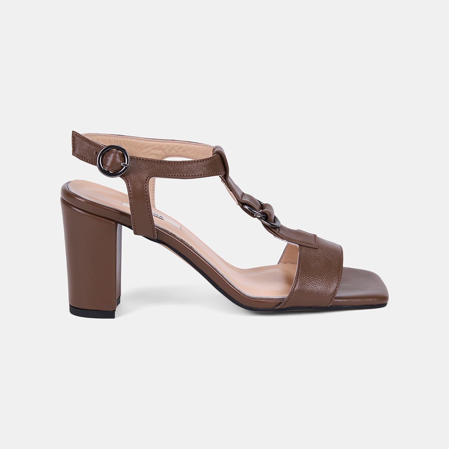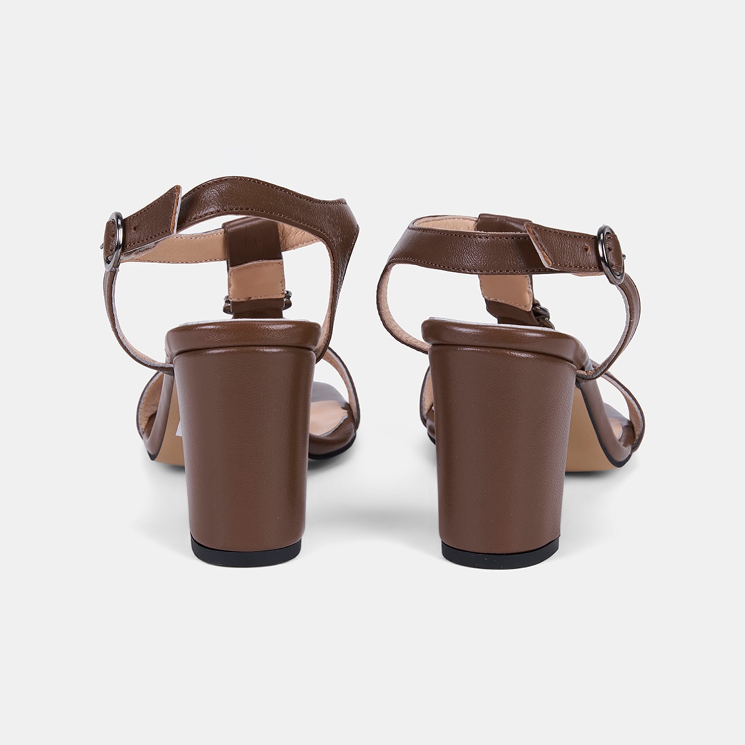 Kadın Taba T-Bantlı Kalın Topuklu Deri Sandalet