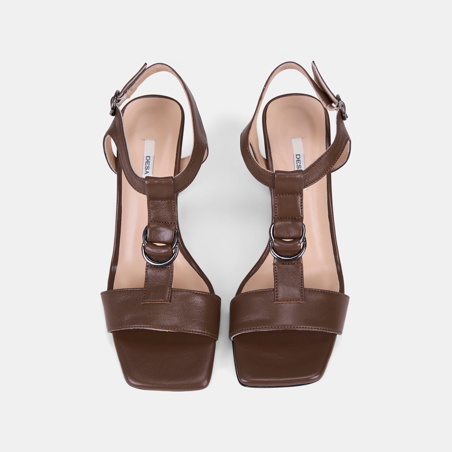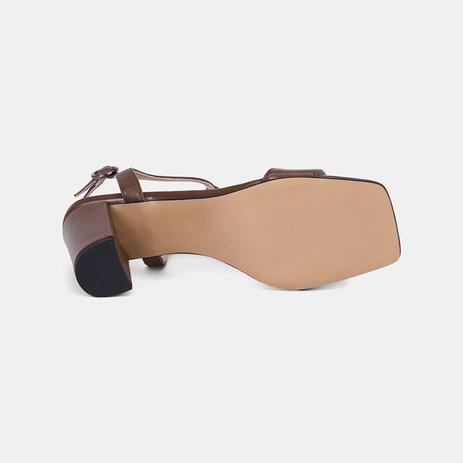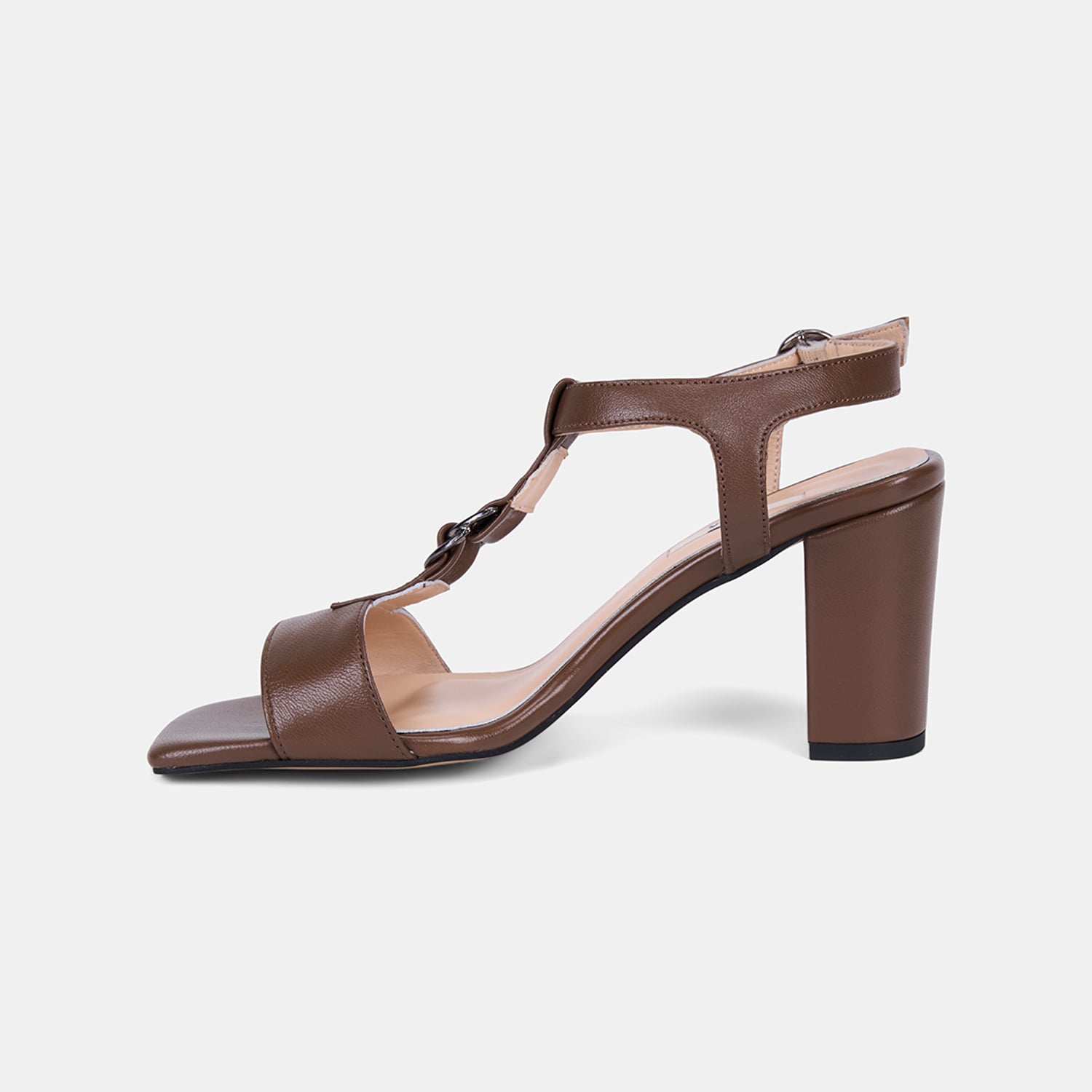 Kadın Taba T-Bantlı Kalın Topuklu Deri Sandalet