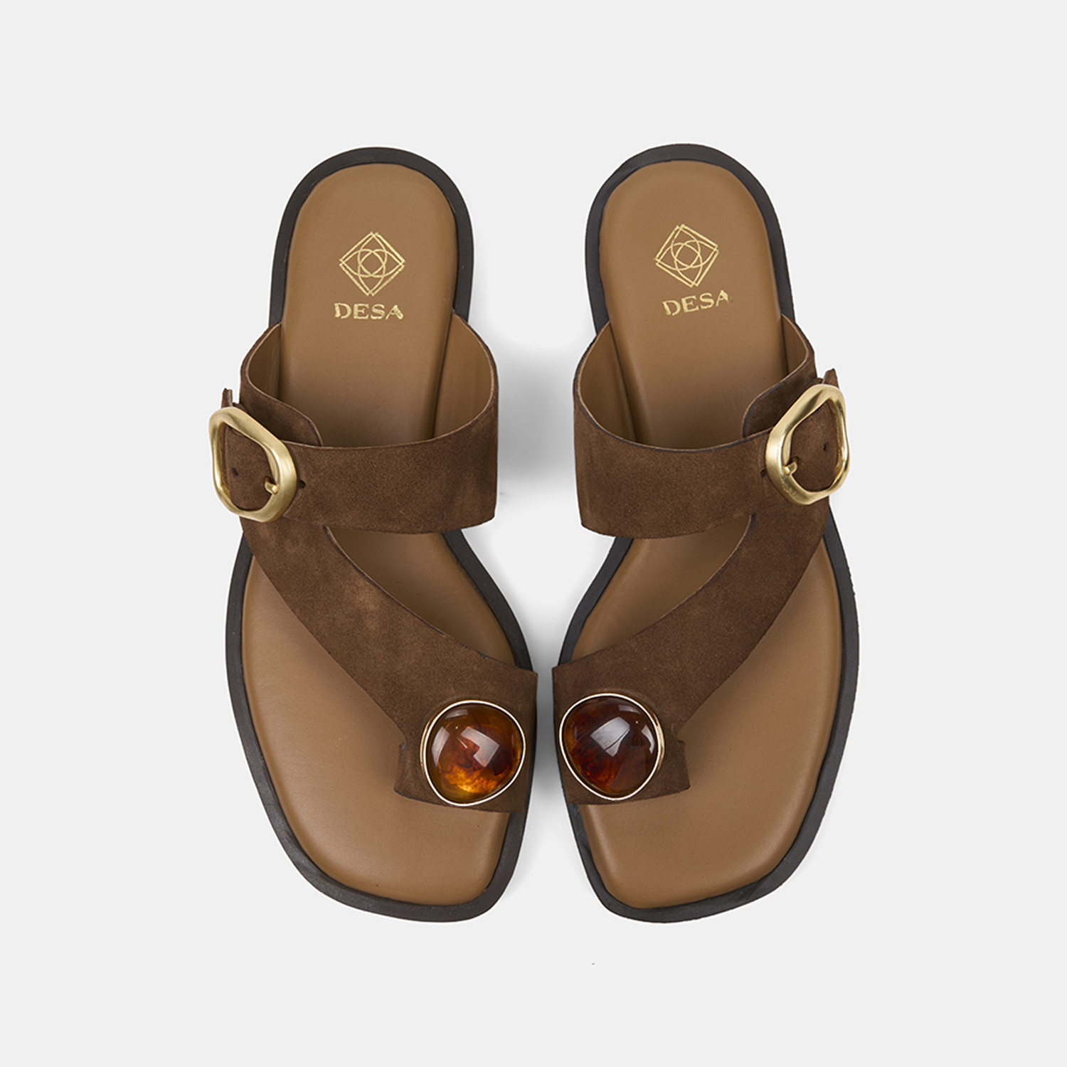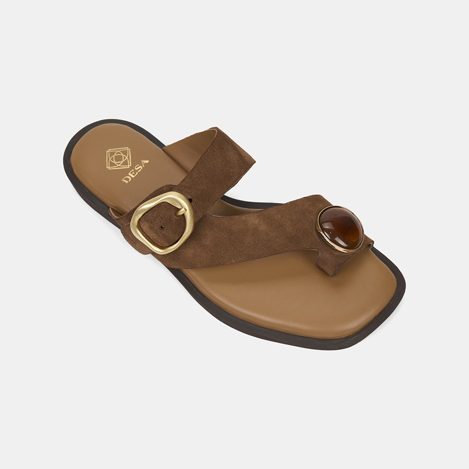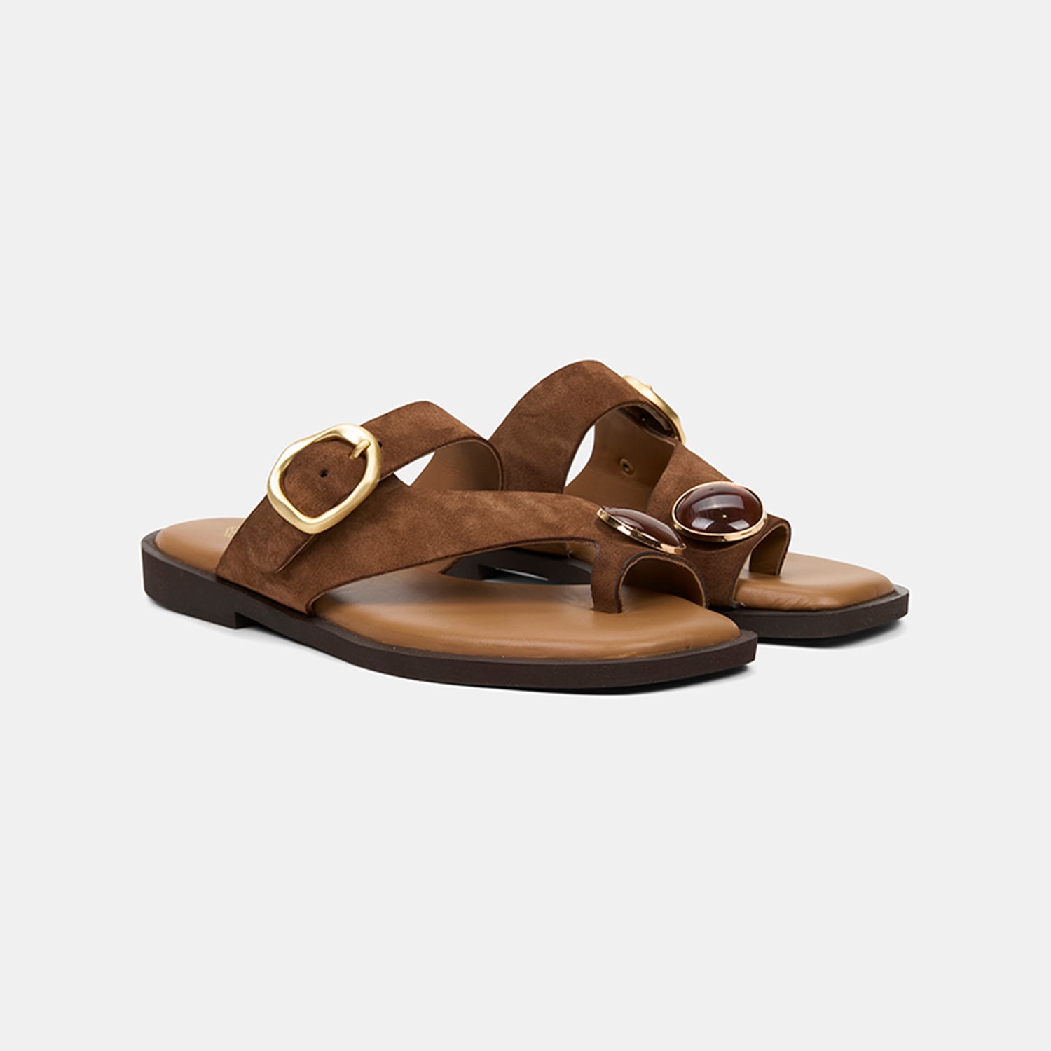 Kadın Taba Tokalı Renkli Taşlı Süet Parmak Arası Terlik