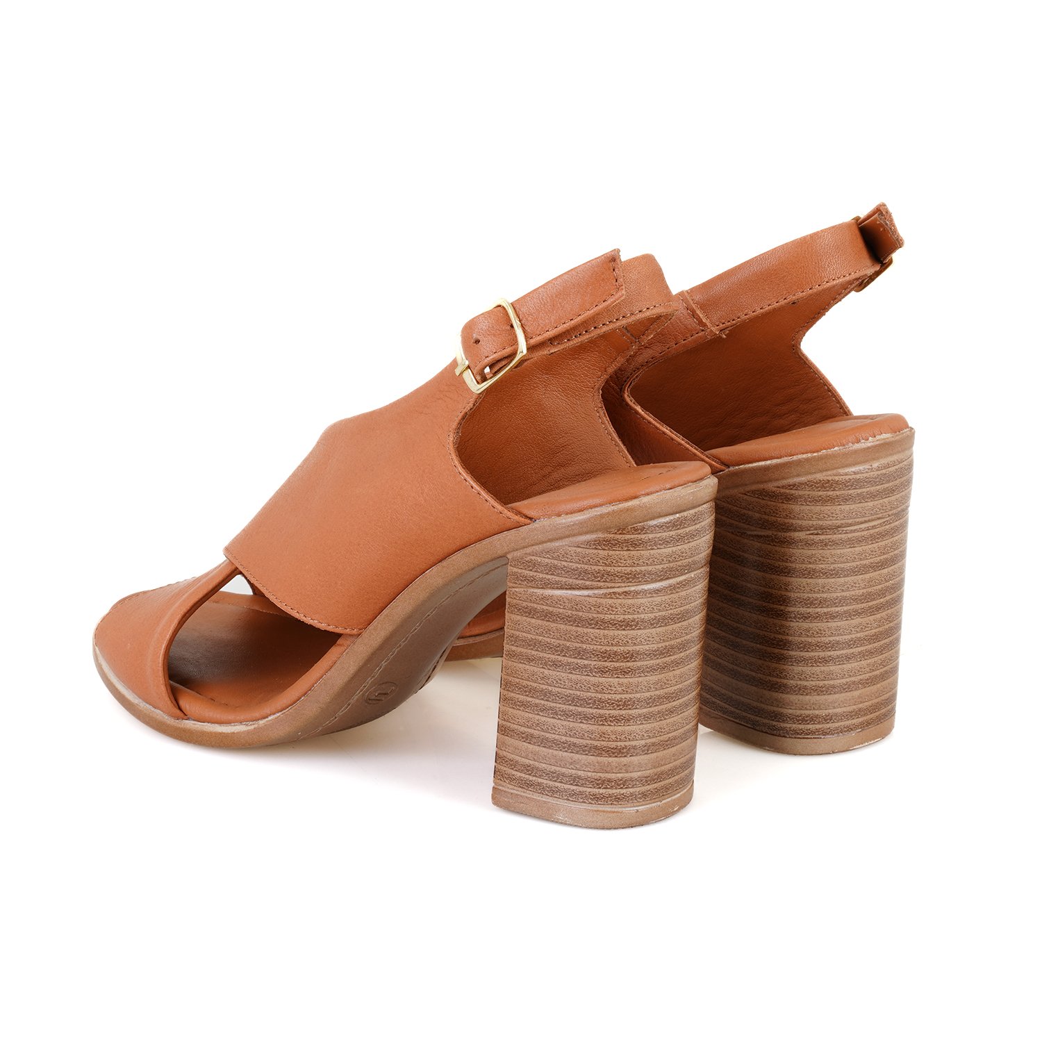 Kadın Taba Topuklu Deri Sandalet