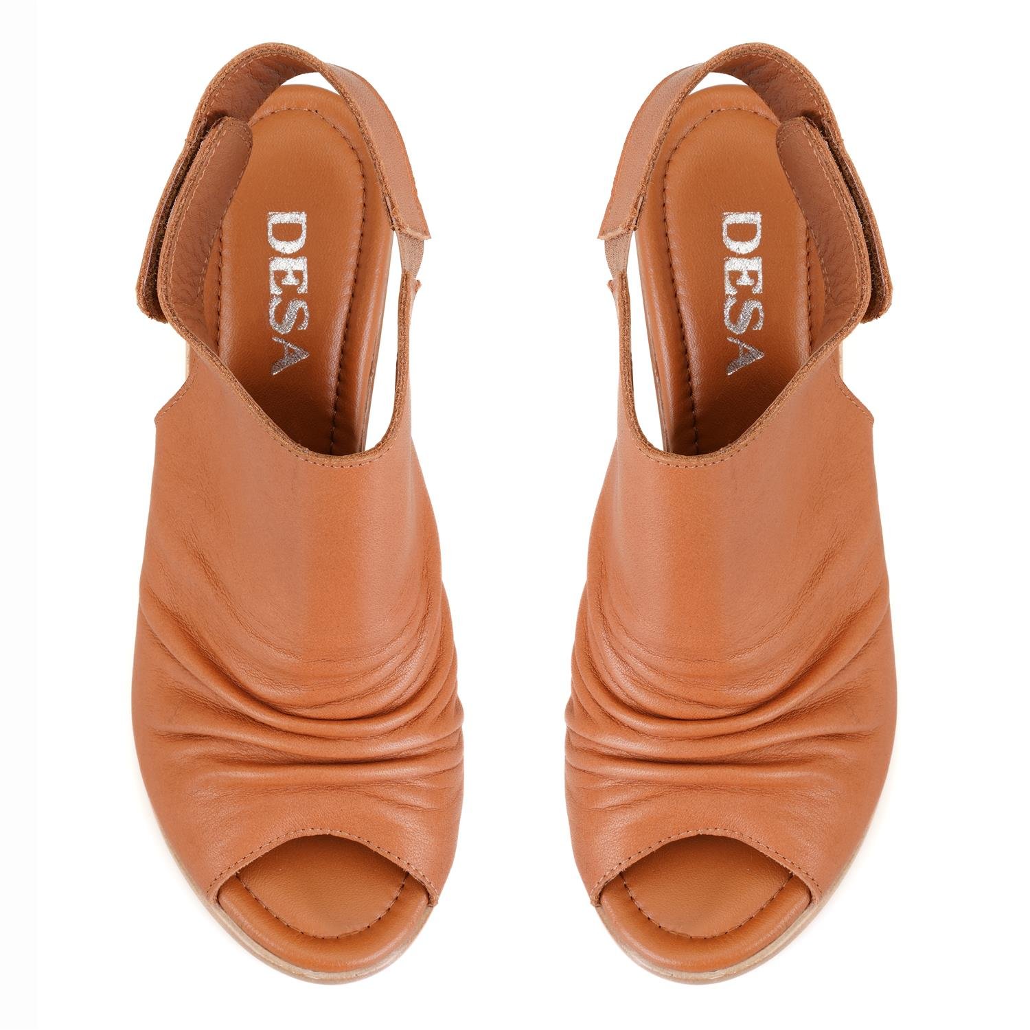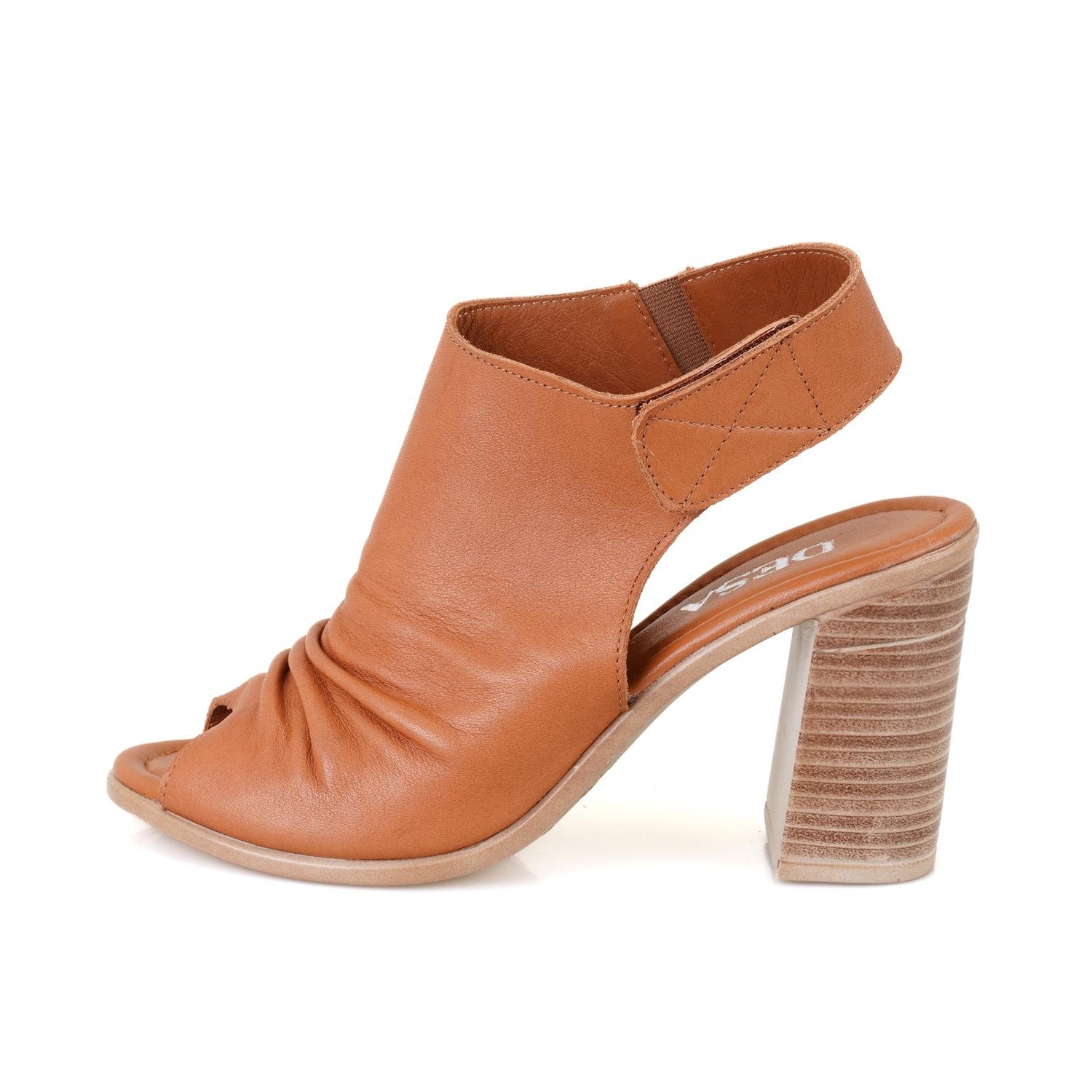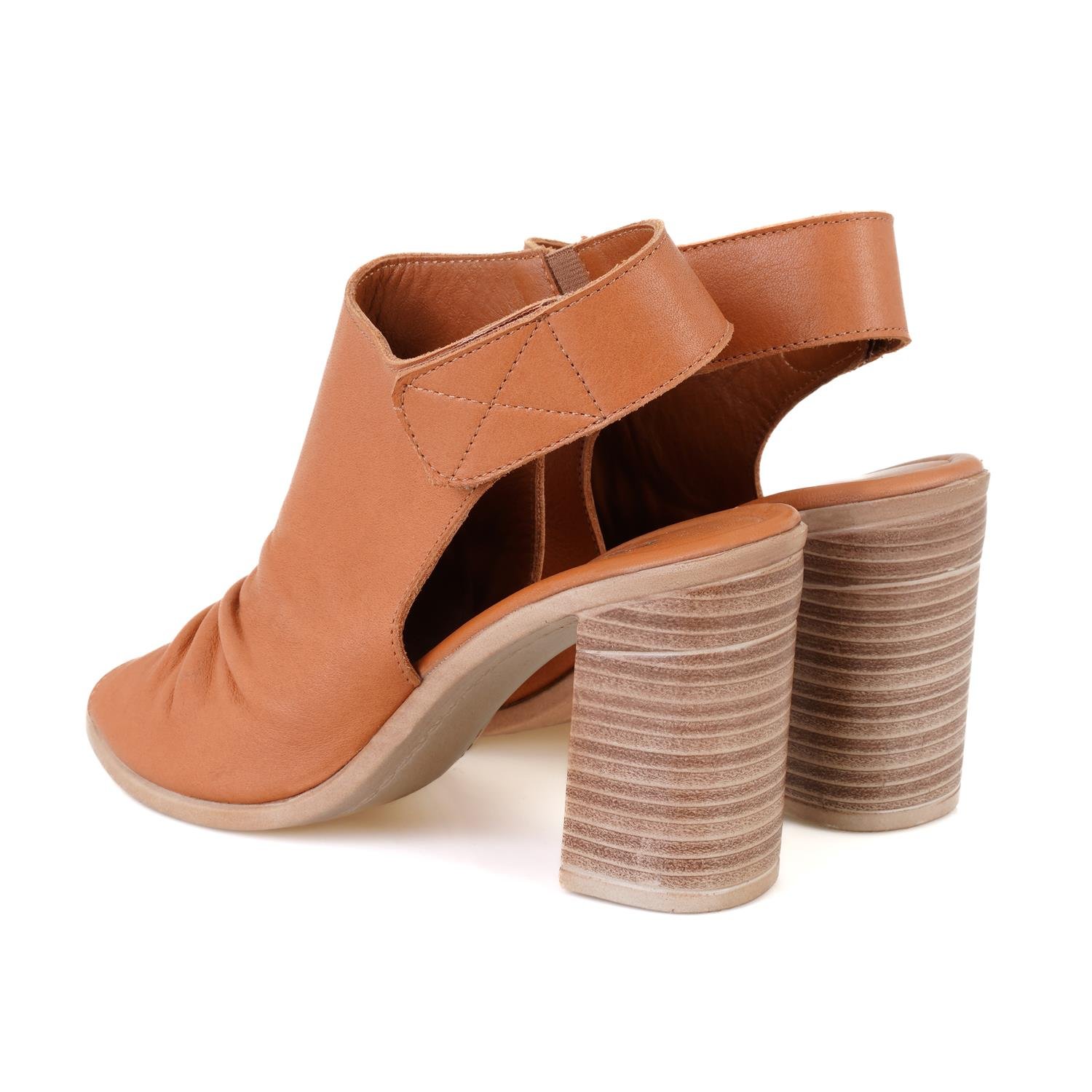 Kadın Taba Topuklu Deri Sandalet