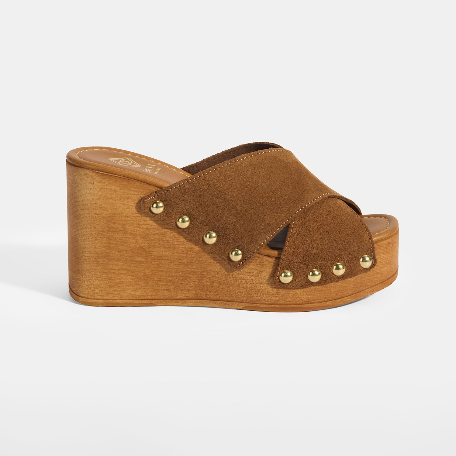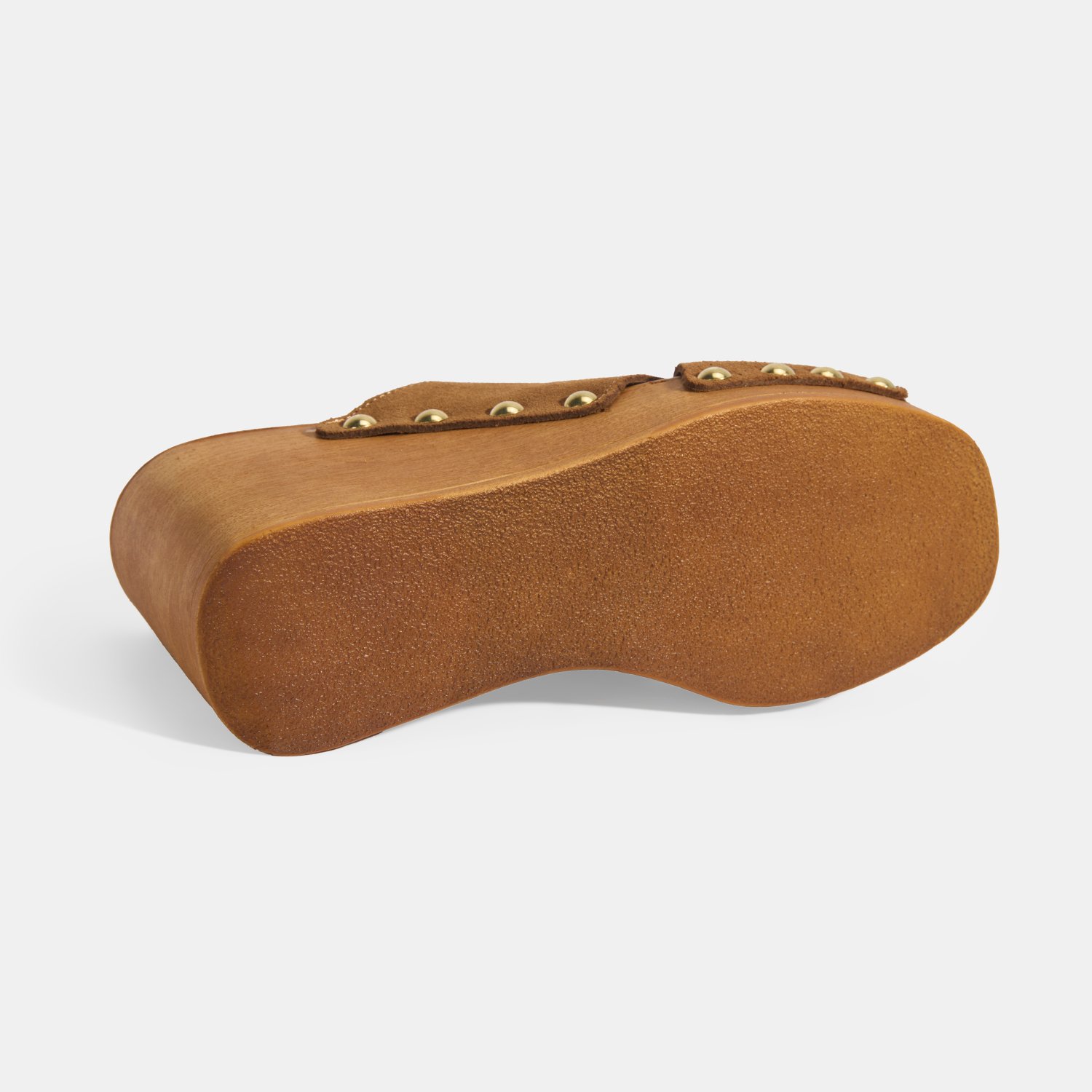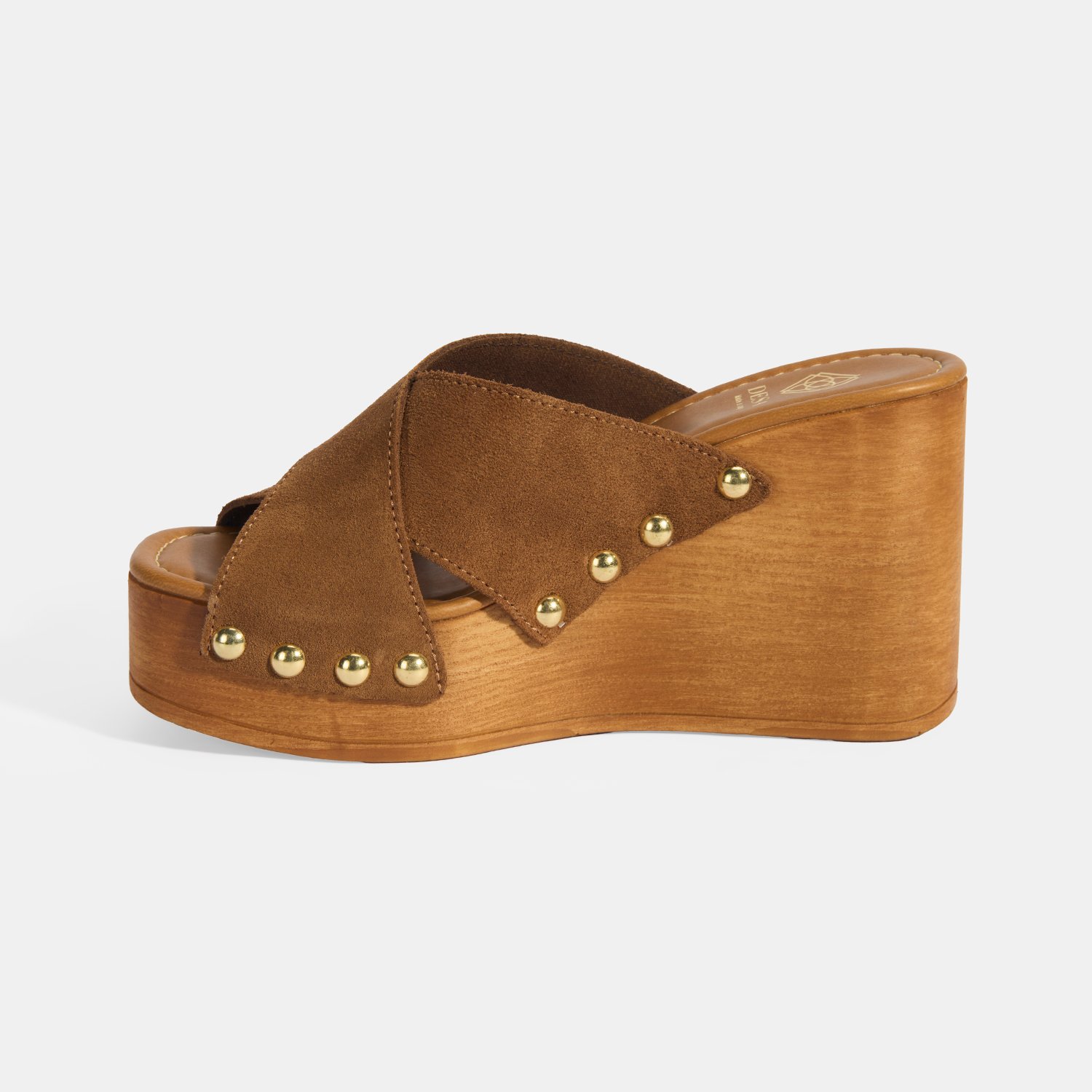 Kadın Taba Zımba Detaylı Süet Dolgu Topuklu Terlik