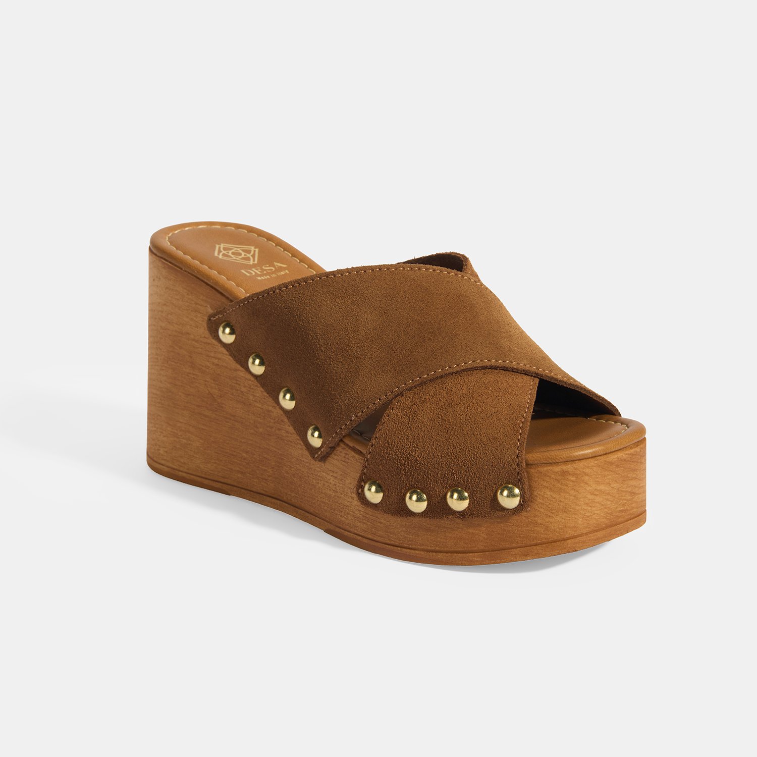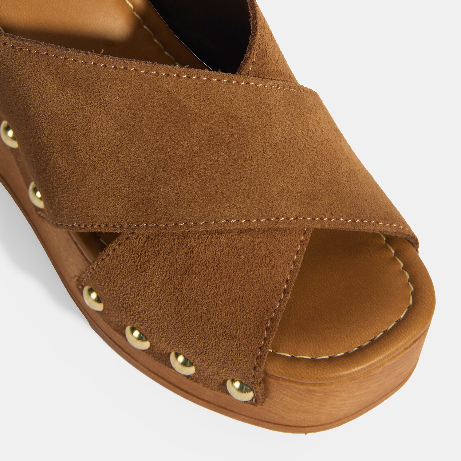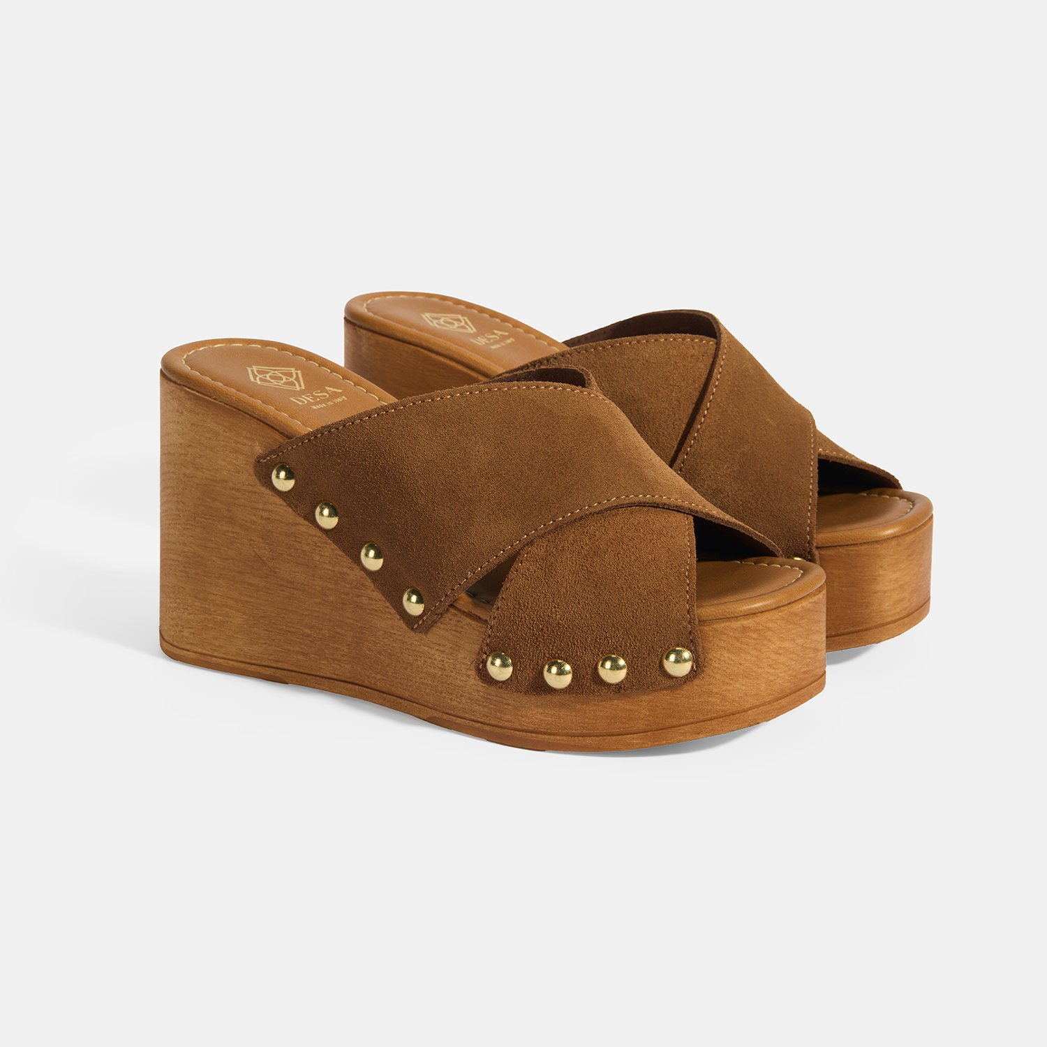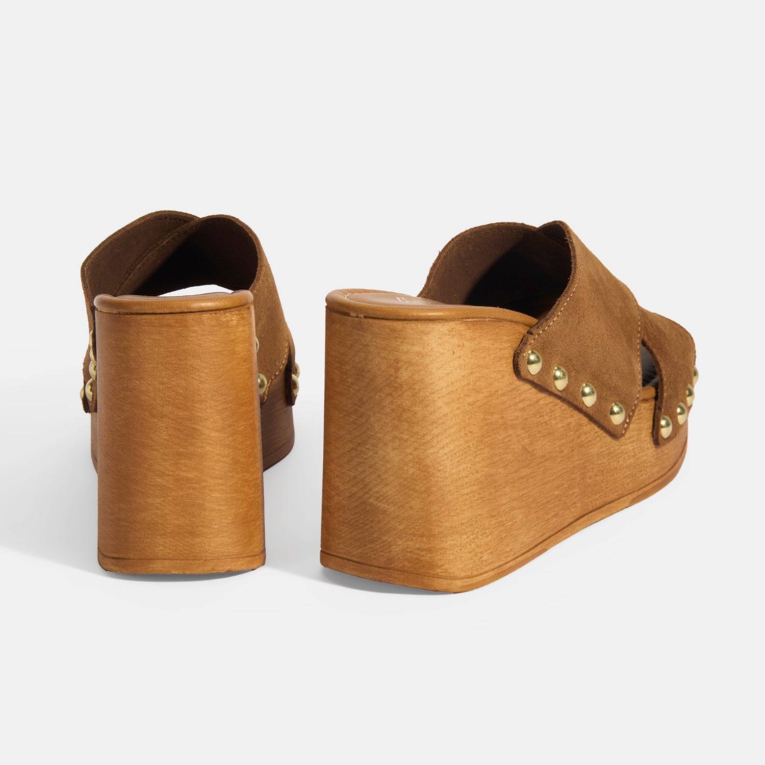 Kadın Taba Zımba Detaylı Süet Dolgu Topuklu Terlik