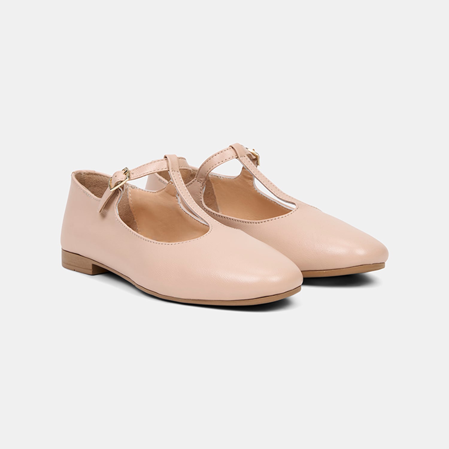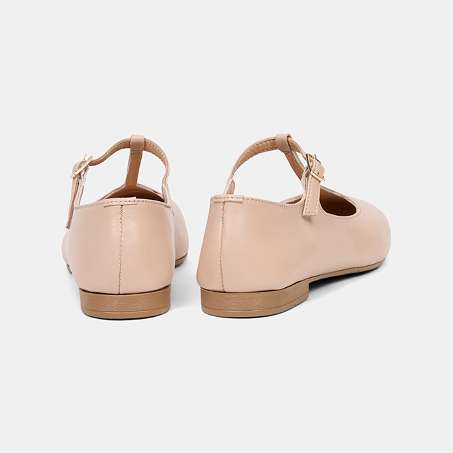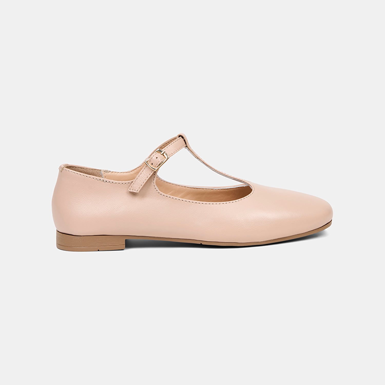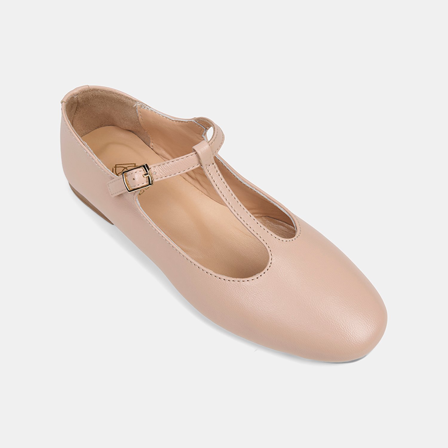 Kadın Ten Ayarlanabilir Tokalı T-Bant Deri Babet