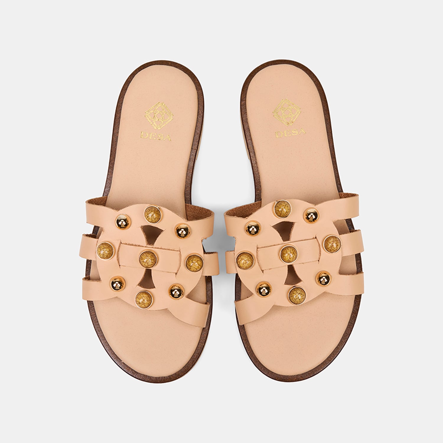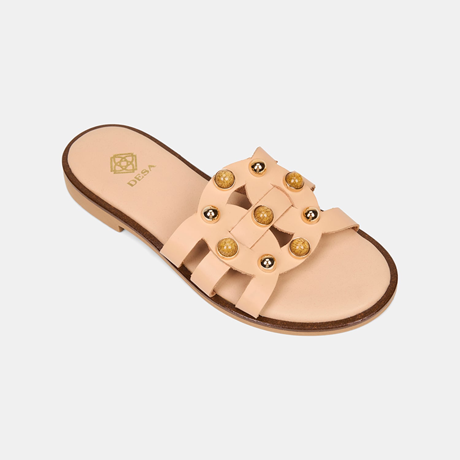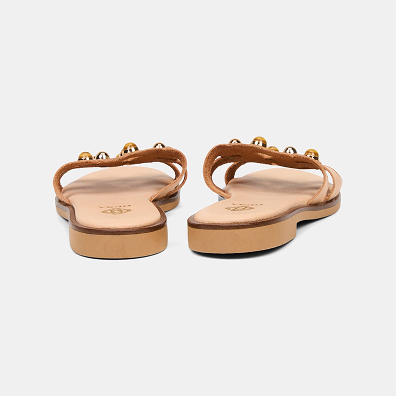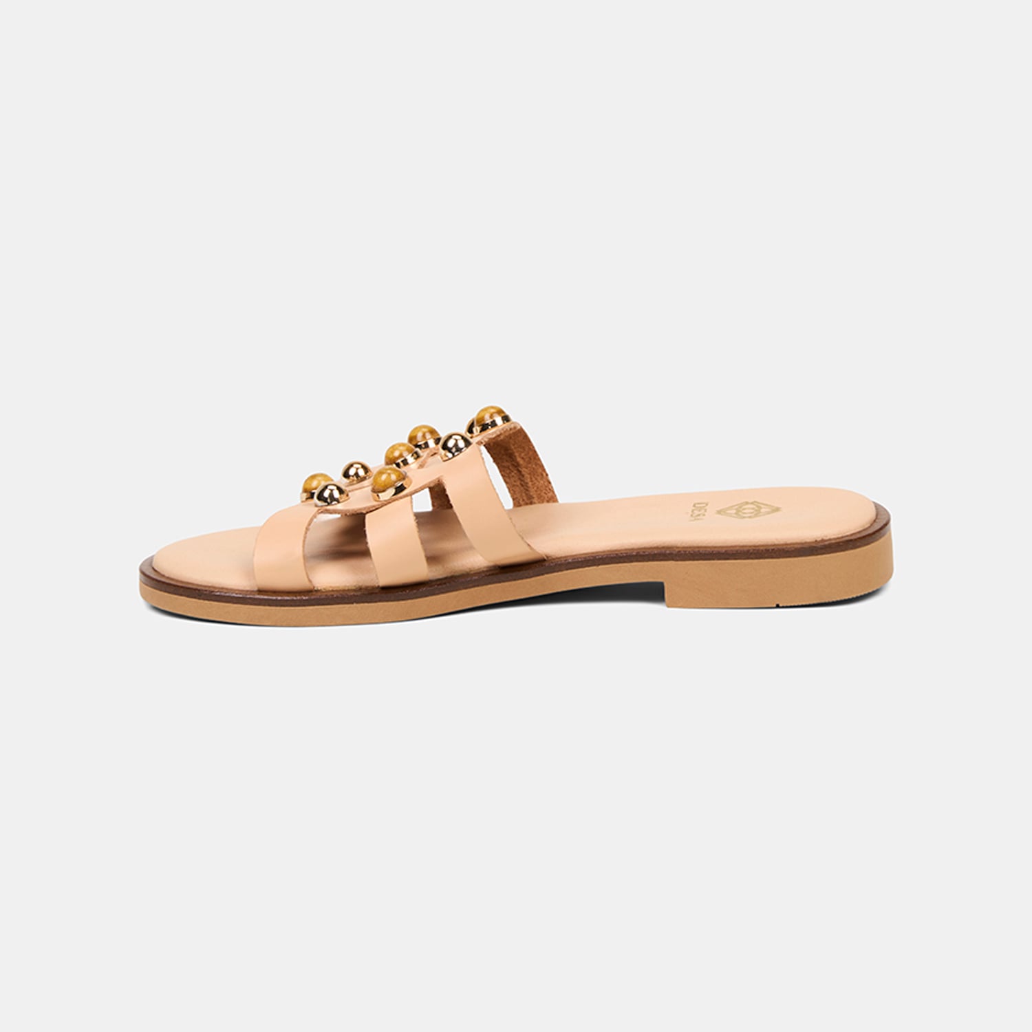 Kadın Ten Boncuk Aksesuarlı Deri Terlik