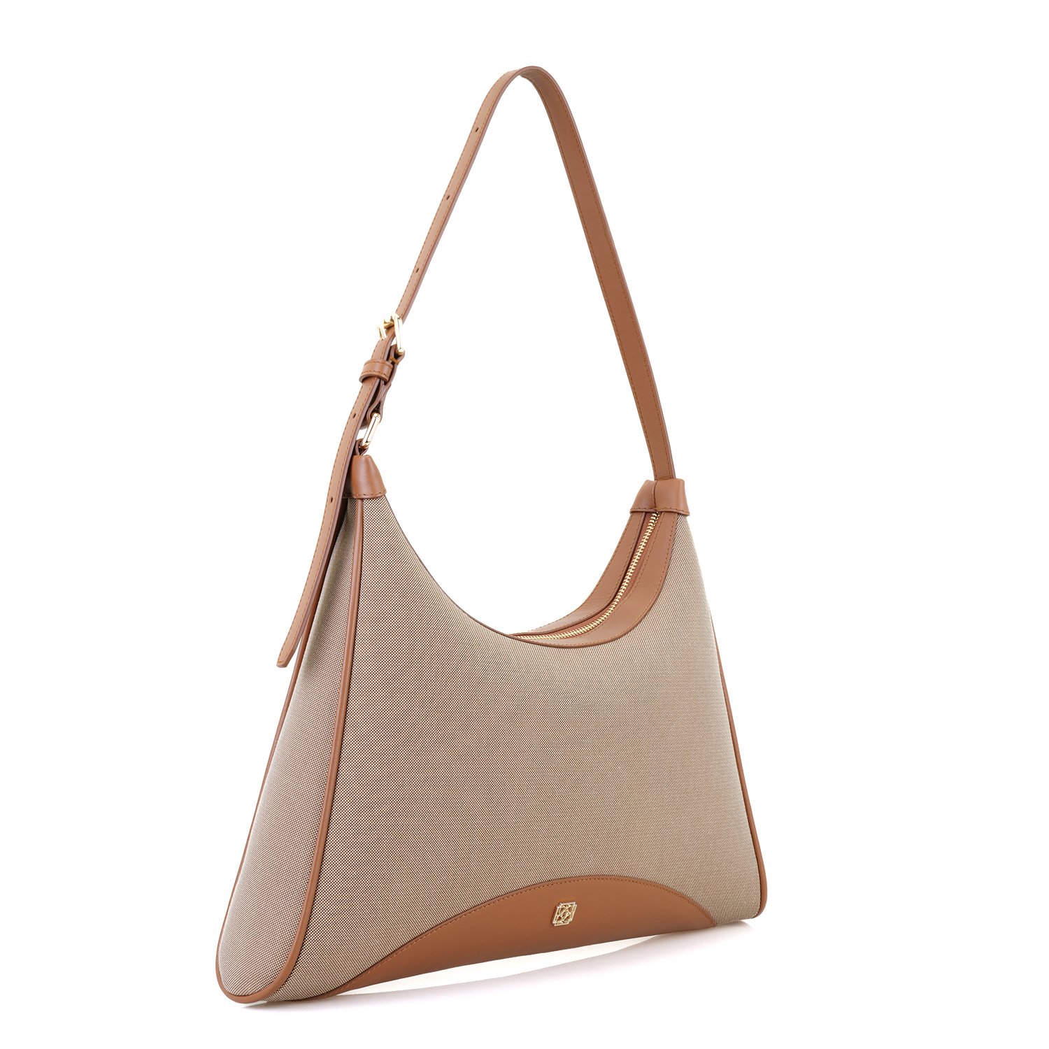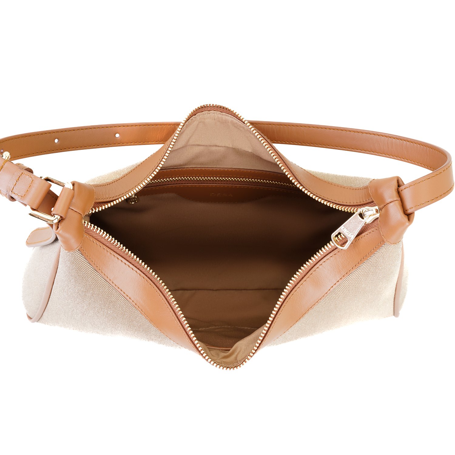 Kadın Ten Deri Biyeli Kanvas Omuz Çantası