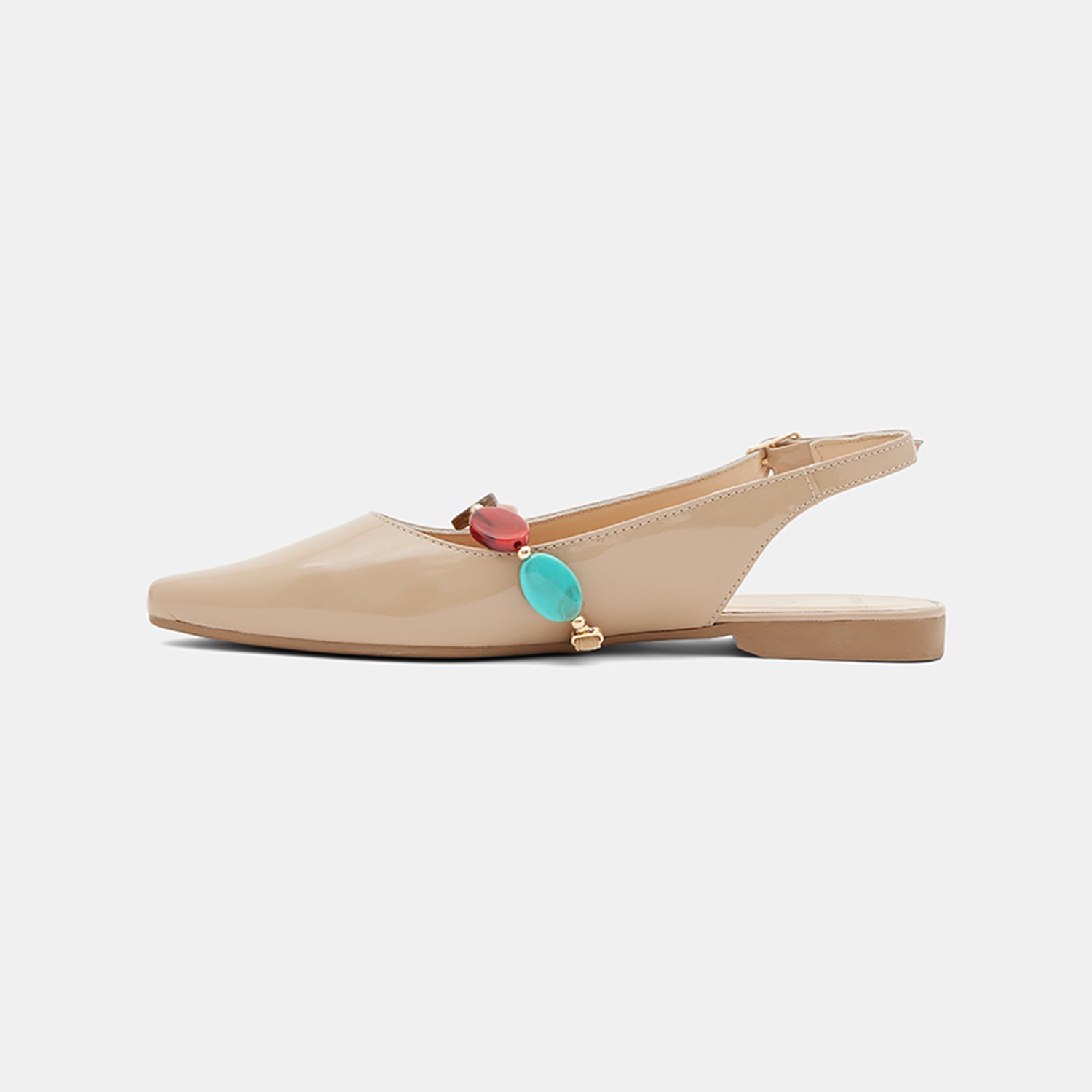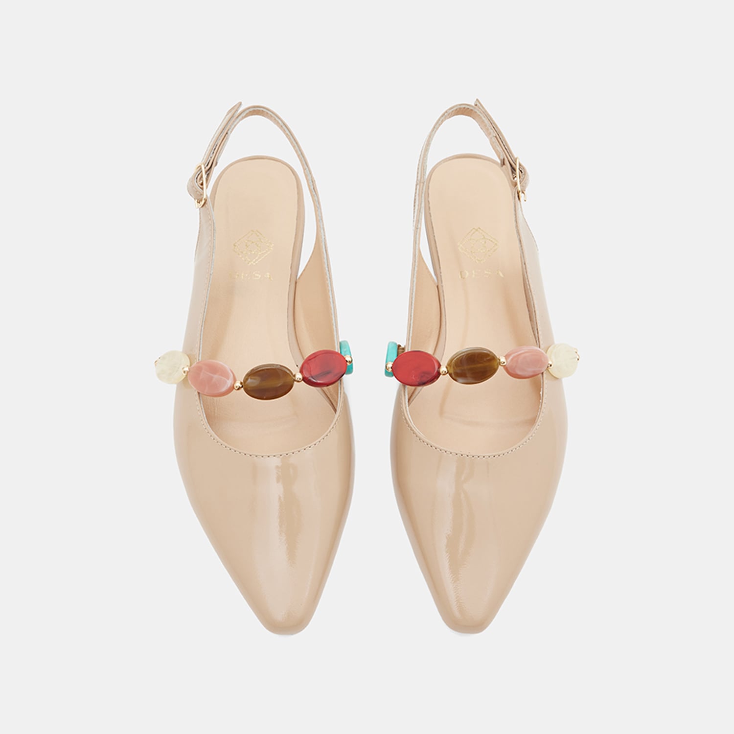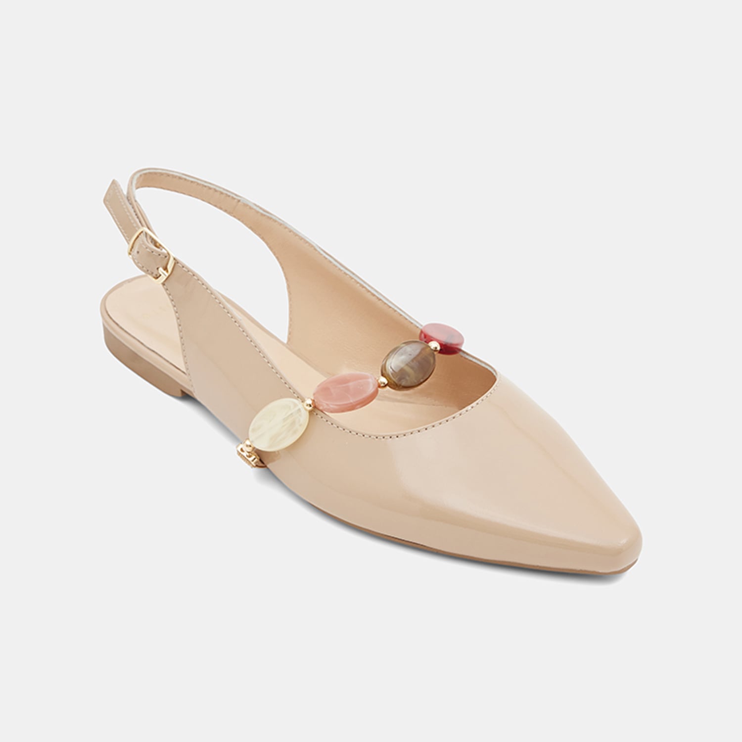 Kadın Ten Renkli Taş Aksesuarlı Sivri Burunlu Rugan Babet