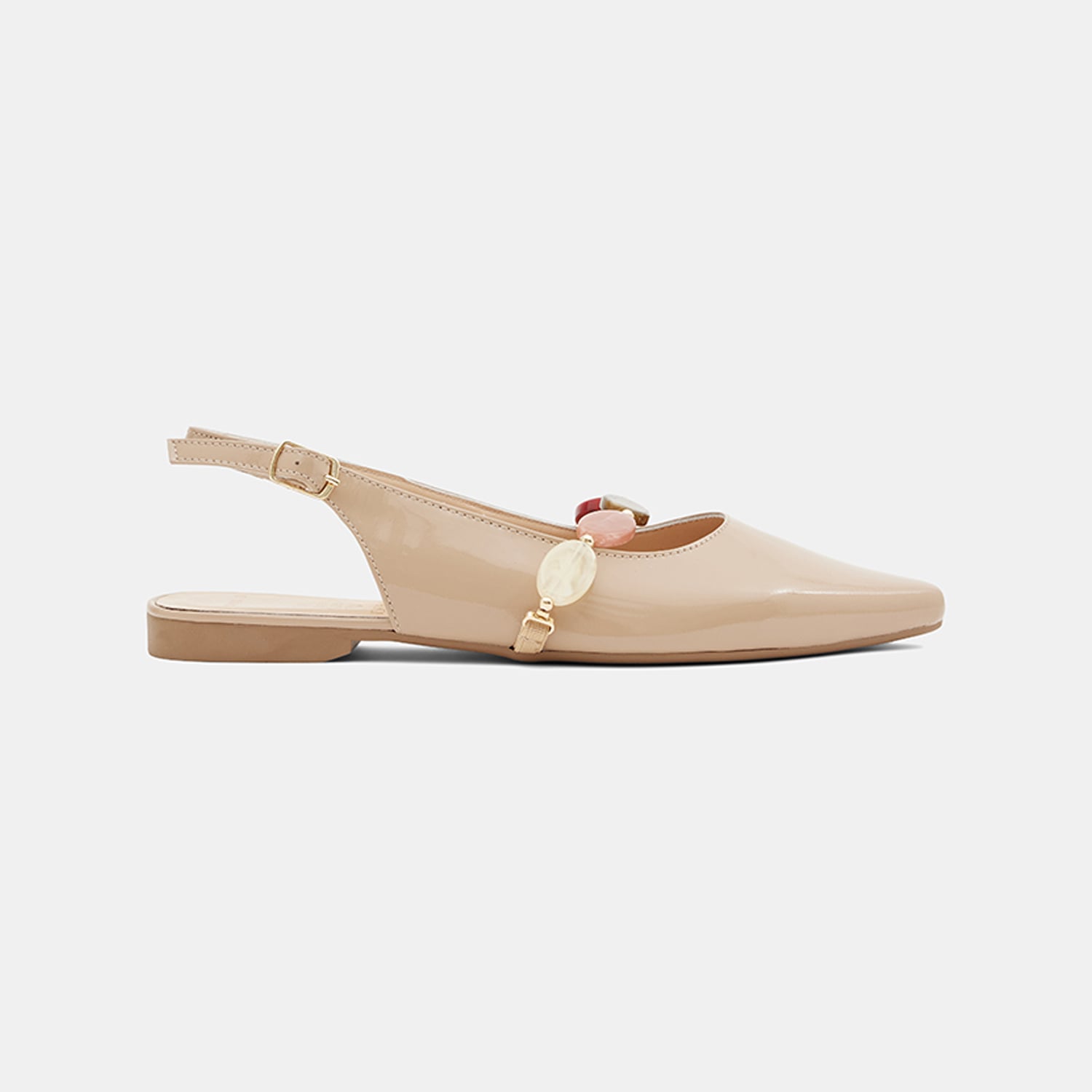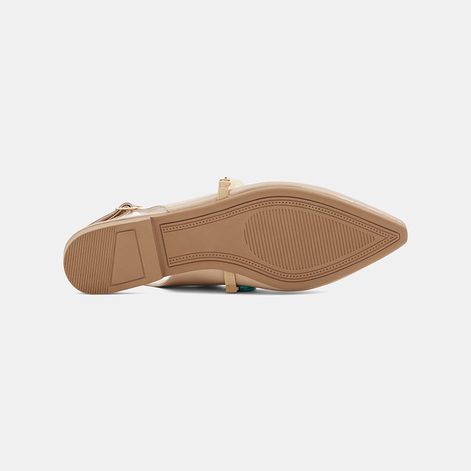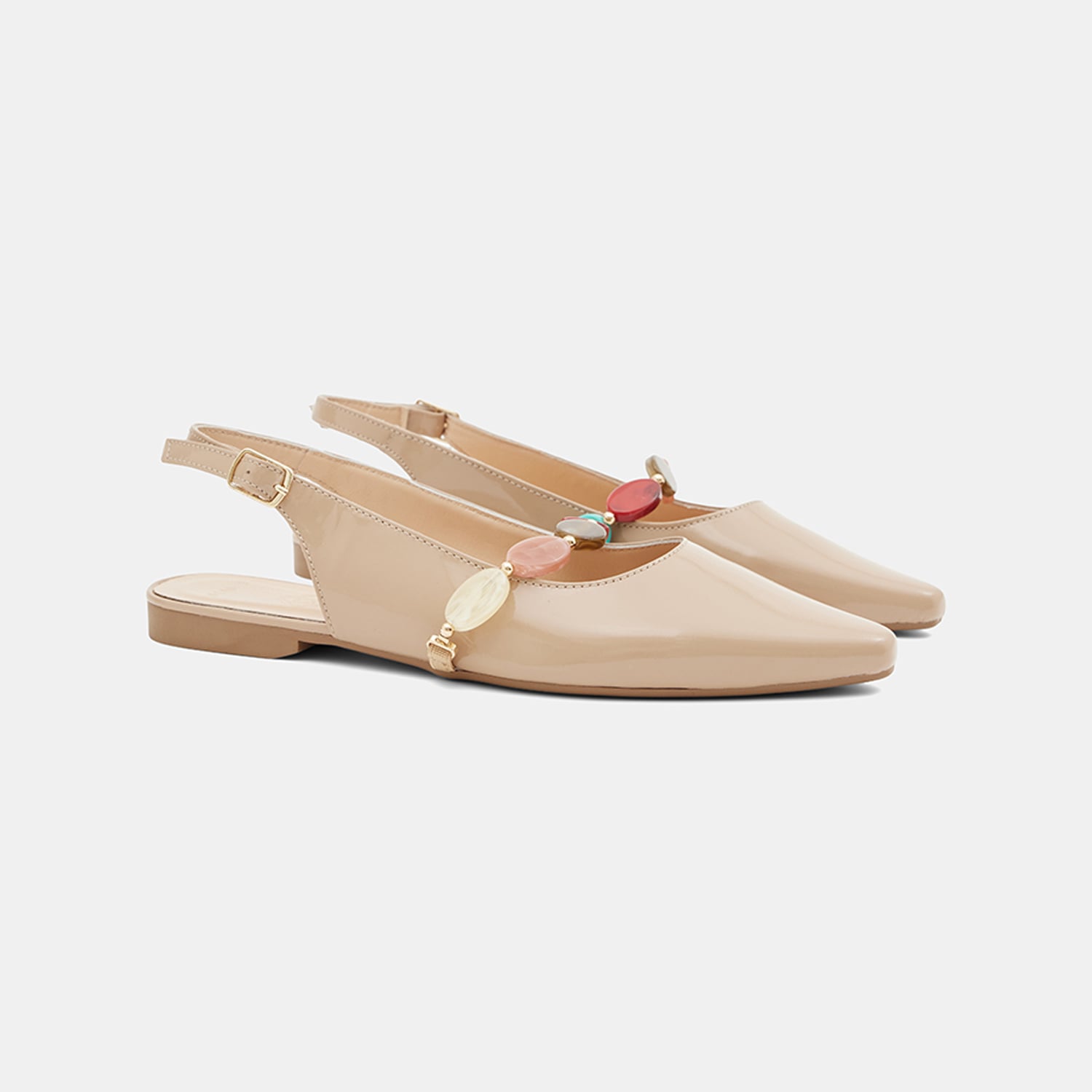 Kadın Ten Renkli Taş Aksesuarlı Sivri Burunlu Rugan Babet