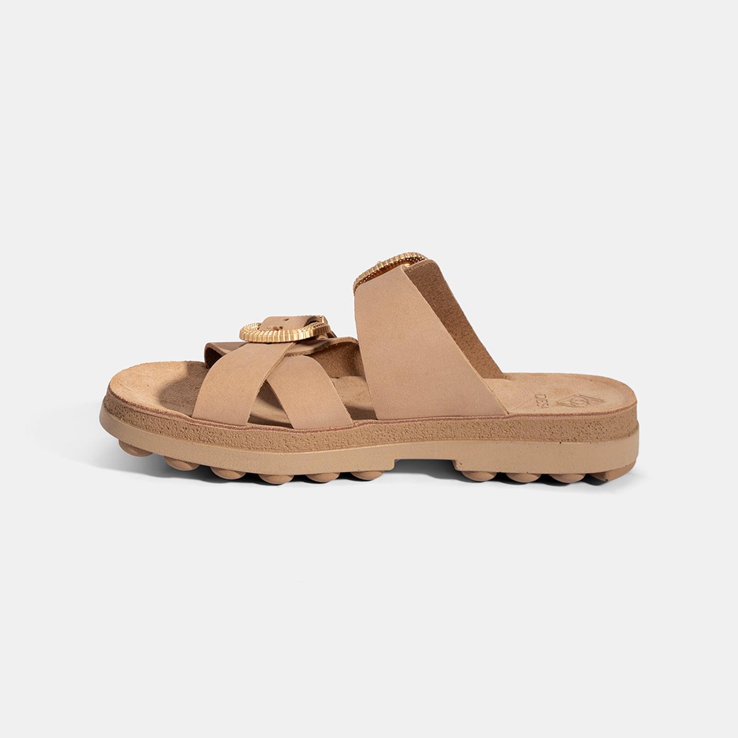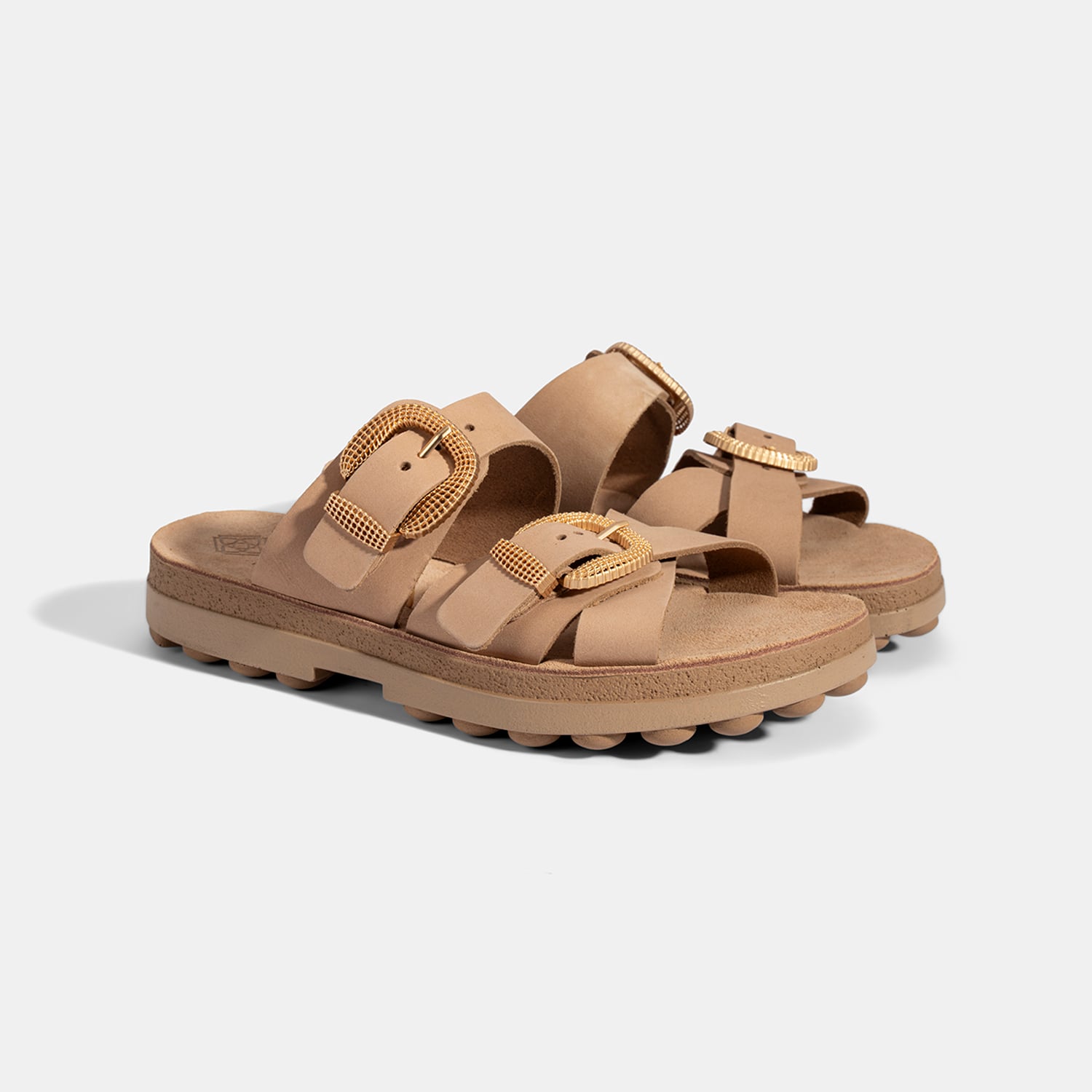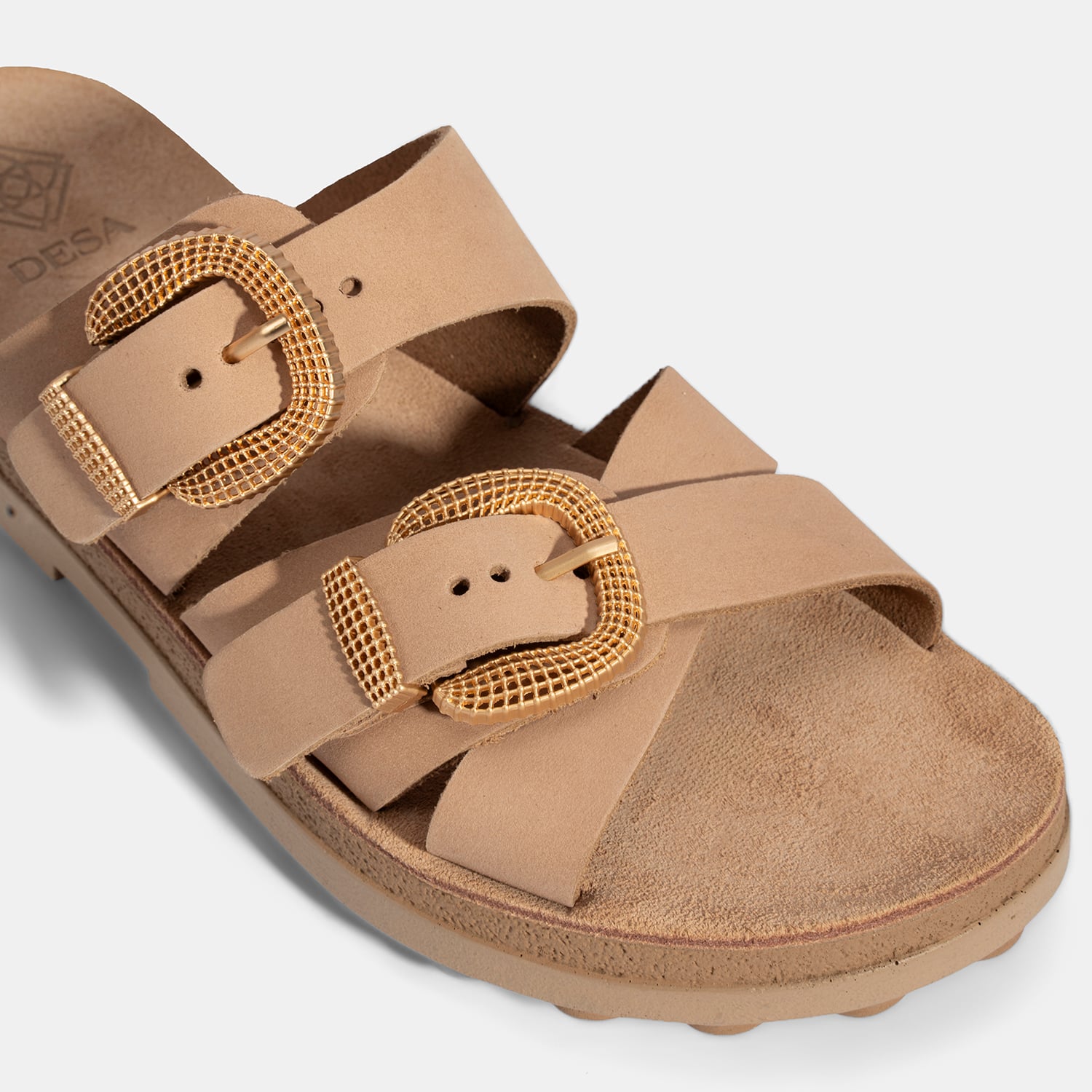 Kadın Ten Tokalı Dolgu Topuklu Nubuk Deri Terlik