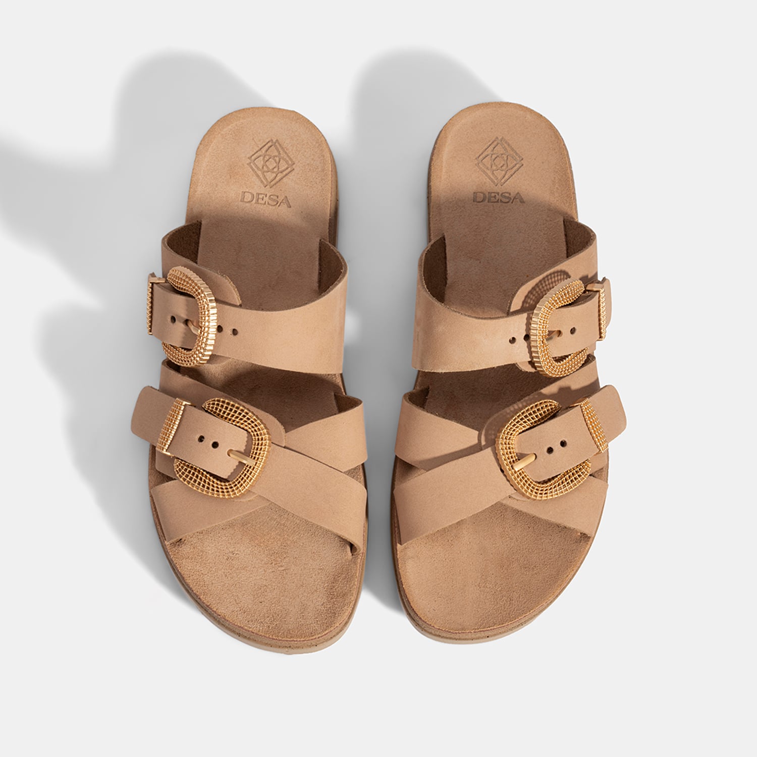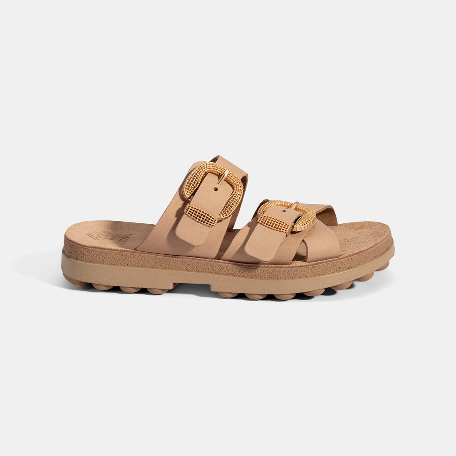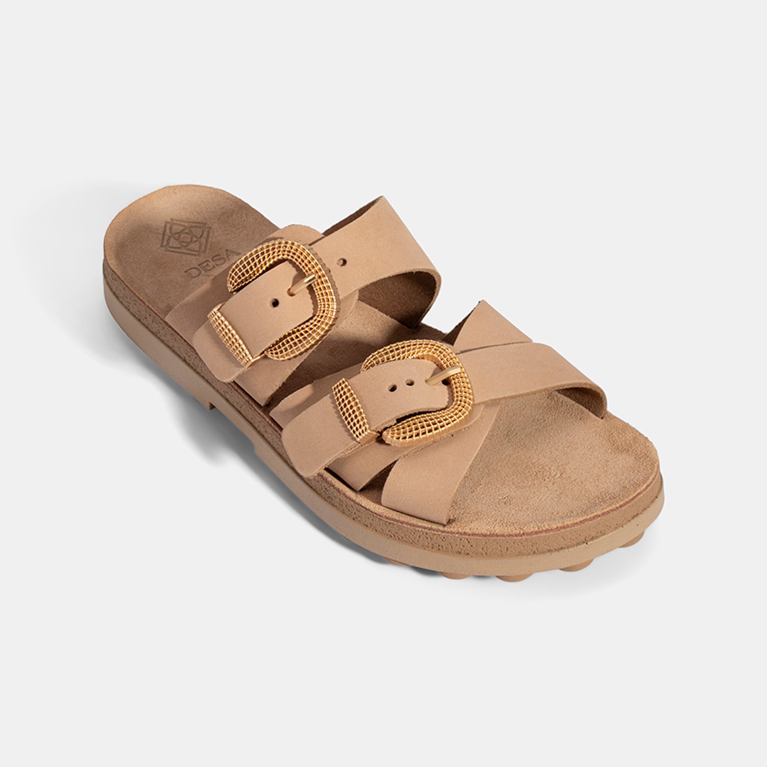 Kadın Ten Tokalı Dolgu Topuklu Nubuk Deri Terlik