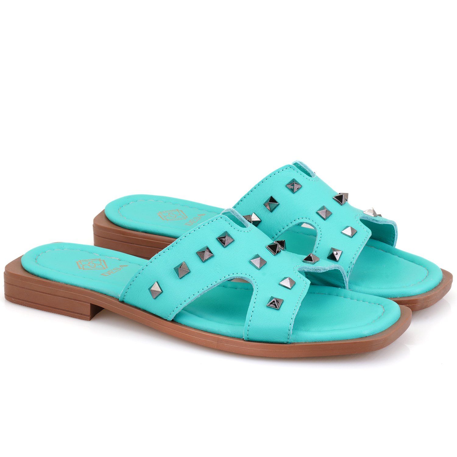 %100 deri, deri iç astarlı, deri iç tabanlı, metal pim detaylı, thermo tabanlı, kadın terlik.