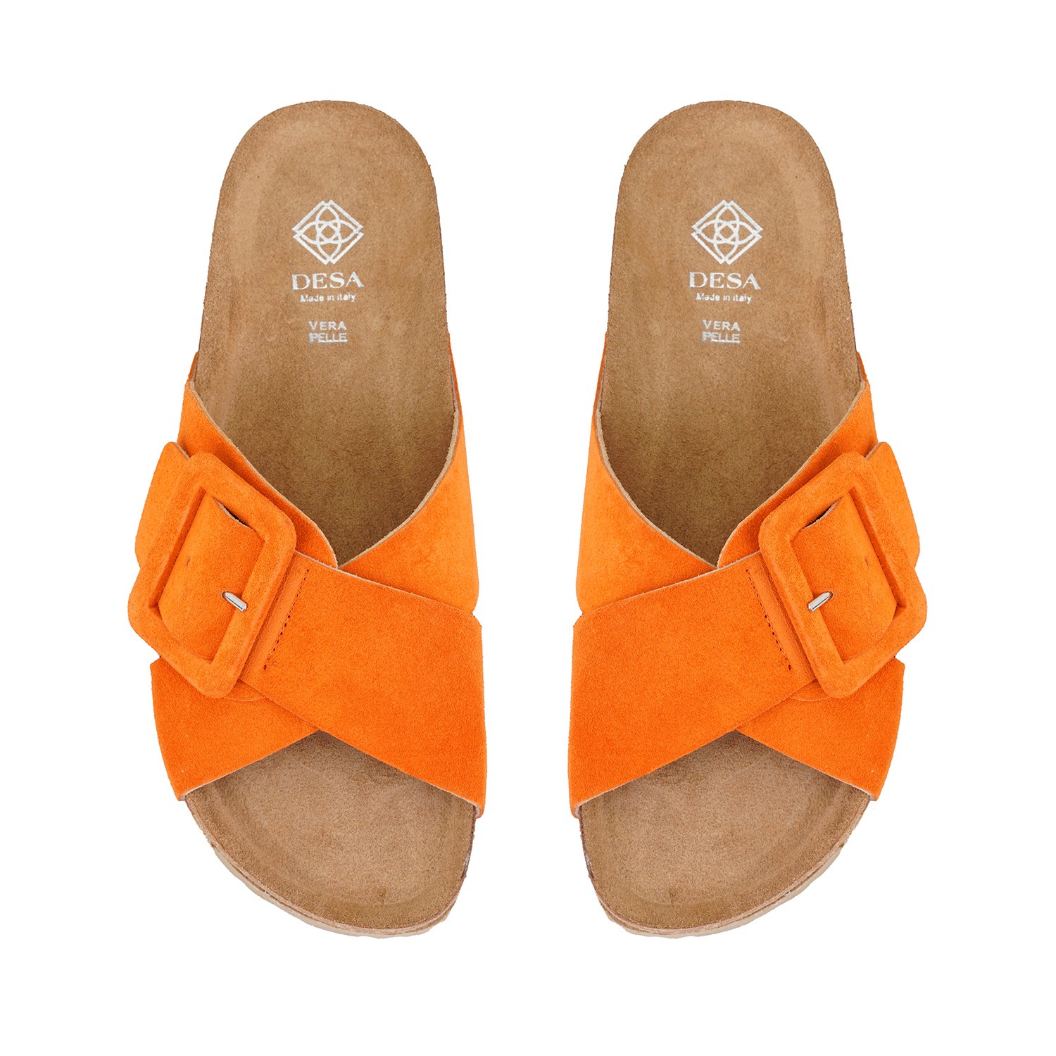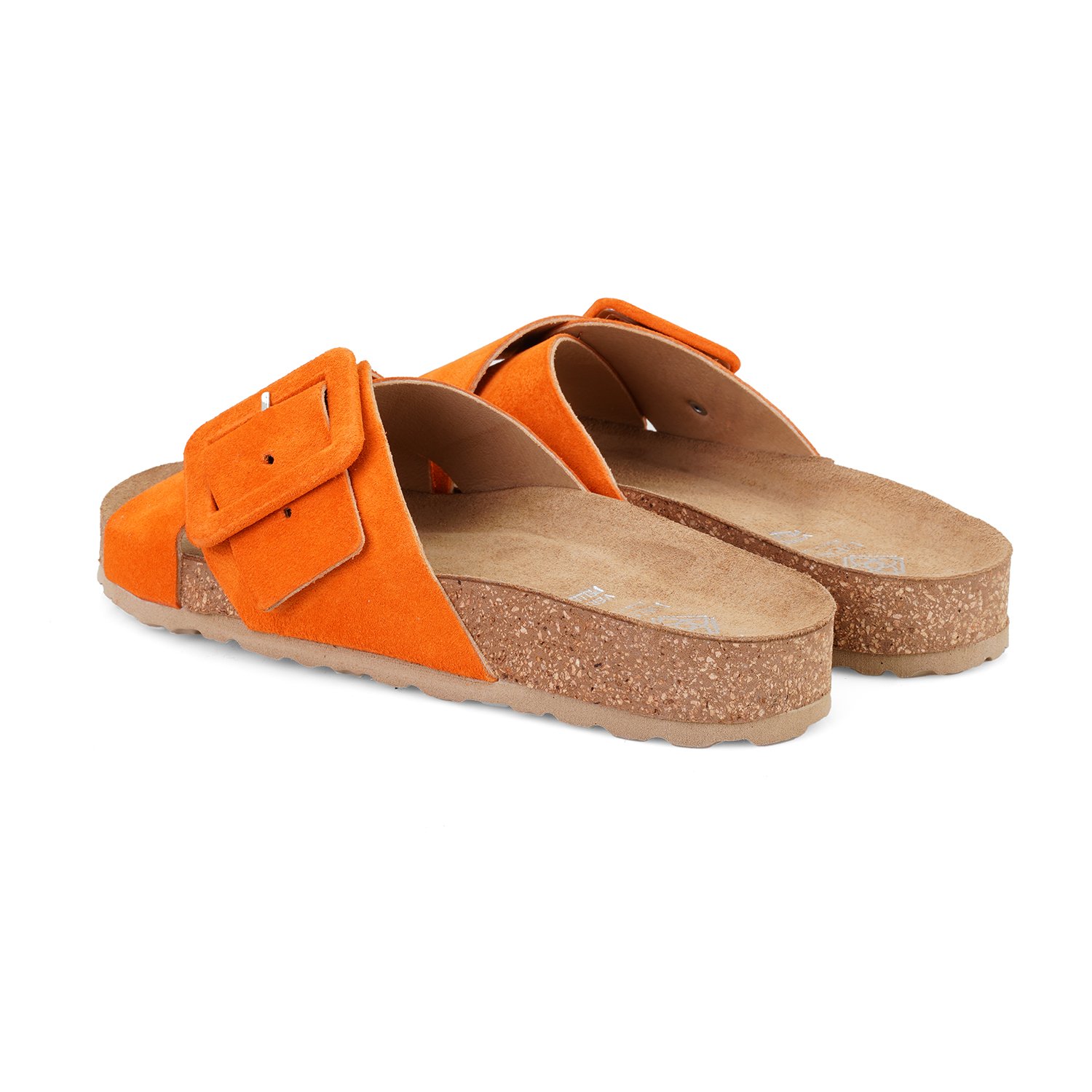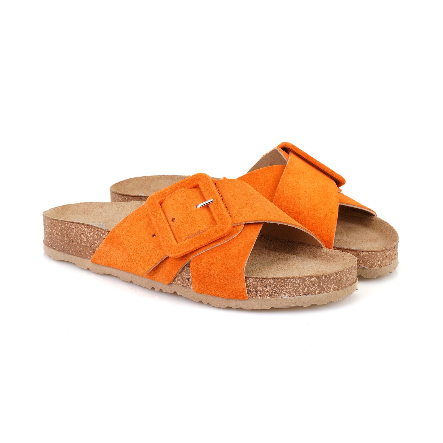 Kadın Turuncu Ayarlanabilir Tokalı Süet Deri Terlik