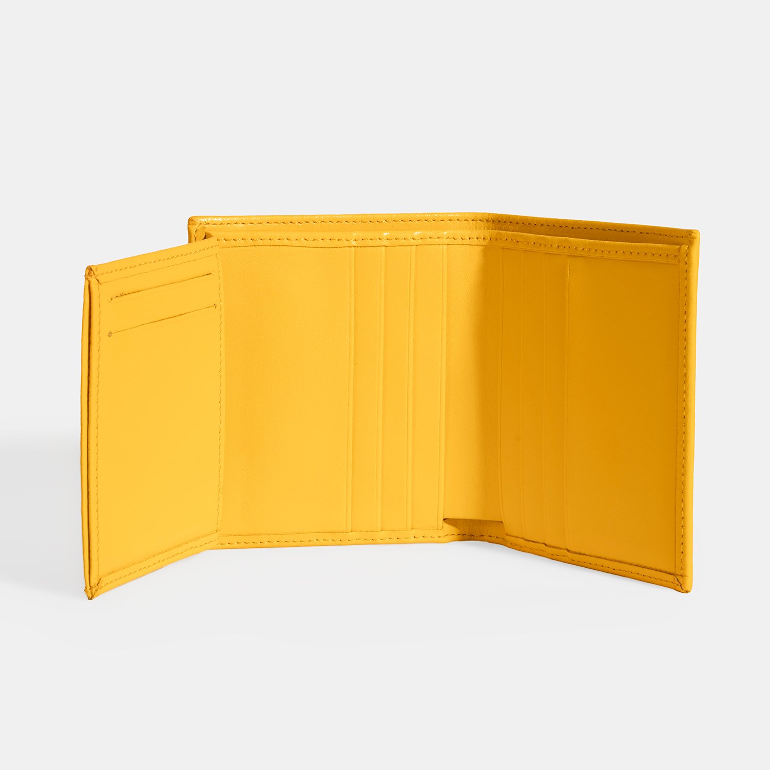 10 kredi kartı bölmesi, ehliyet ve kartvizit için fileli bölme ve kağıt para bölmesi bulunan şık kadın deri cüzdanı.