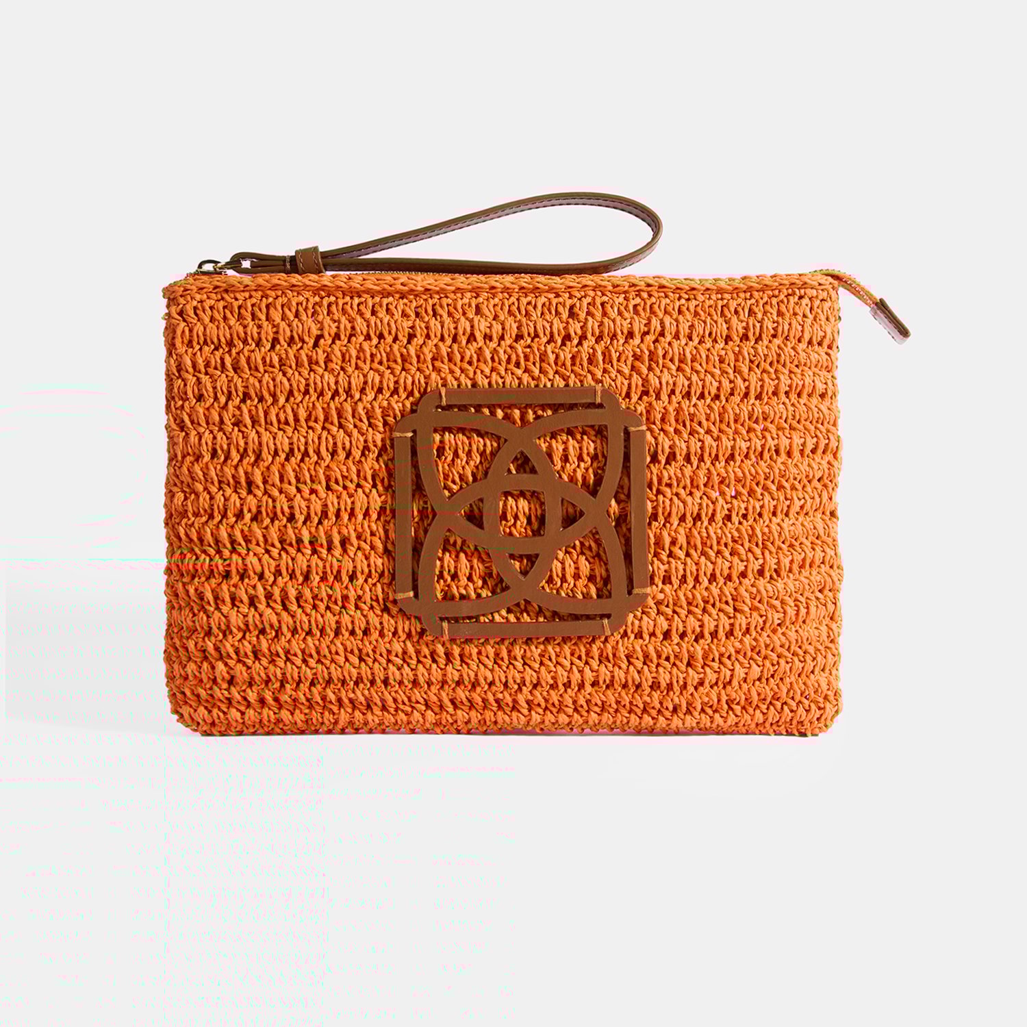 Kadın Turuncu Monogram Logolu Hasır El Çantası