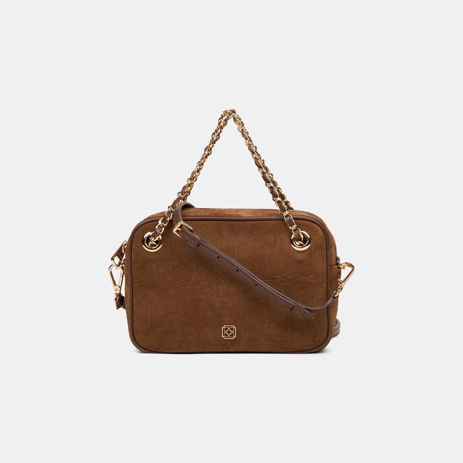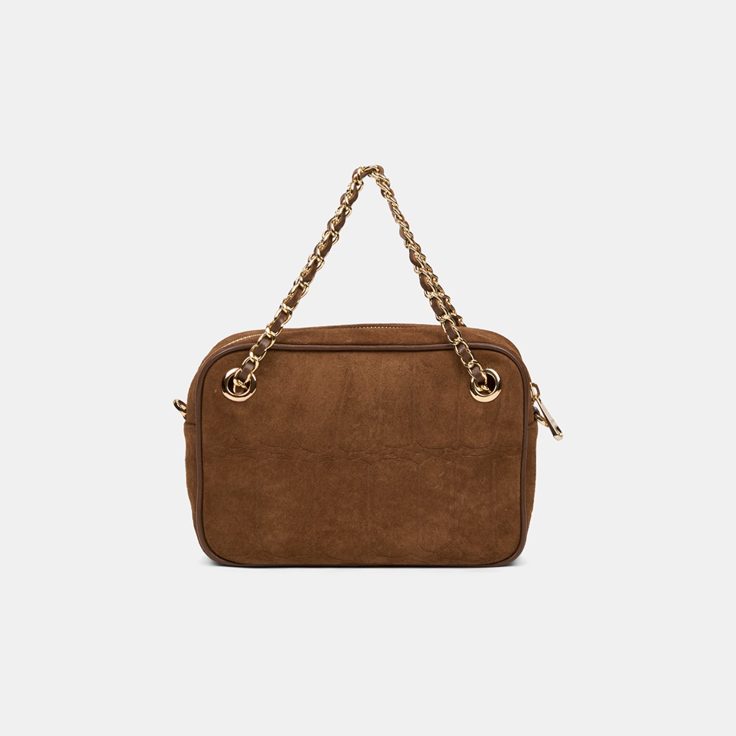 %100 baskılı süet dana derisinden üretilmiş dış yüzeyi tasarıma karakterli bir ifade kazandırır.