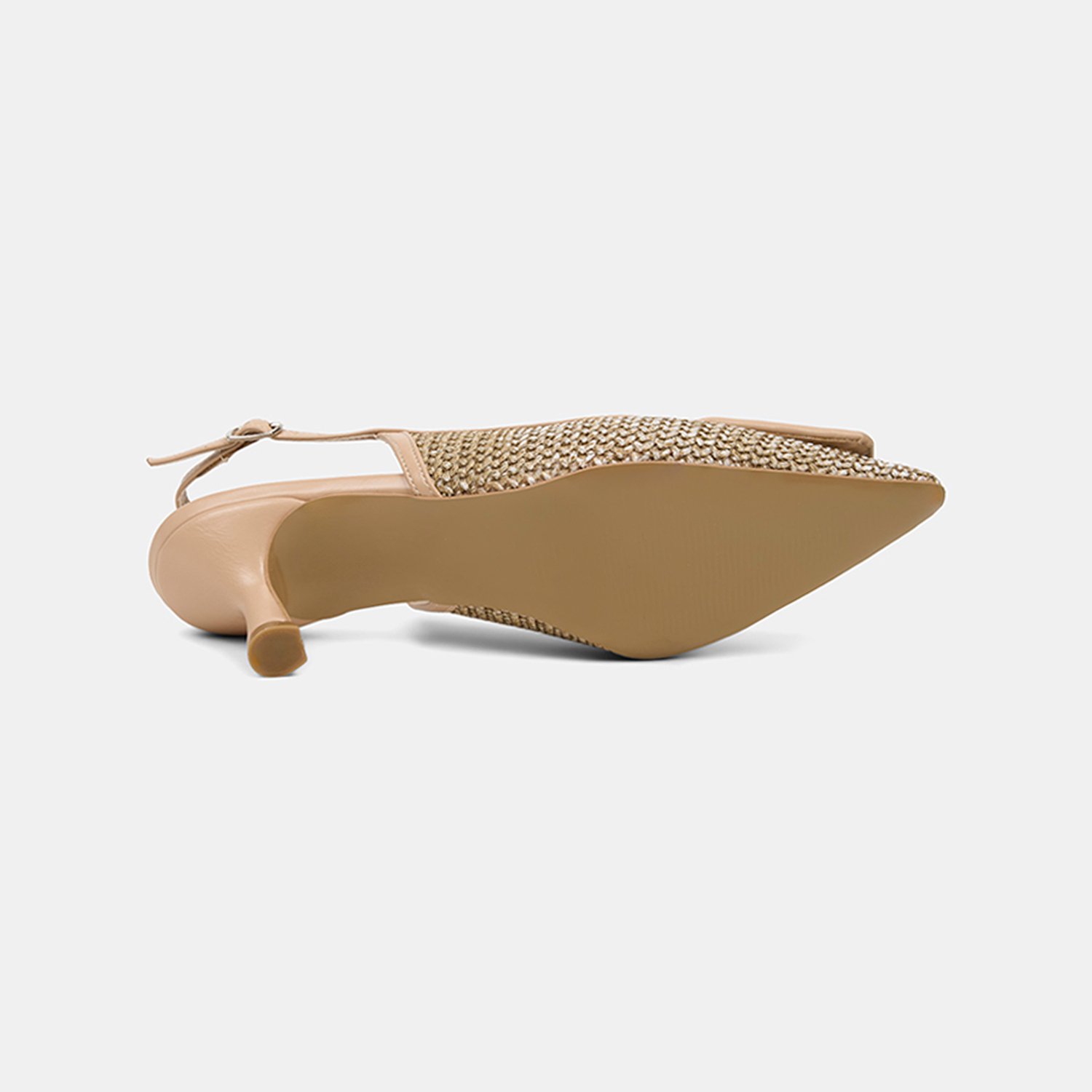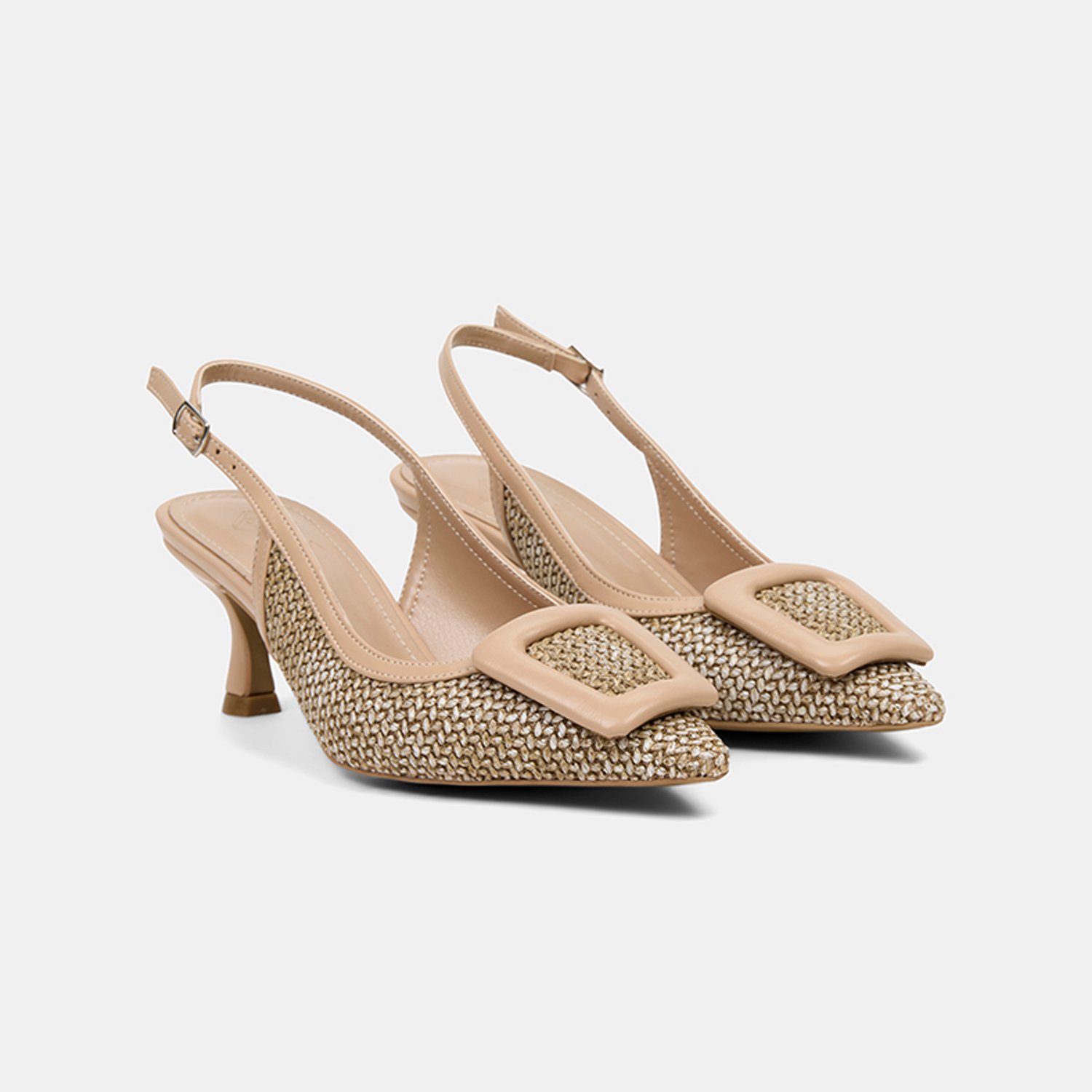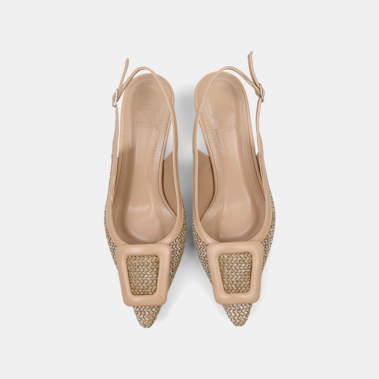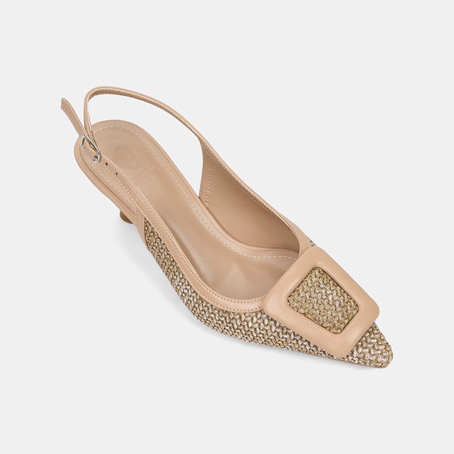 Burnu ve arkası açık tasarımı, modele hafif ve zarif bir siluet kazandırır