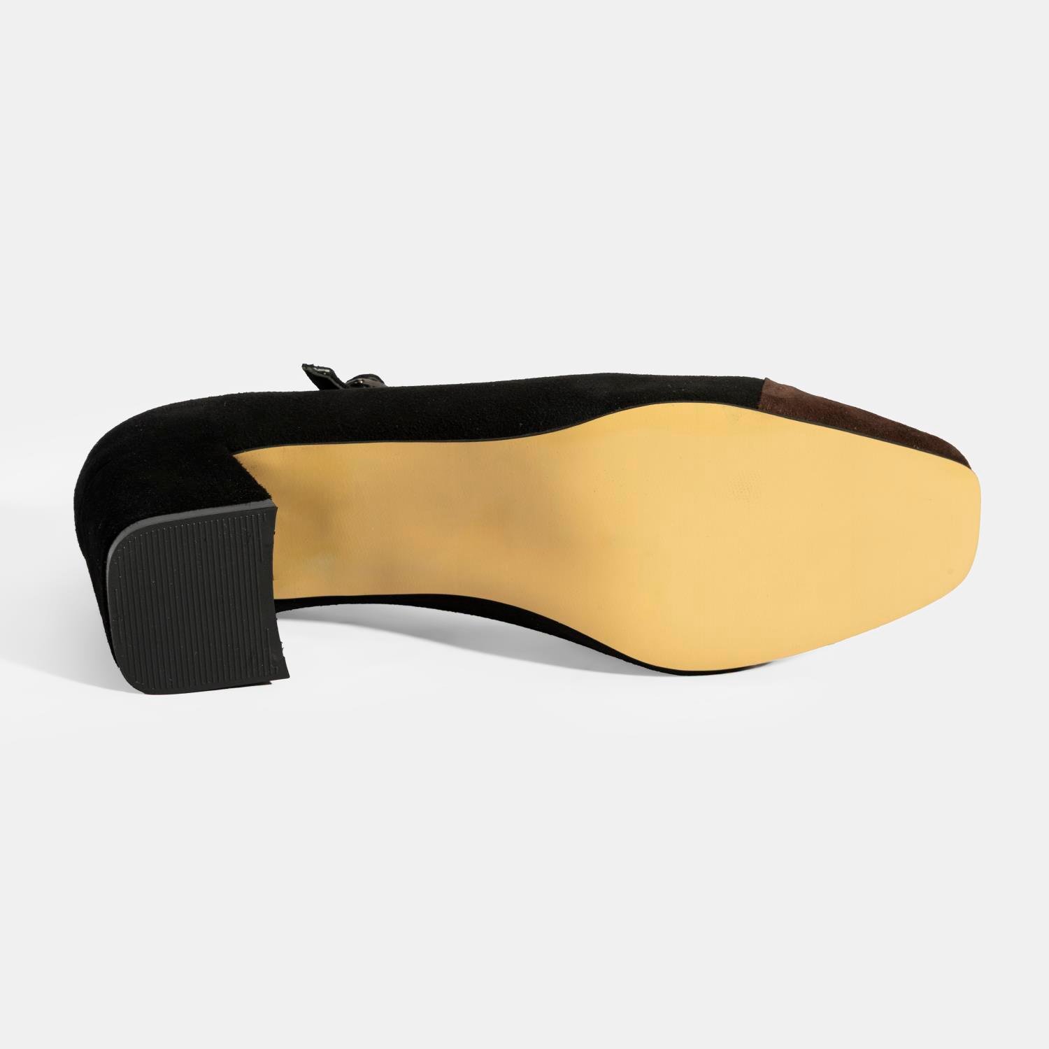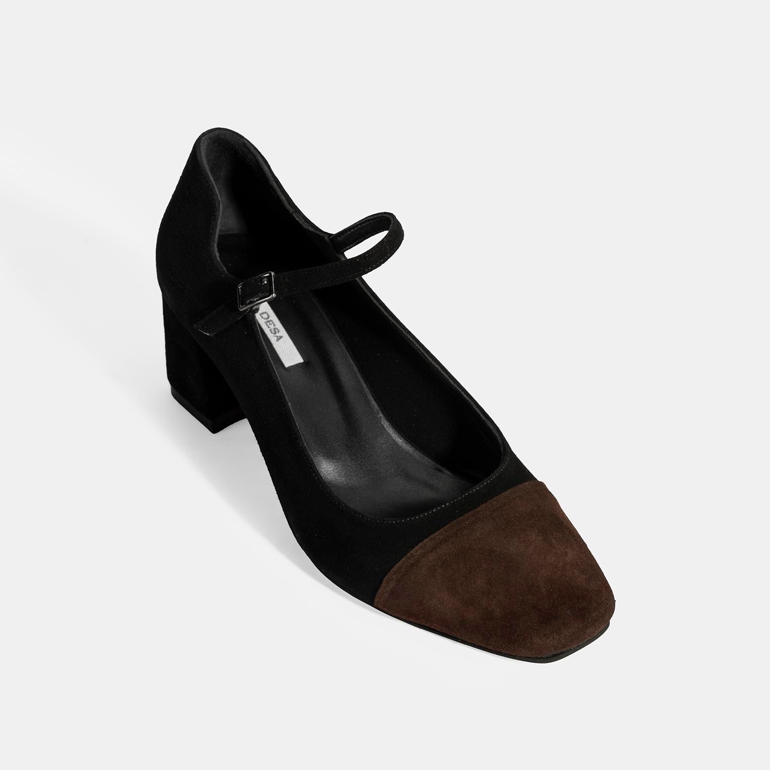 Kadın Siyah Ayarlanabilir Tokalı Süet Topuklu Ayakkabı