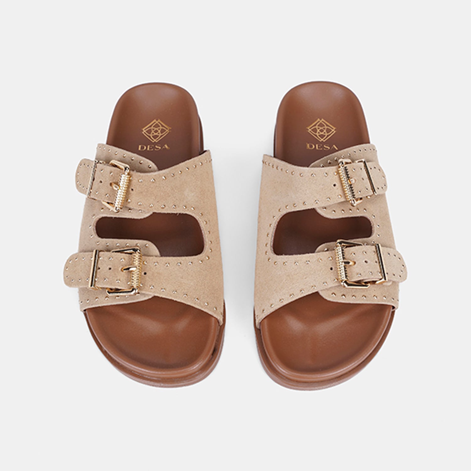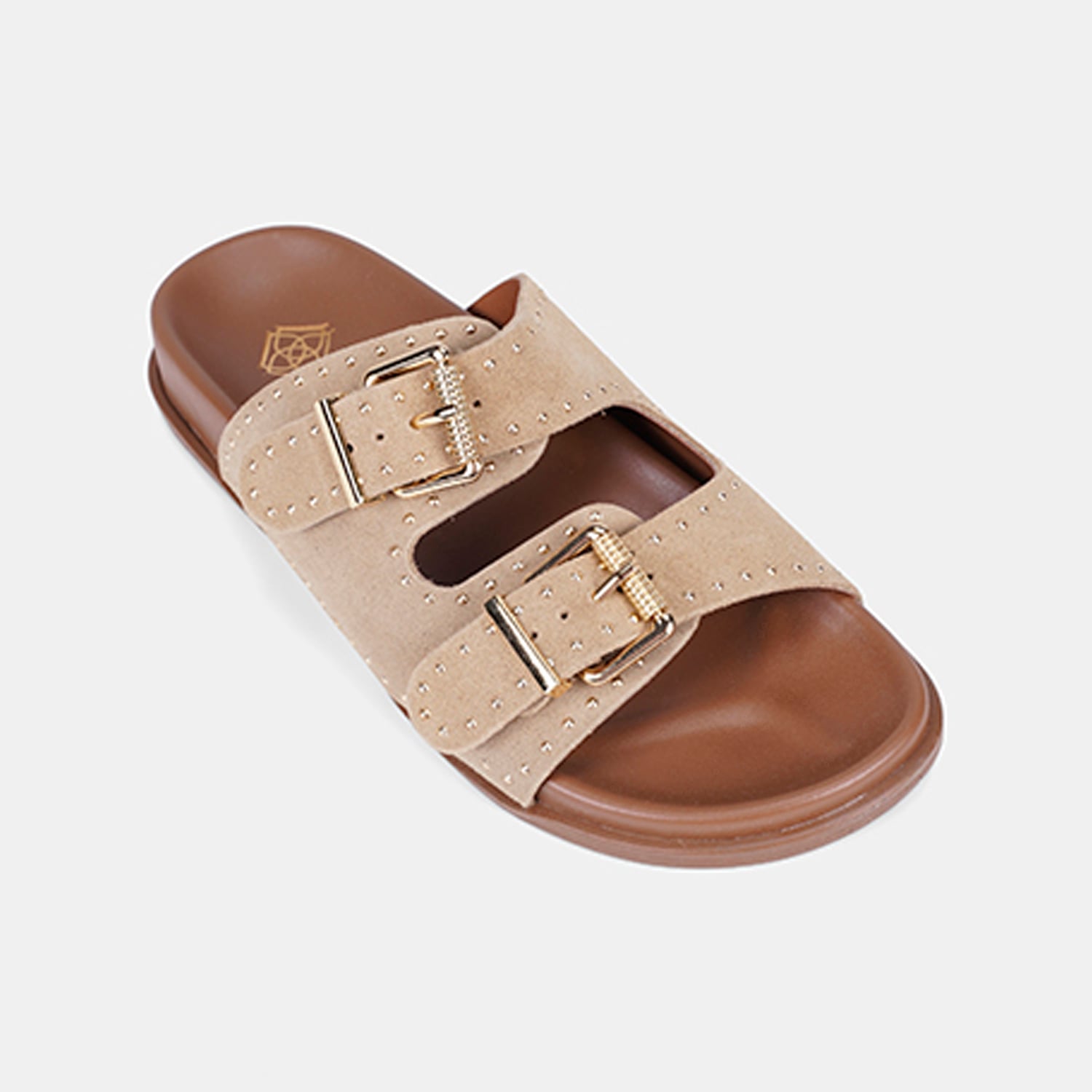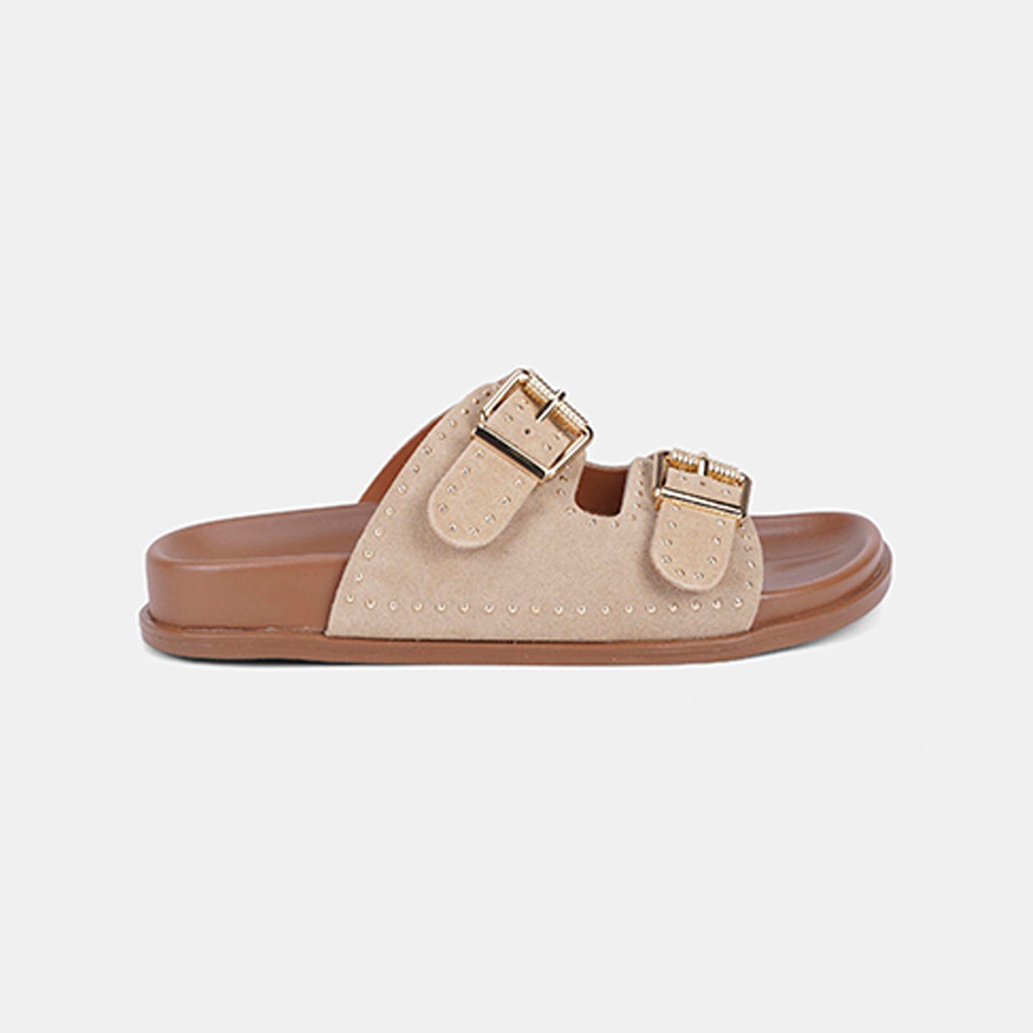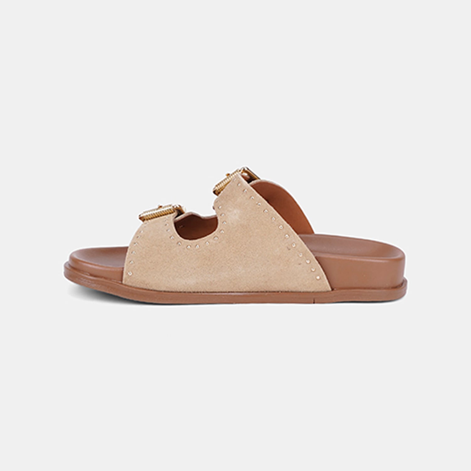 Kadın Vizon Çift Metal Tokalı Zımba Detaylı Süet Terlik
