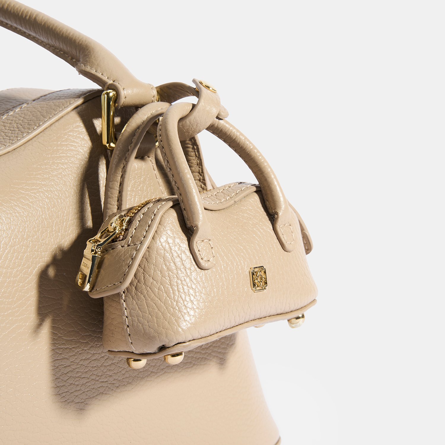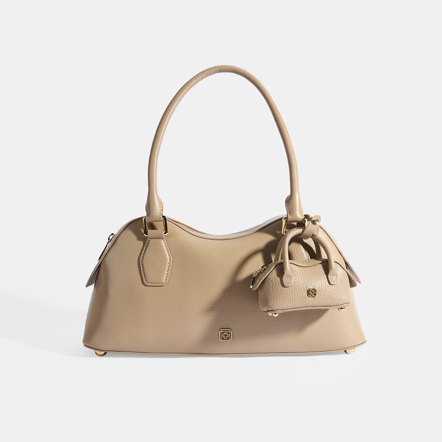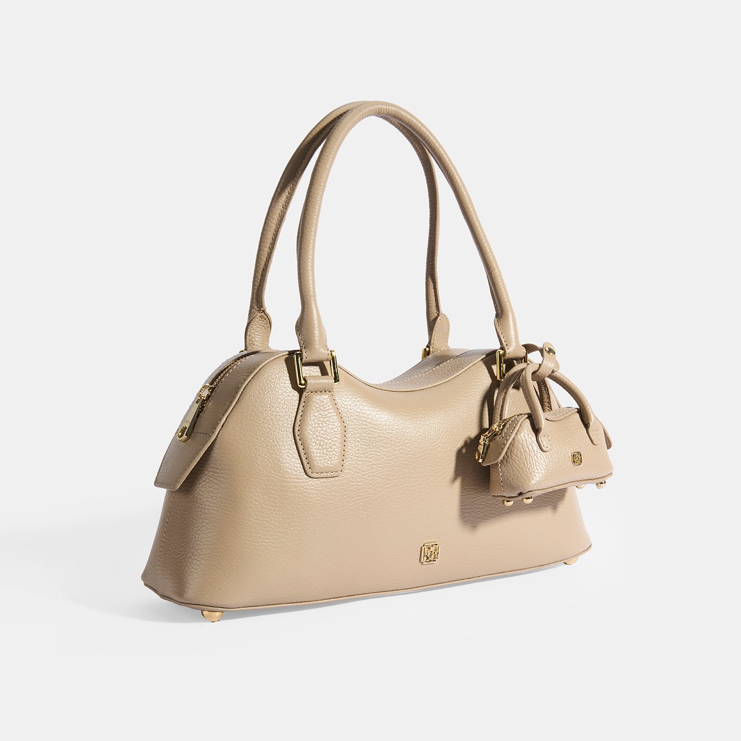 Kadın Vizon Deri Çanta Aksesuarlı Büyük Omuz Çantası