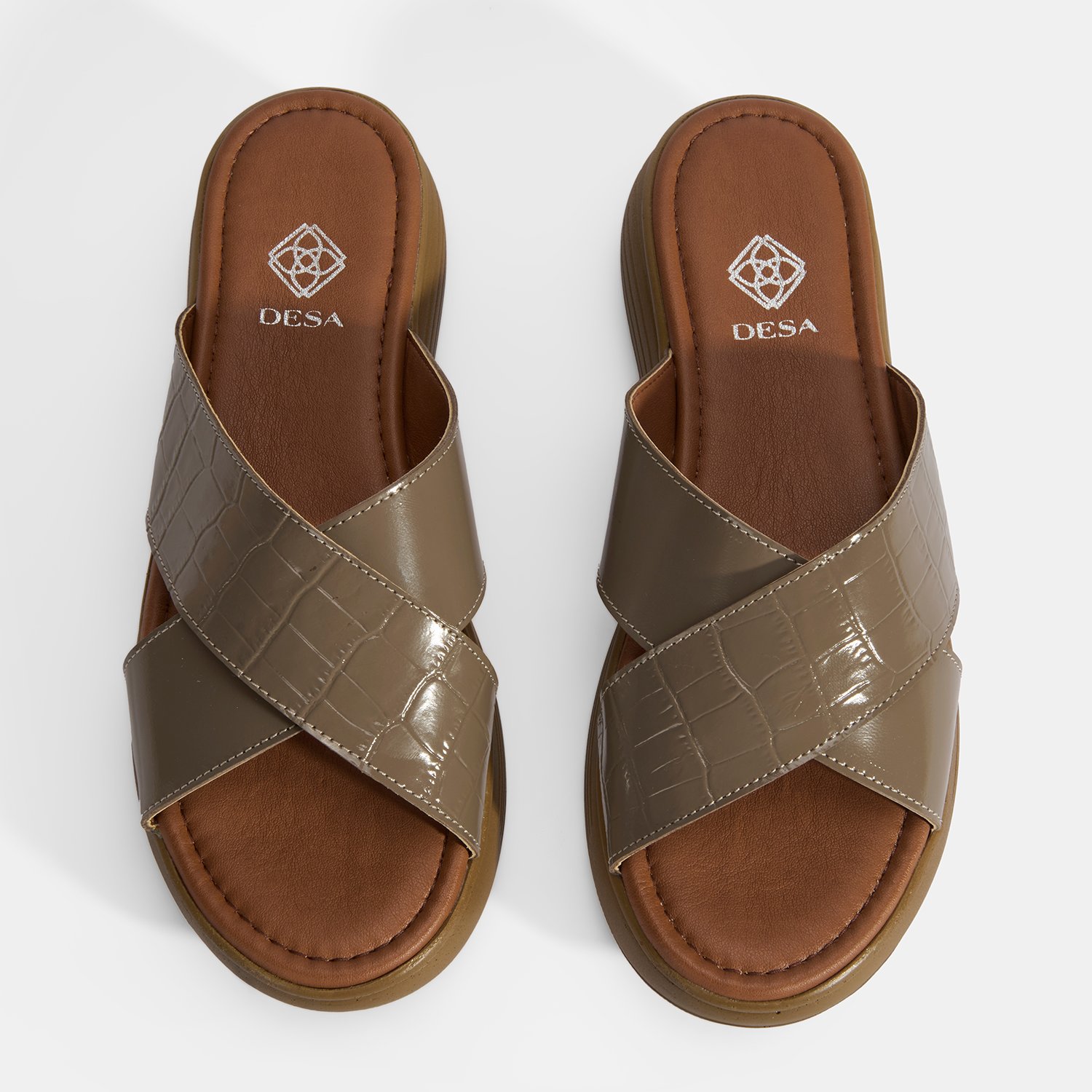 %50 kroko baskılı deri, %50 deri, deri iç tabanlı, deri astarlı, pu tabanlı, kadın terlik.
