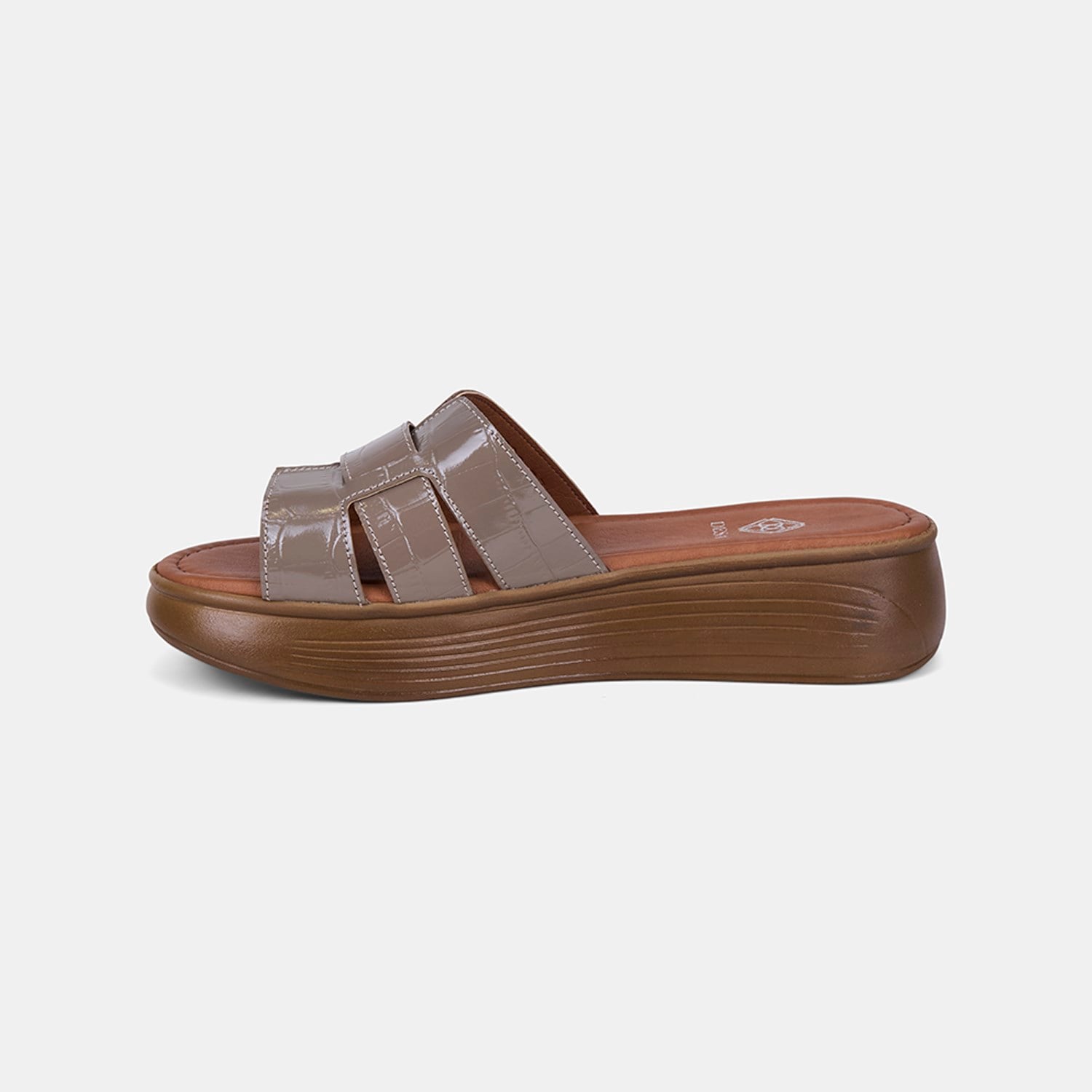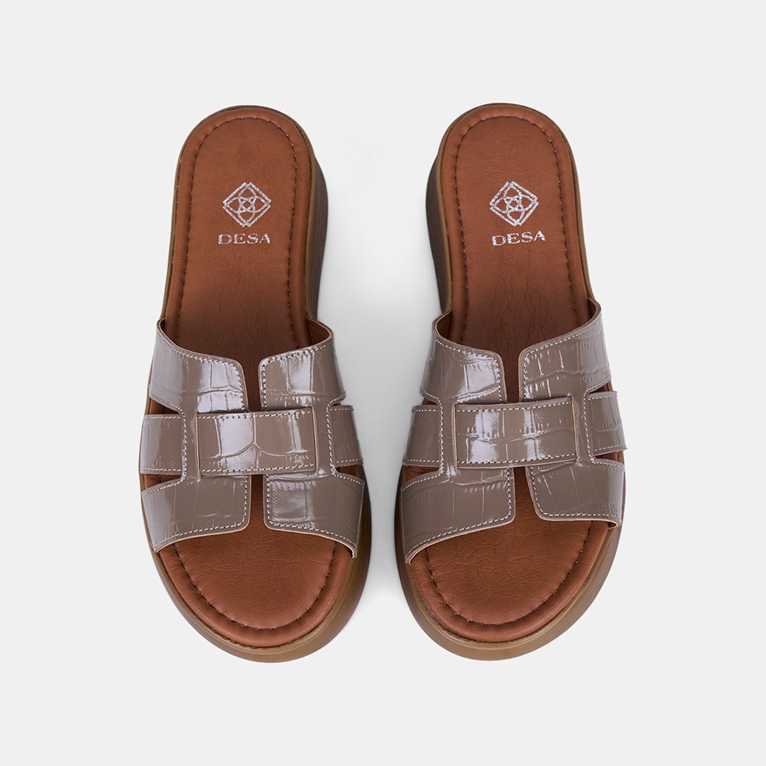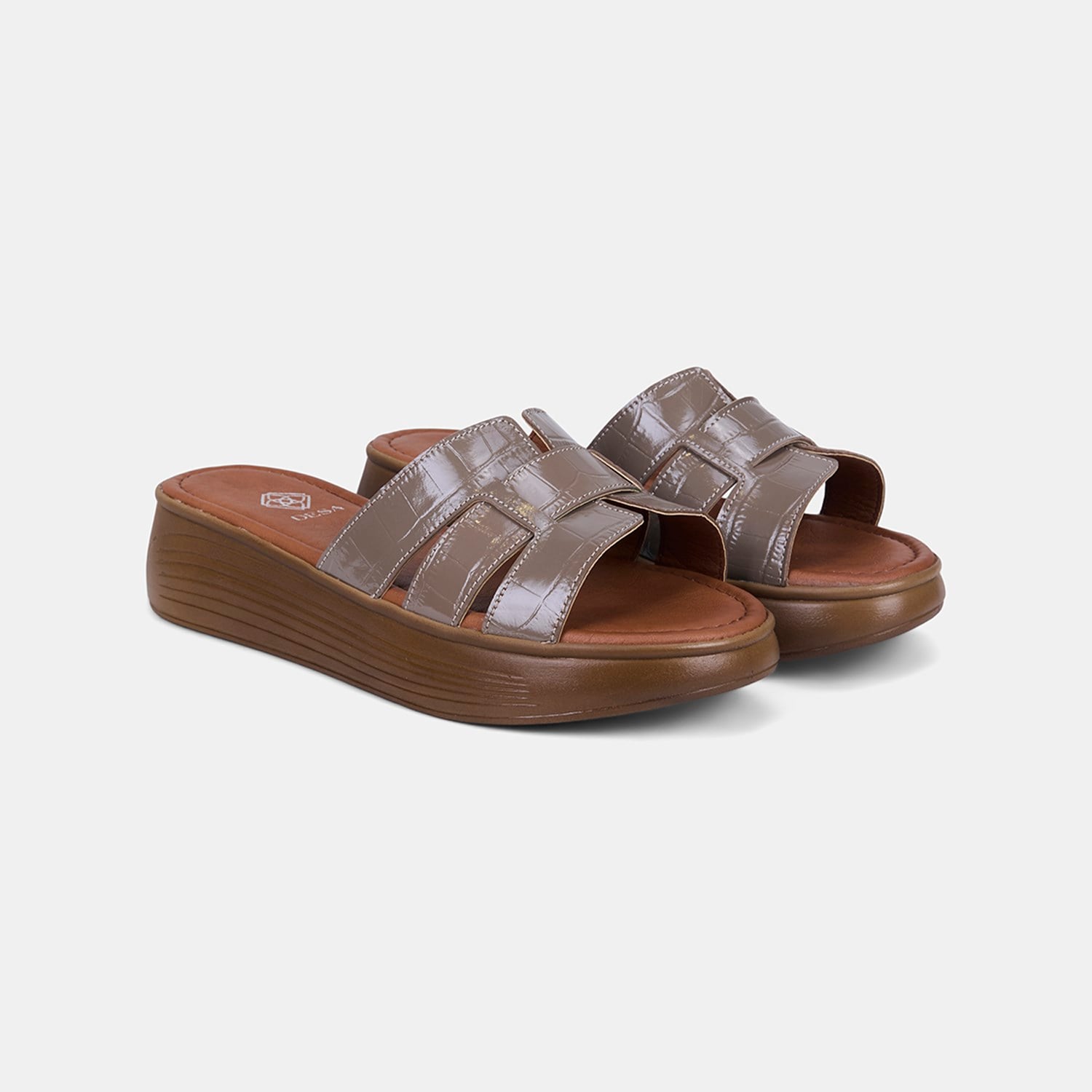 Kadın Vizon Kroko Baskılı Dolgu Topuklu Rugan Deri Terlik