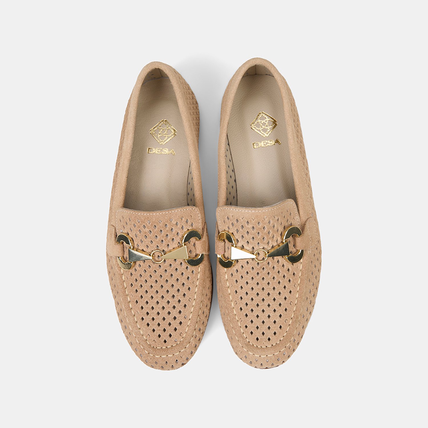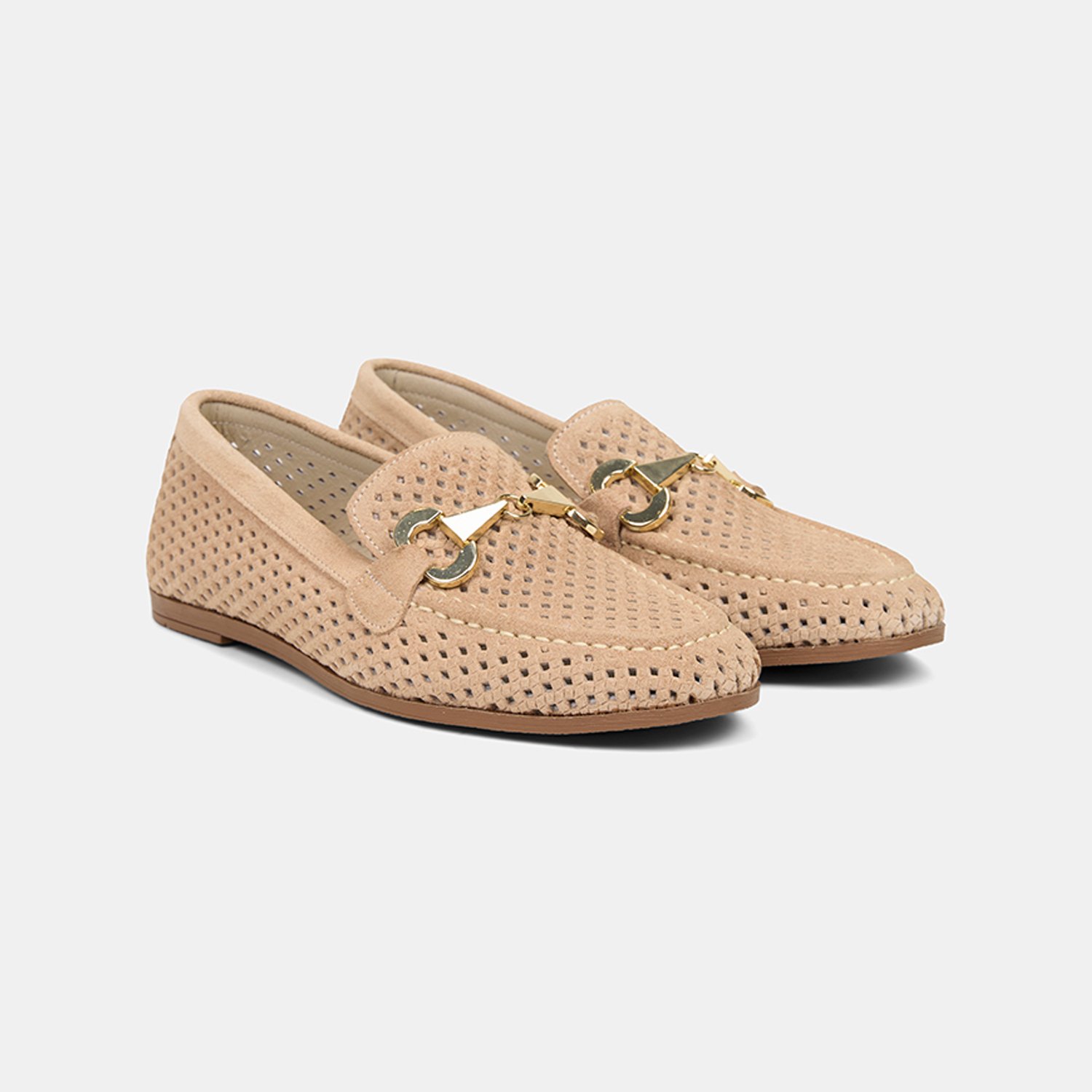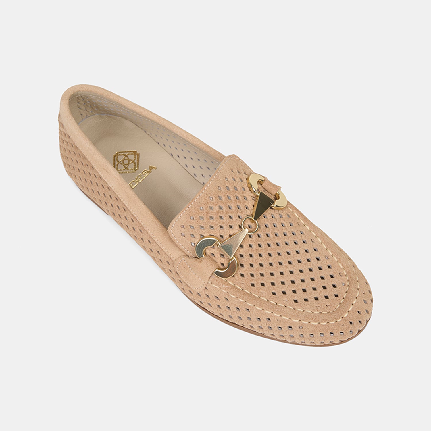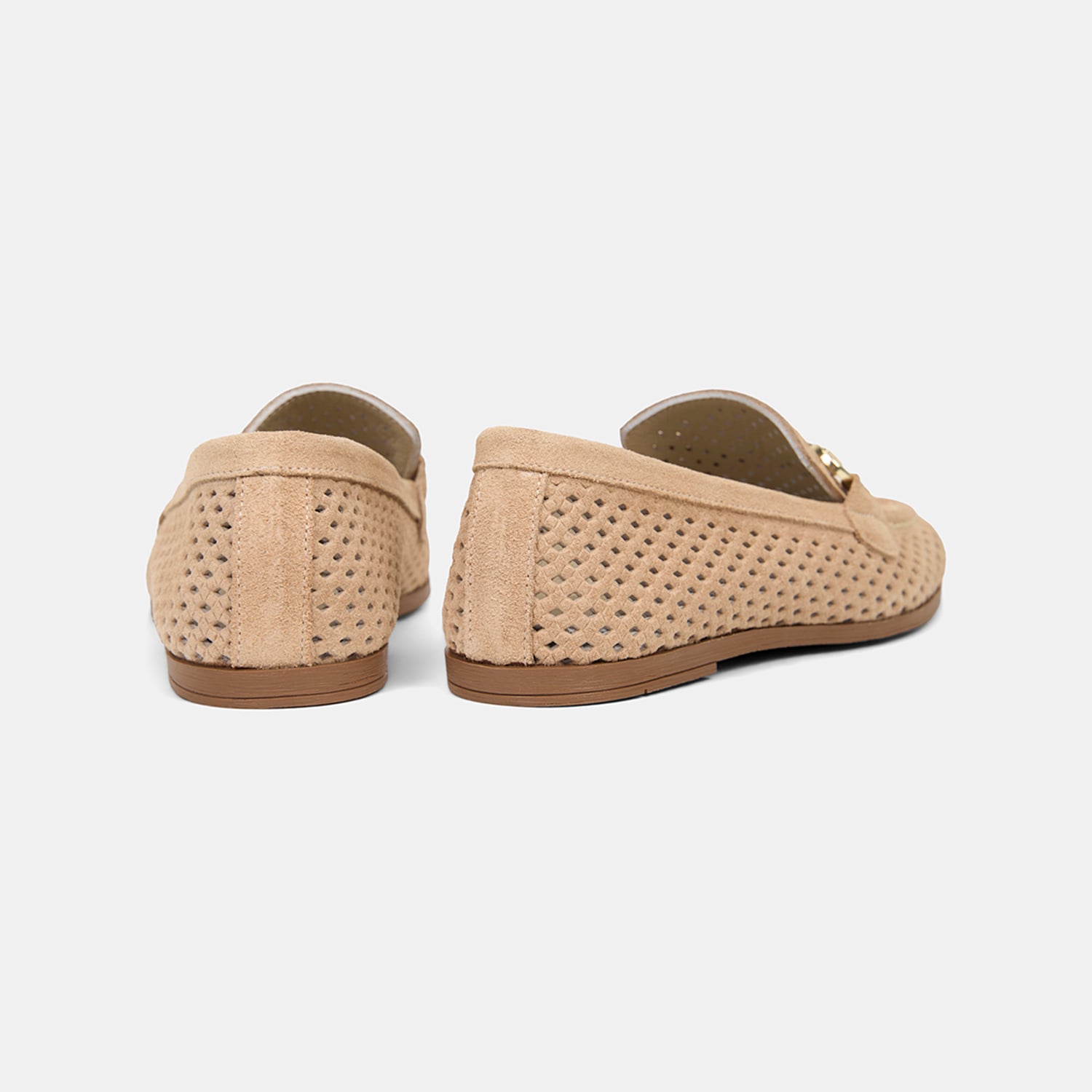 Kadın Vizon Metal Aksesuarlı Perforeli Süet Loafer