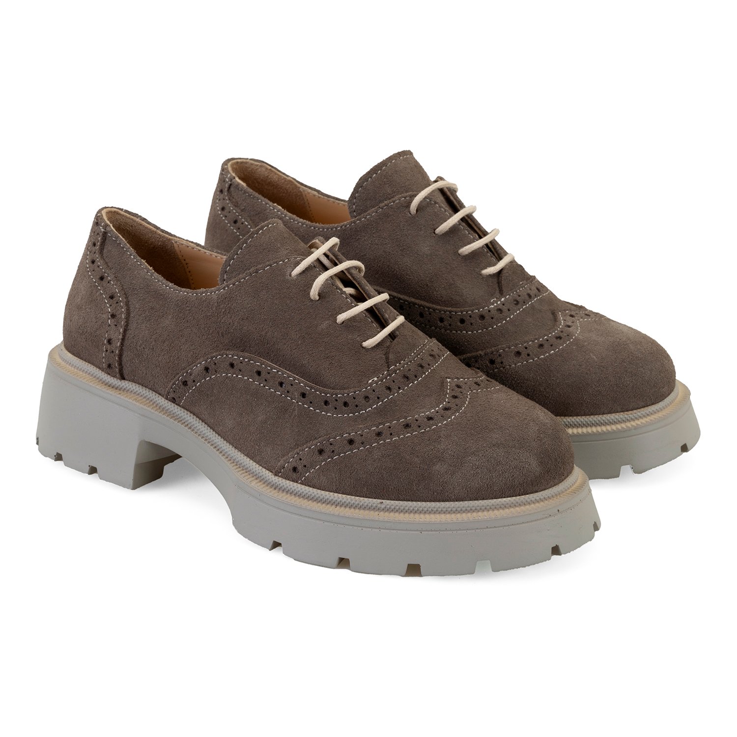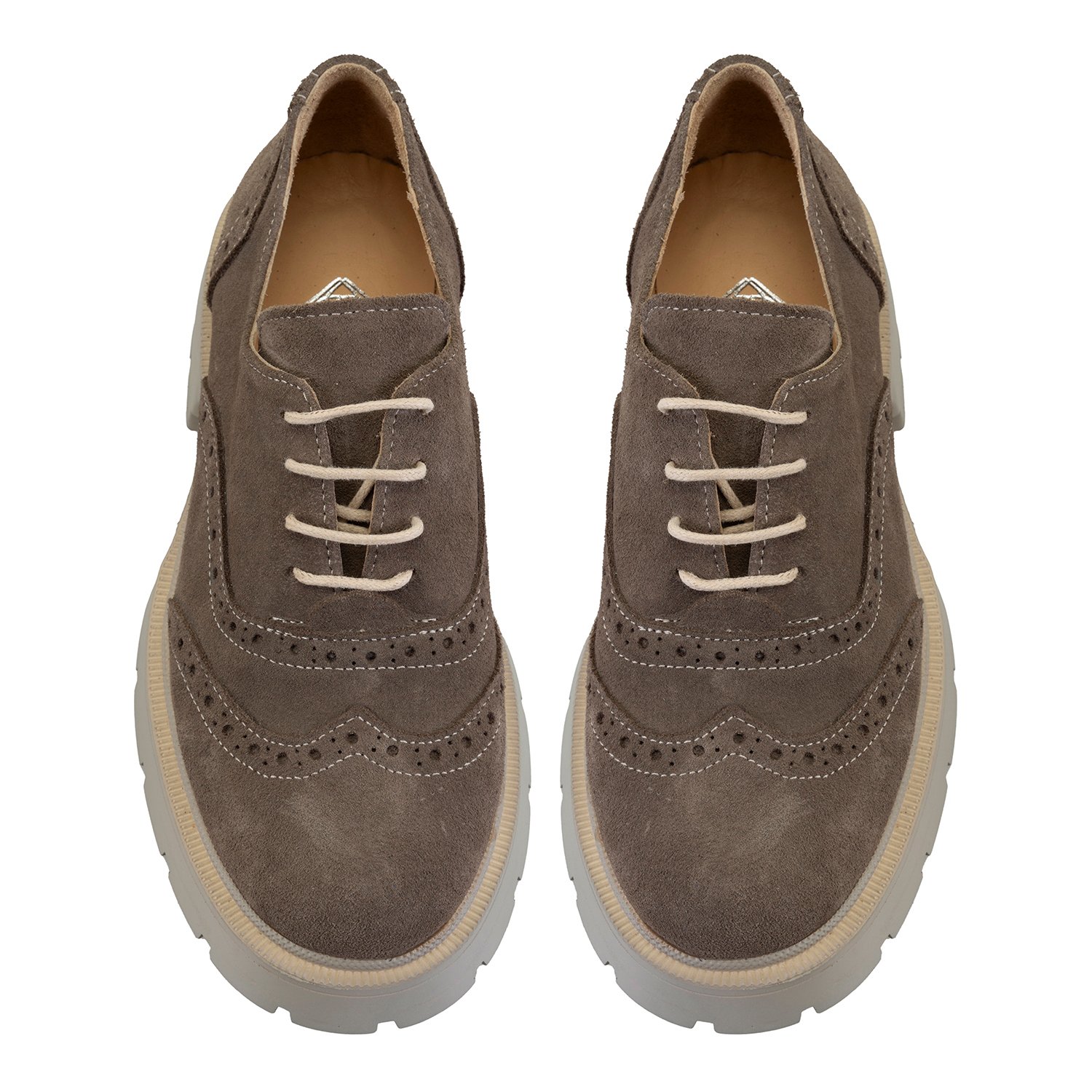 %100 süet deri, deri iç tabanlı, deri astarlı, pu tabanlı, bağcıklı kadın ayakkabı.