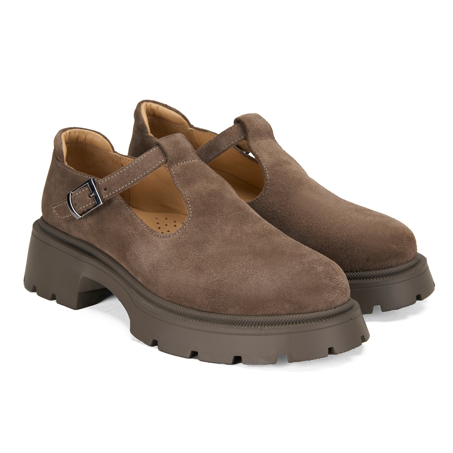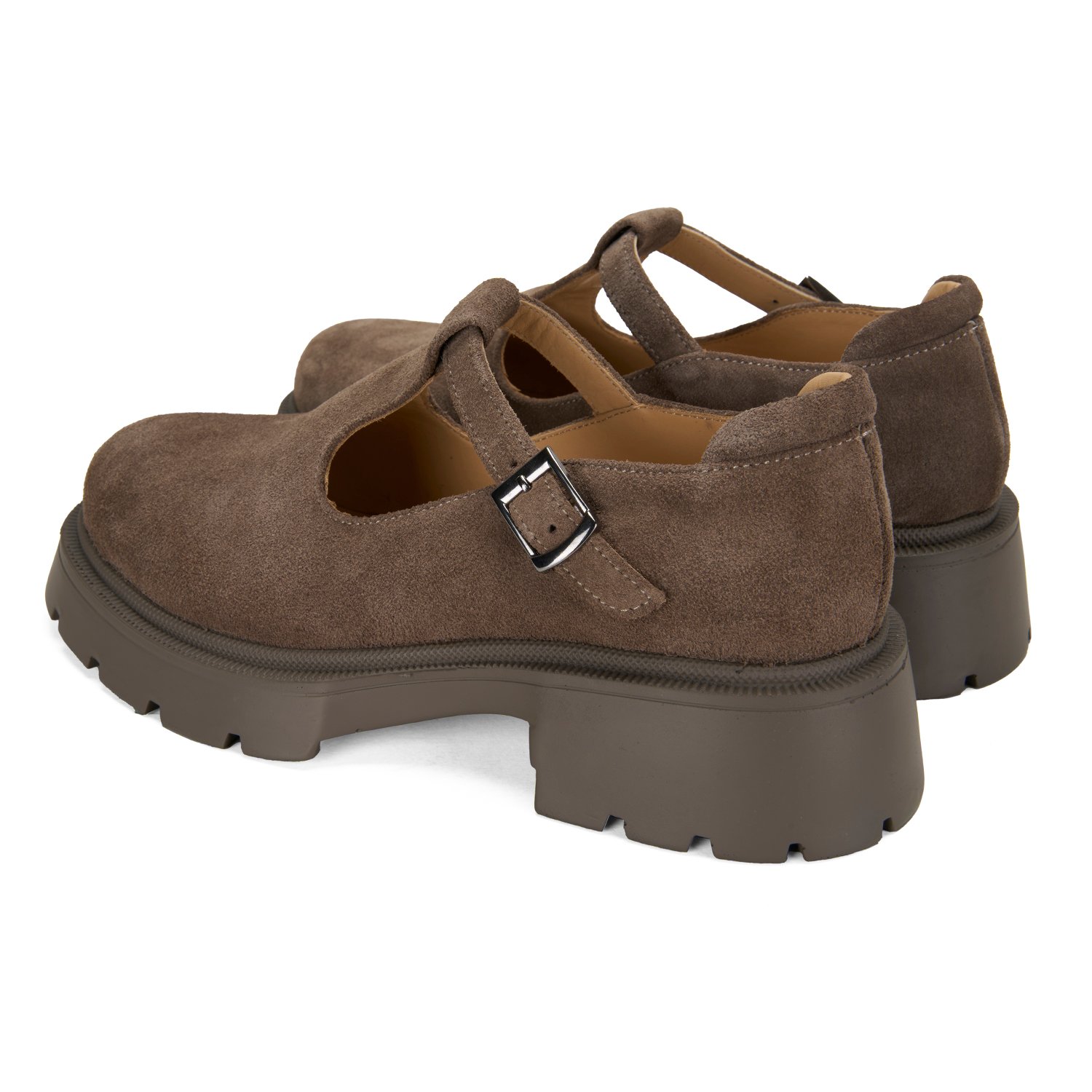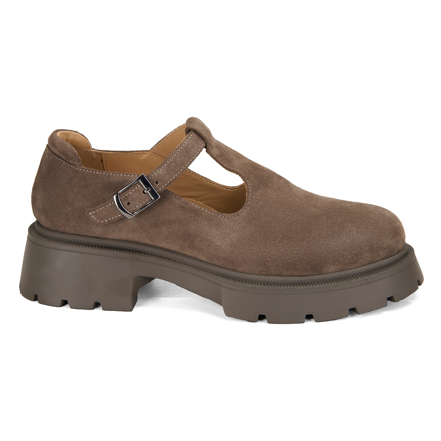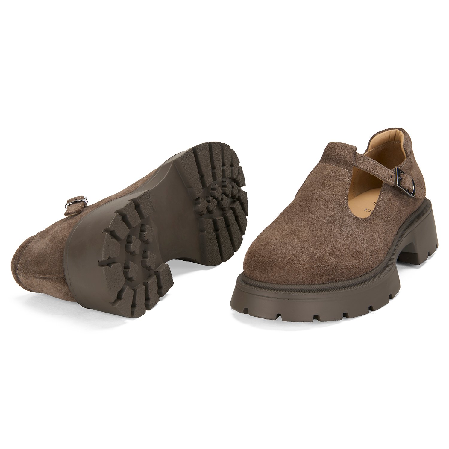 %100 süet deri, deri iç tabanlı, deri astarlı, pu tabanlı, ayarlanabilir metal tokalı kadın ayakkabı.