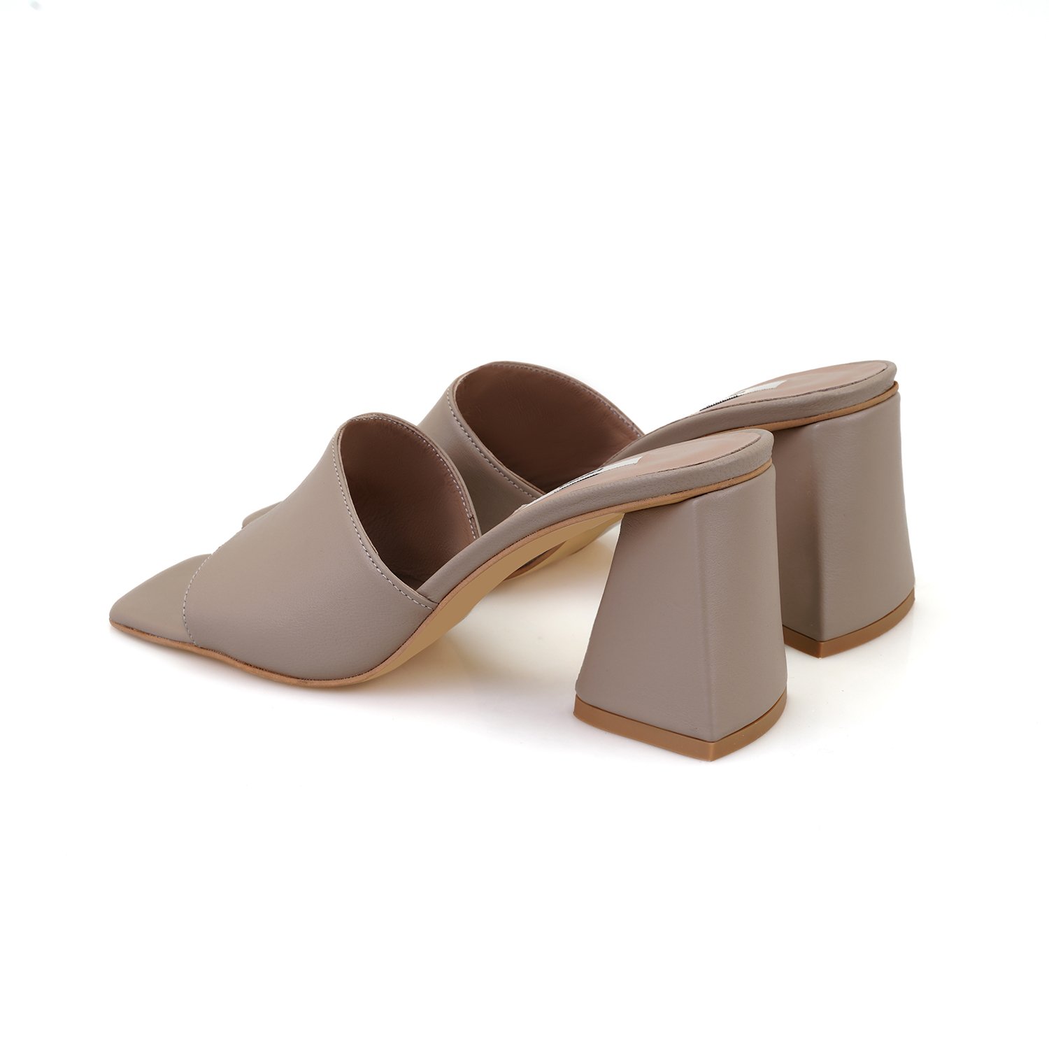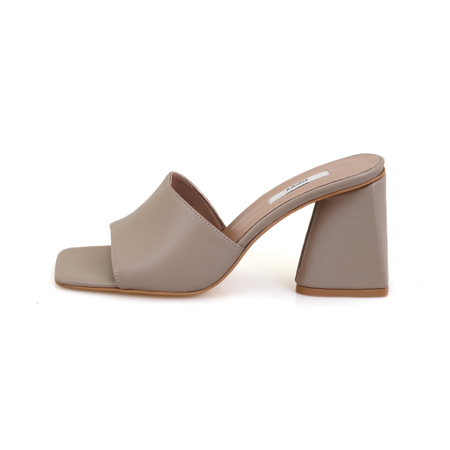 %100 deri, iç astarlı, mostra deri, neolit taban, kadın topuklu deri terlik.