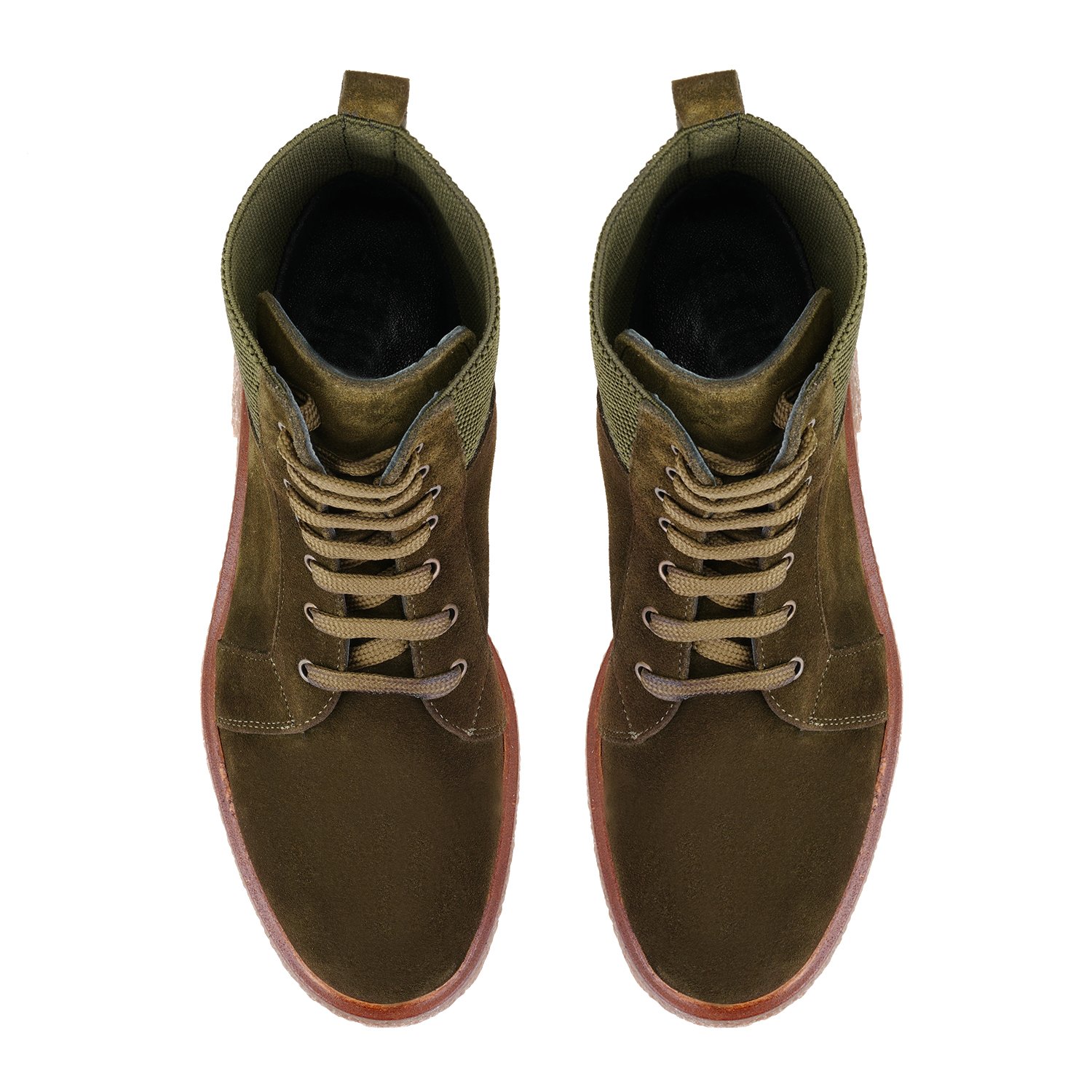 Kadın Yeşil Bağcıklı Süet Deri Postal Bot