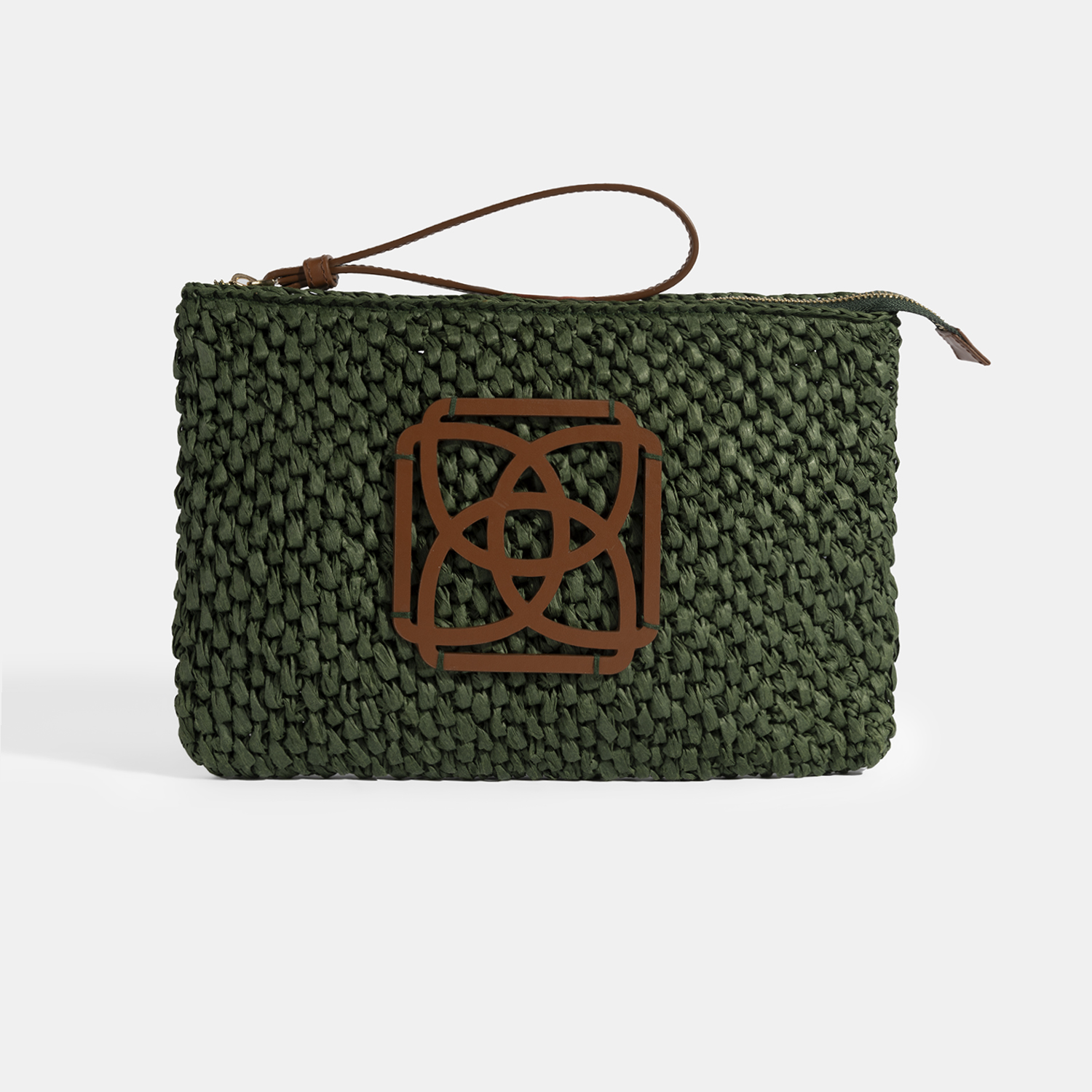 Kadın Yeşil Deri Detaylı Hasır El Çantası