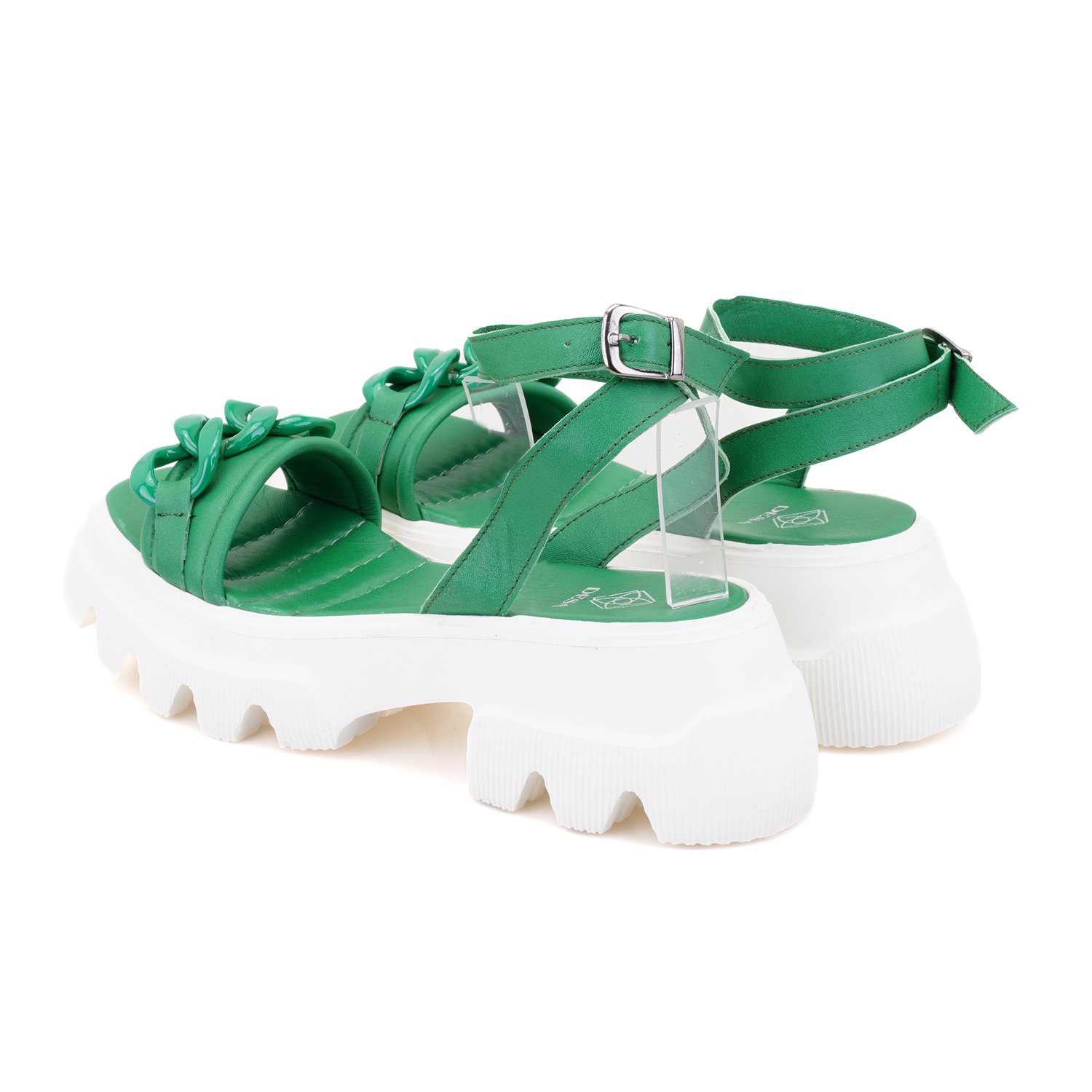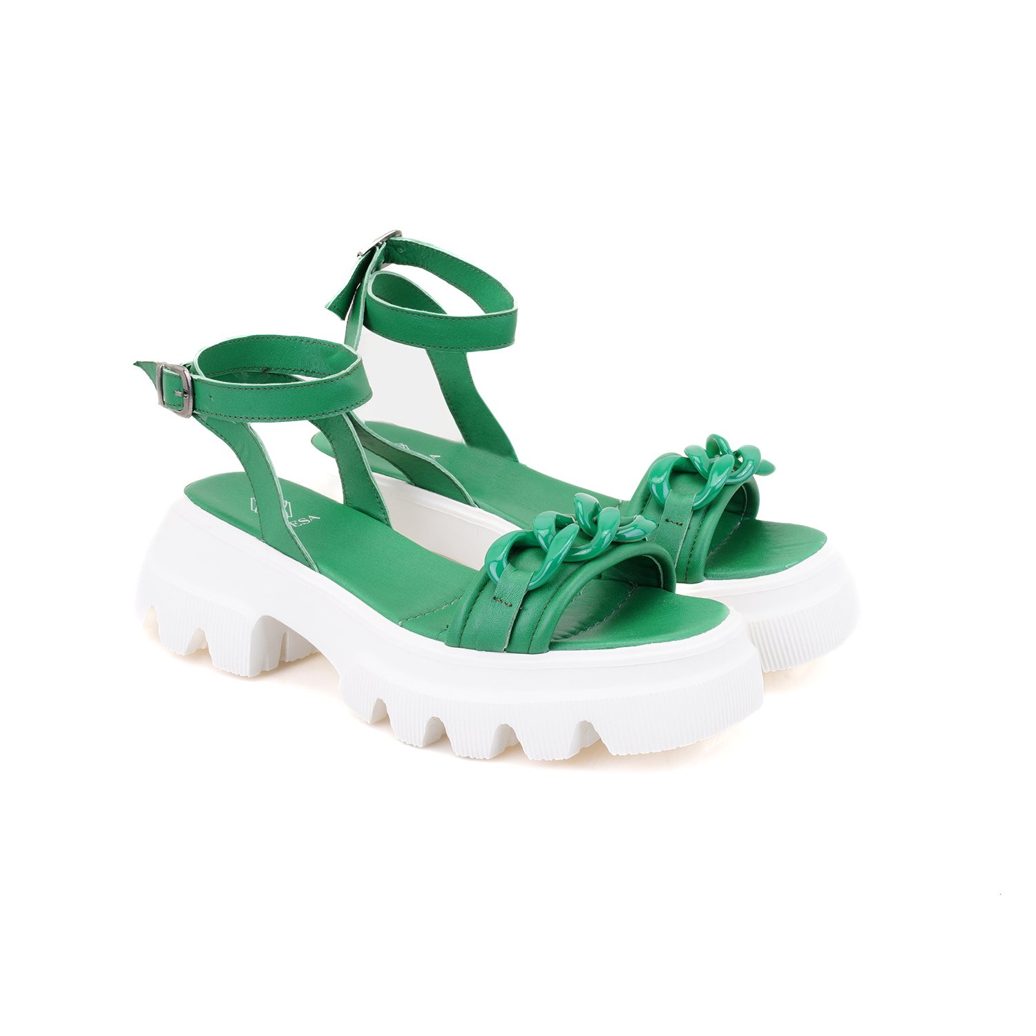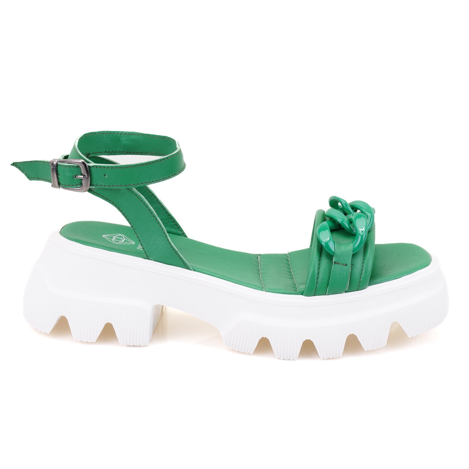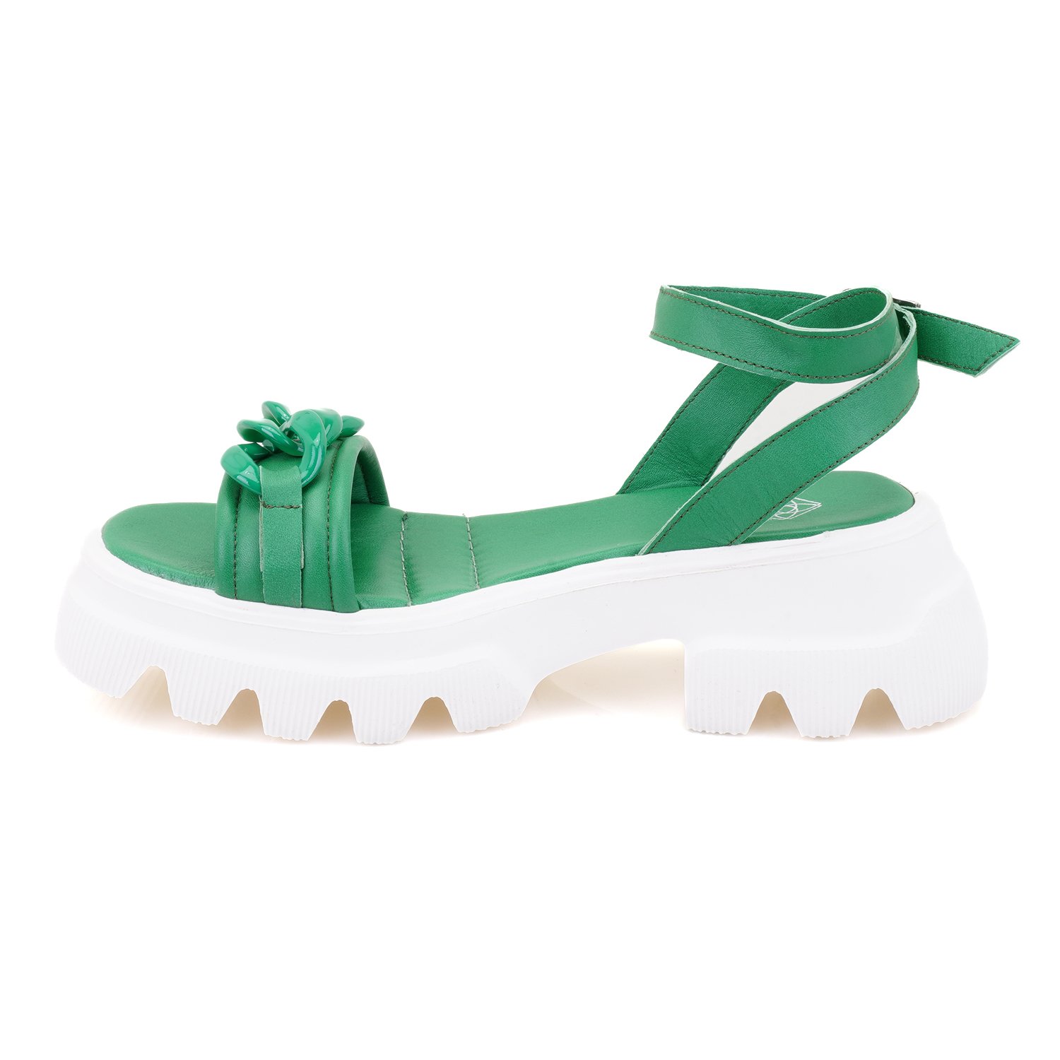 Napa deri,deri astarlı,deri iç tabanlı,derisi ile aynı renkte zincir aksesuarlı,ultra hafif eva tabanlı kadın sandalet.