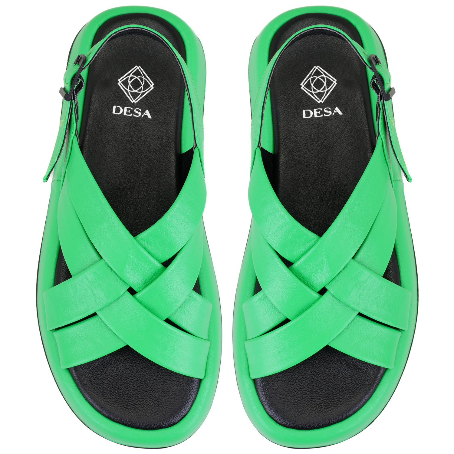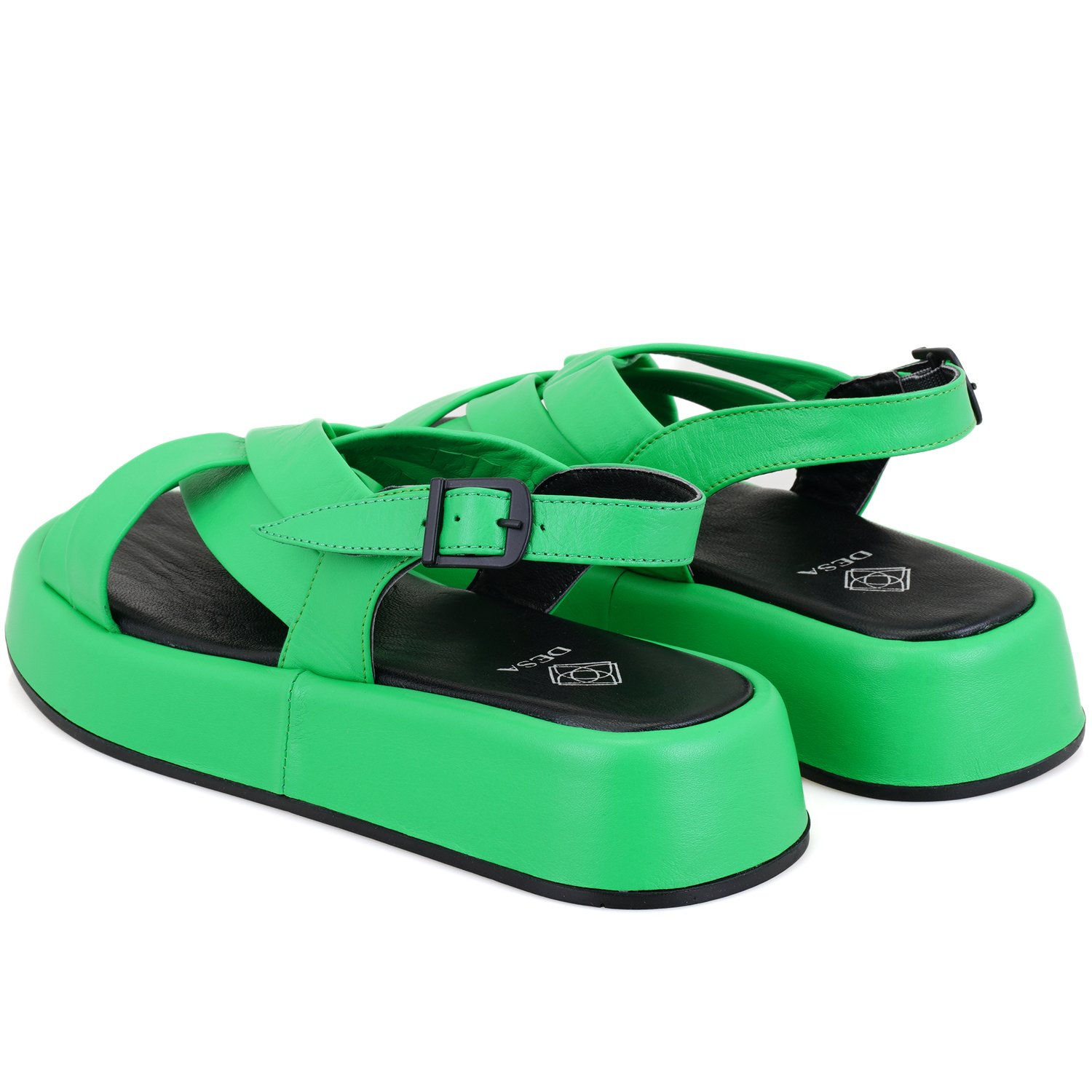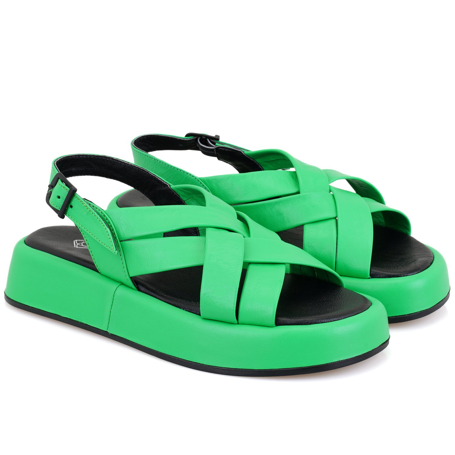 Kadın Yeşil Dolgu Tabanlı Deri Sandalet
