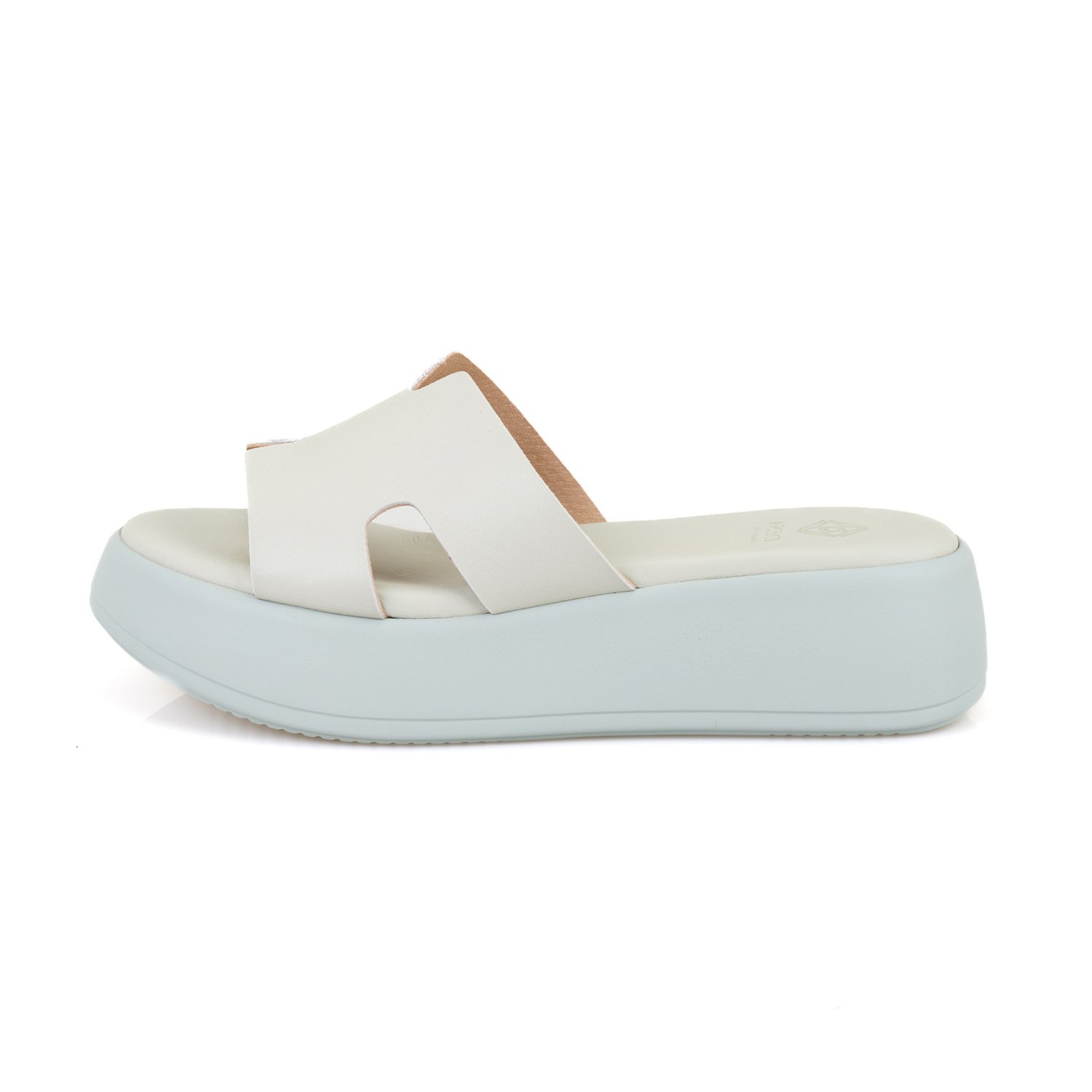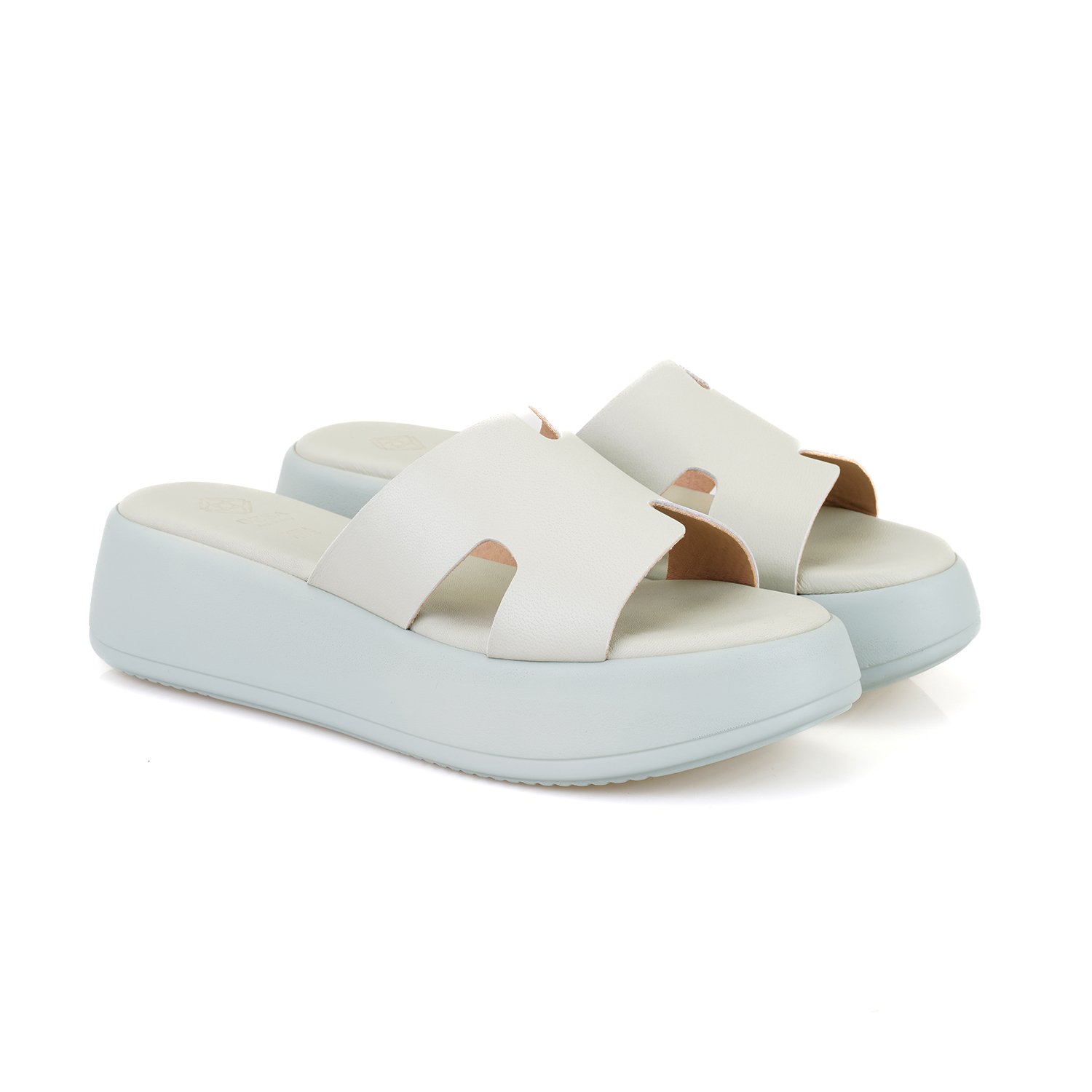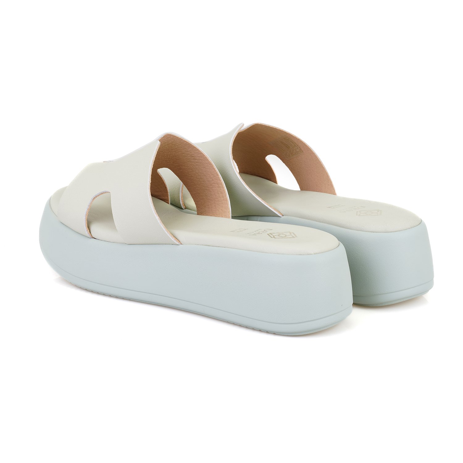 Kadın Yeşil Dolgu Topuklu Deri Terlik