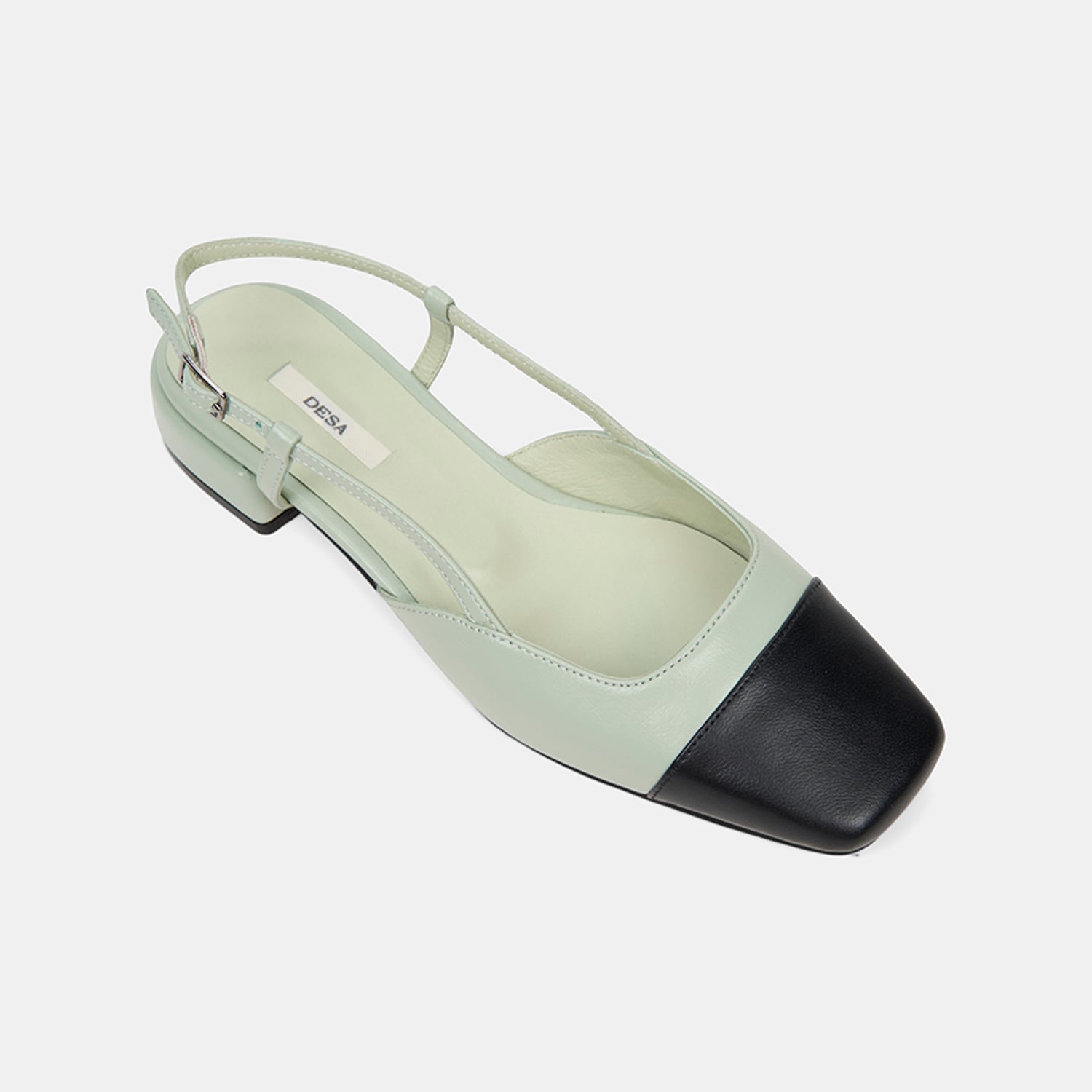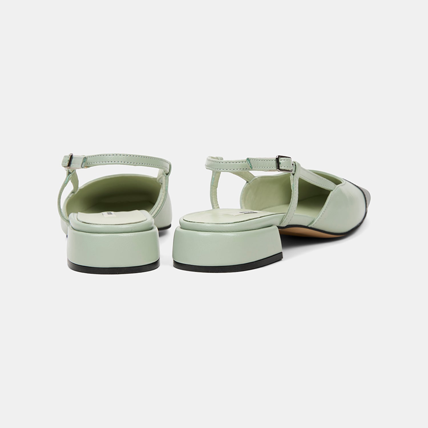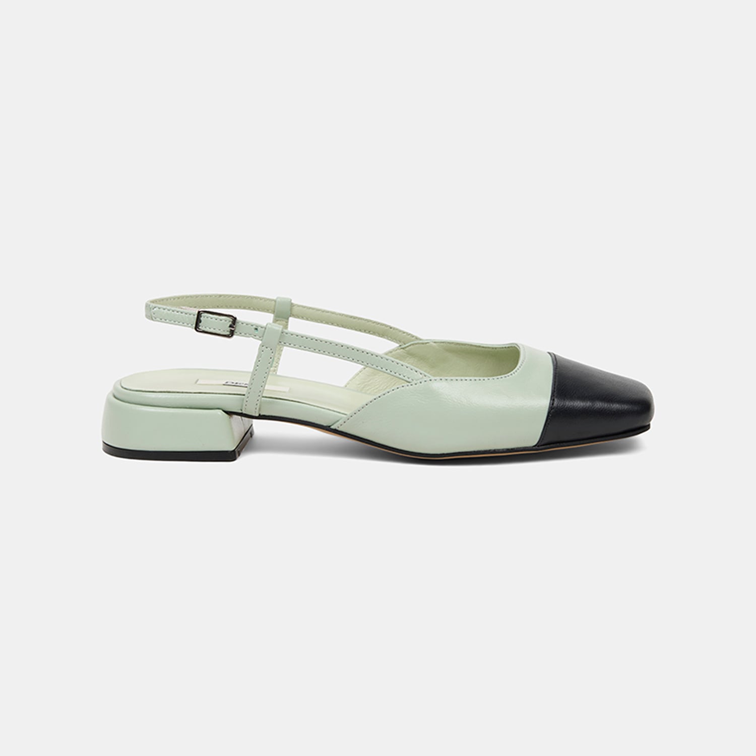 Kadın Yeşil Kare Burun Slingback Deri Günlük Ayakkabı