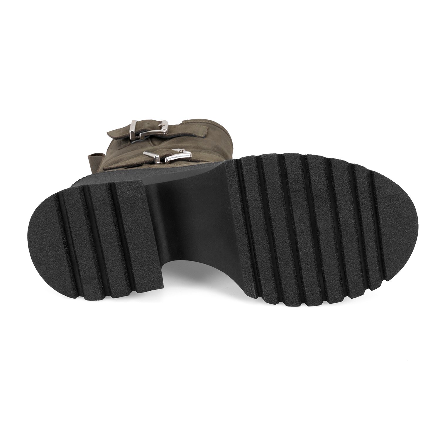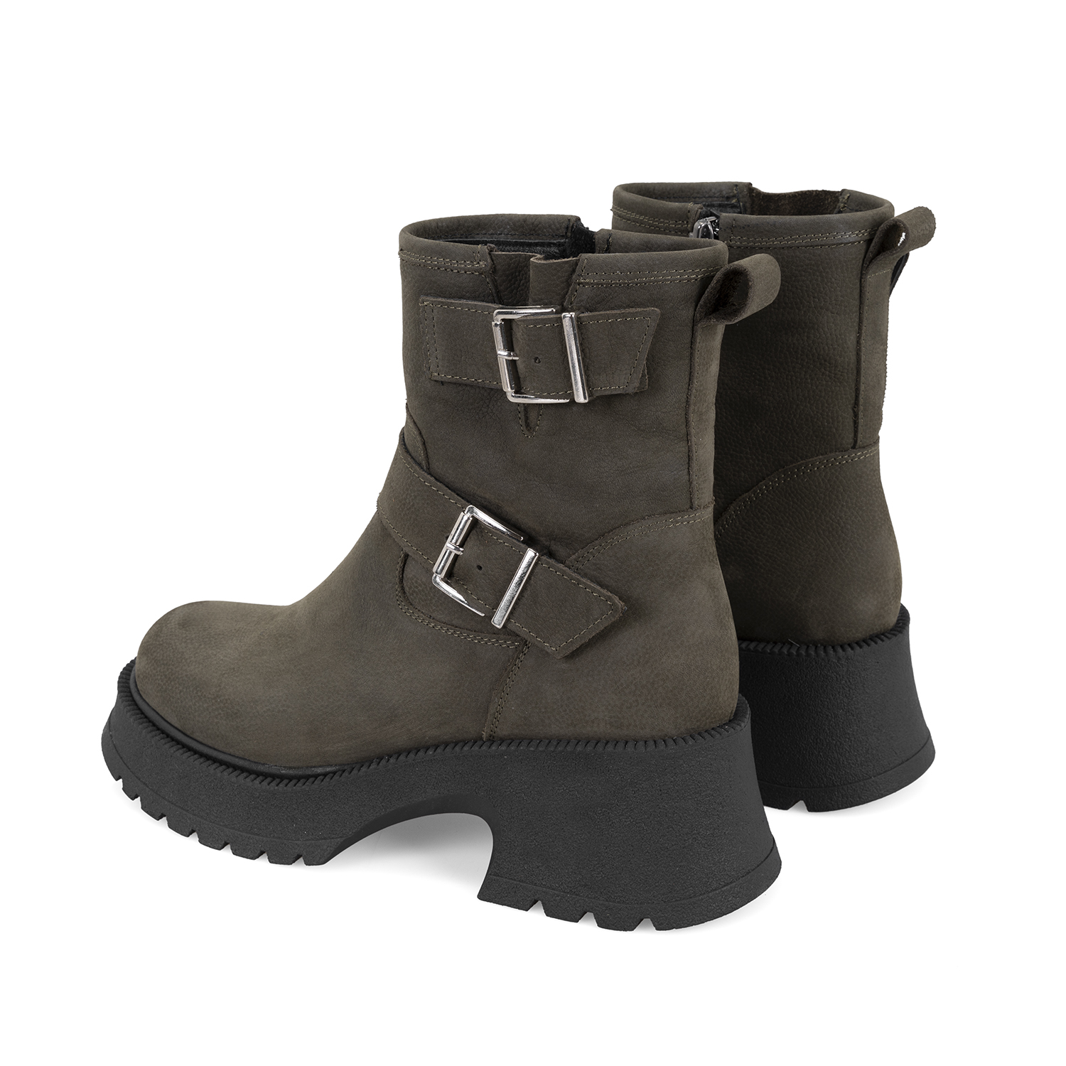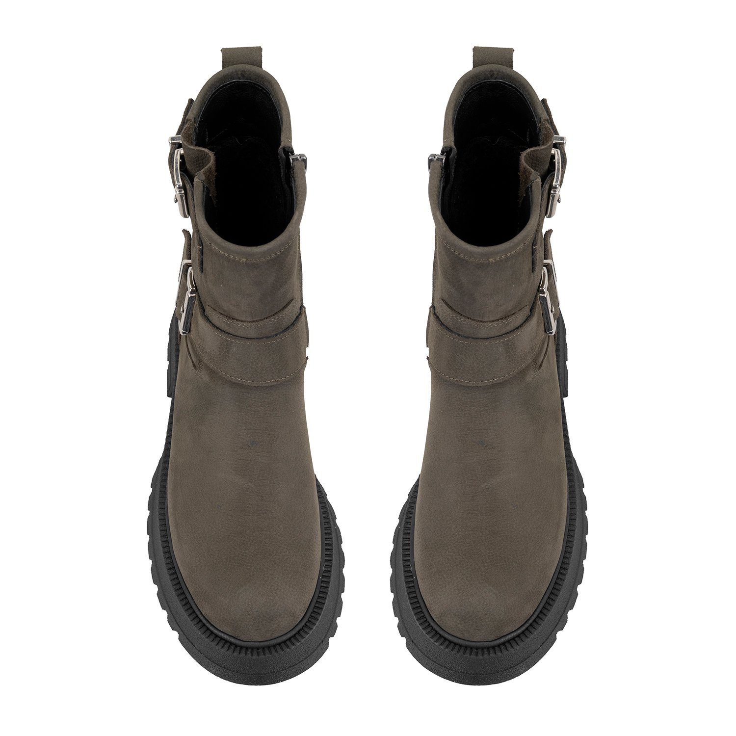 %100 nubuk deri, deri iç tabanlı, tekstil astarlı, termo tabanlı, çift metal toka detaylı, içten fermuarlı, kadın biker bot.