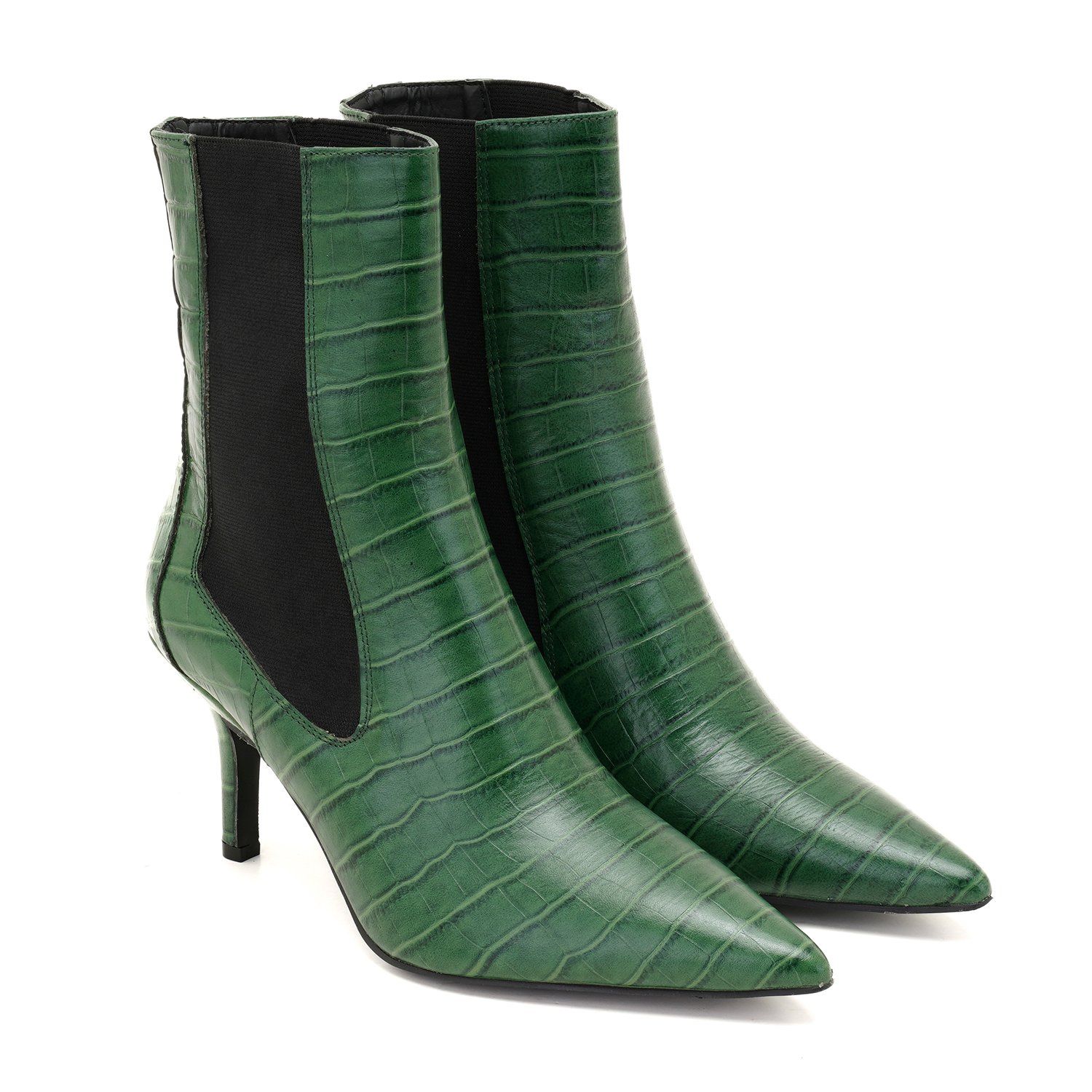 Kadın Yeşil Kroko Baskılı Deri Bot