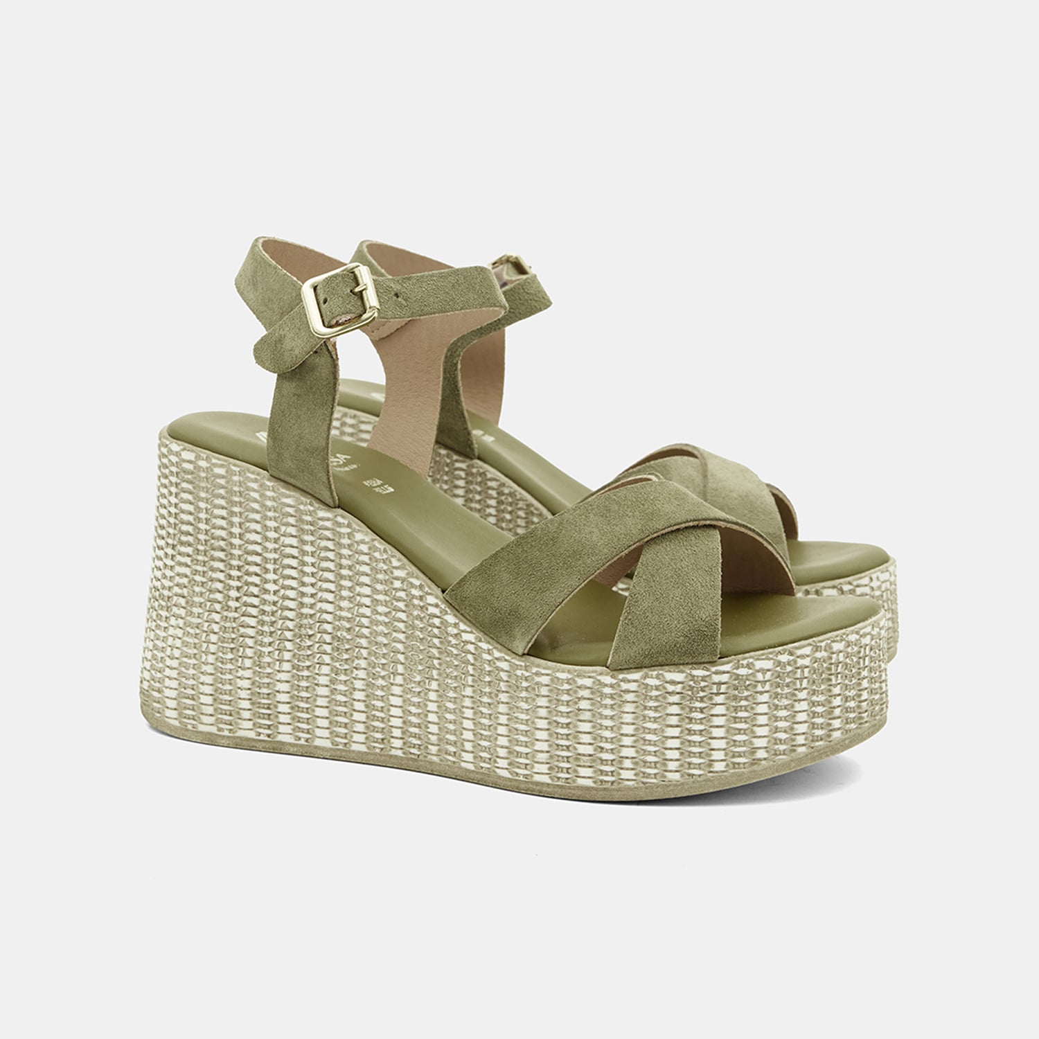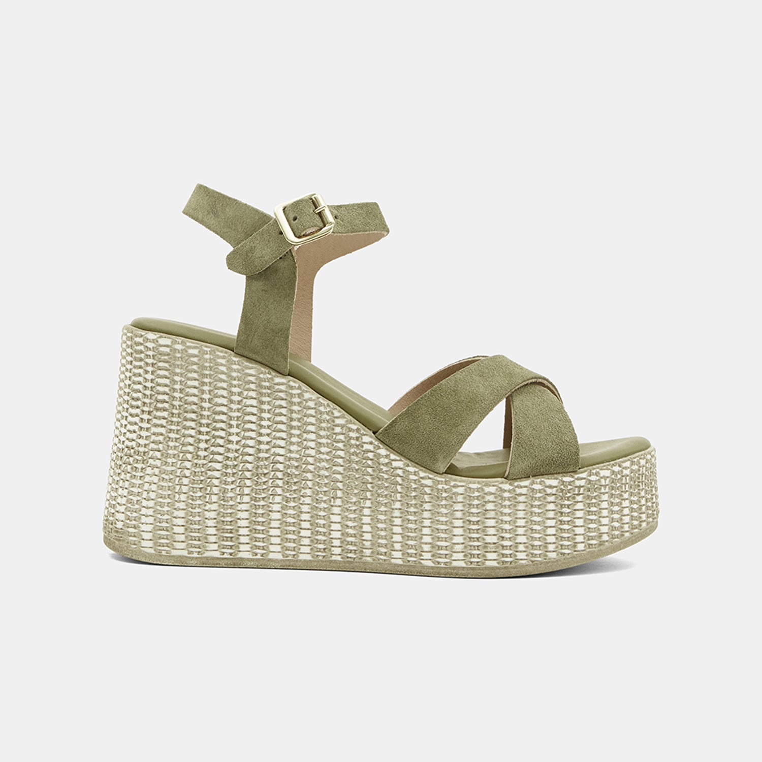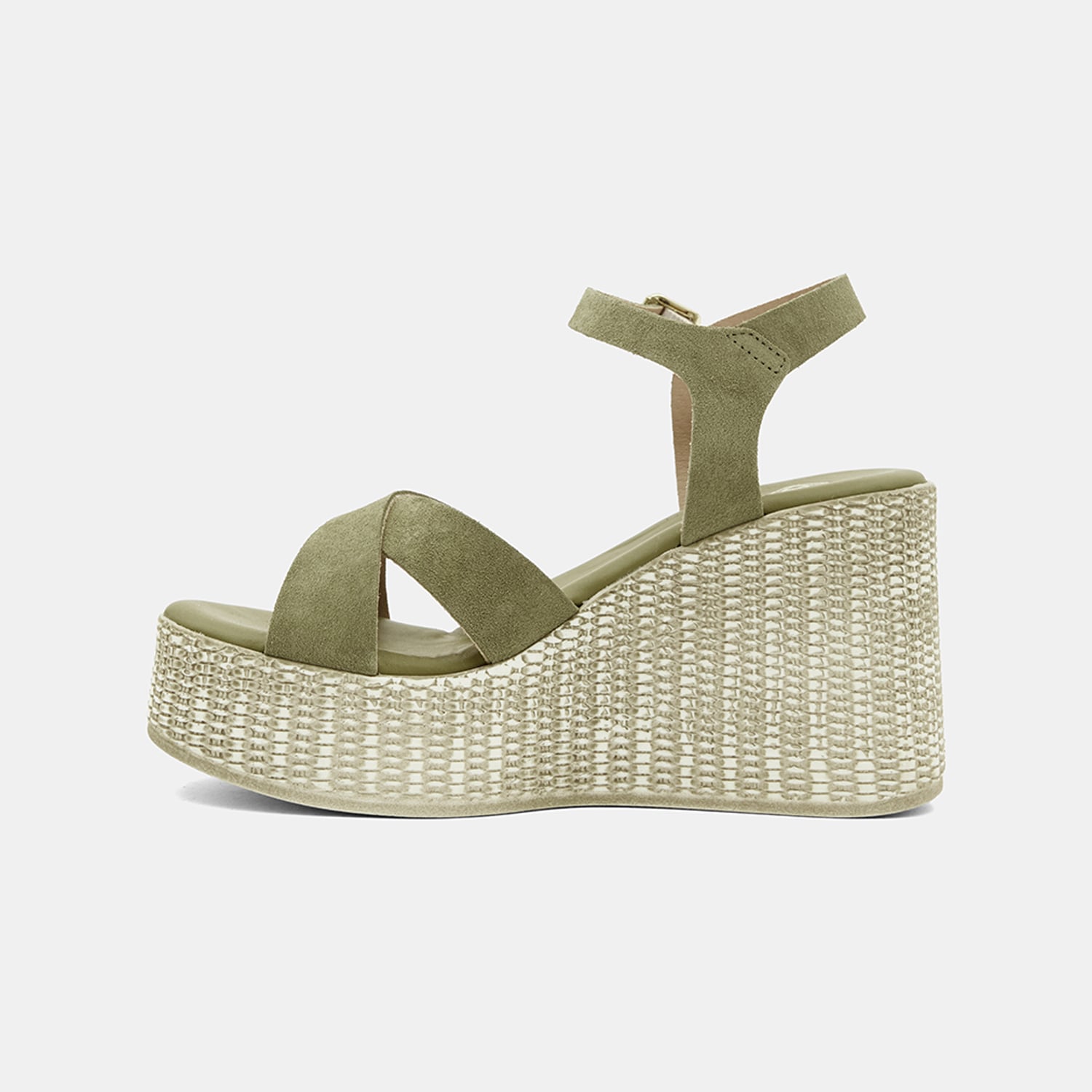 Kadın Yeşil Metal Tokalı Dolgu Topuklu Süet Sandalet