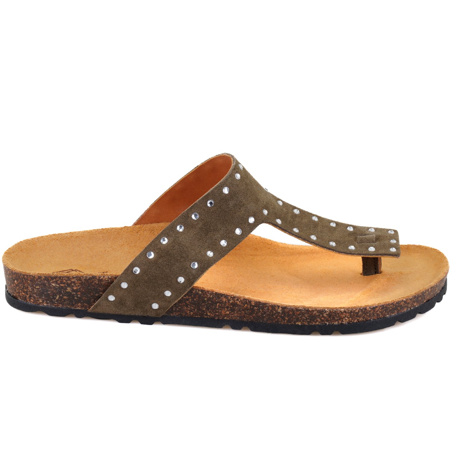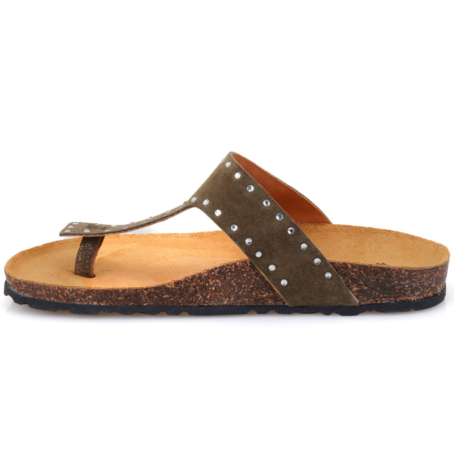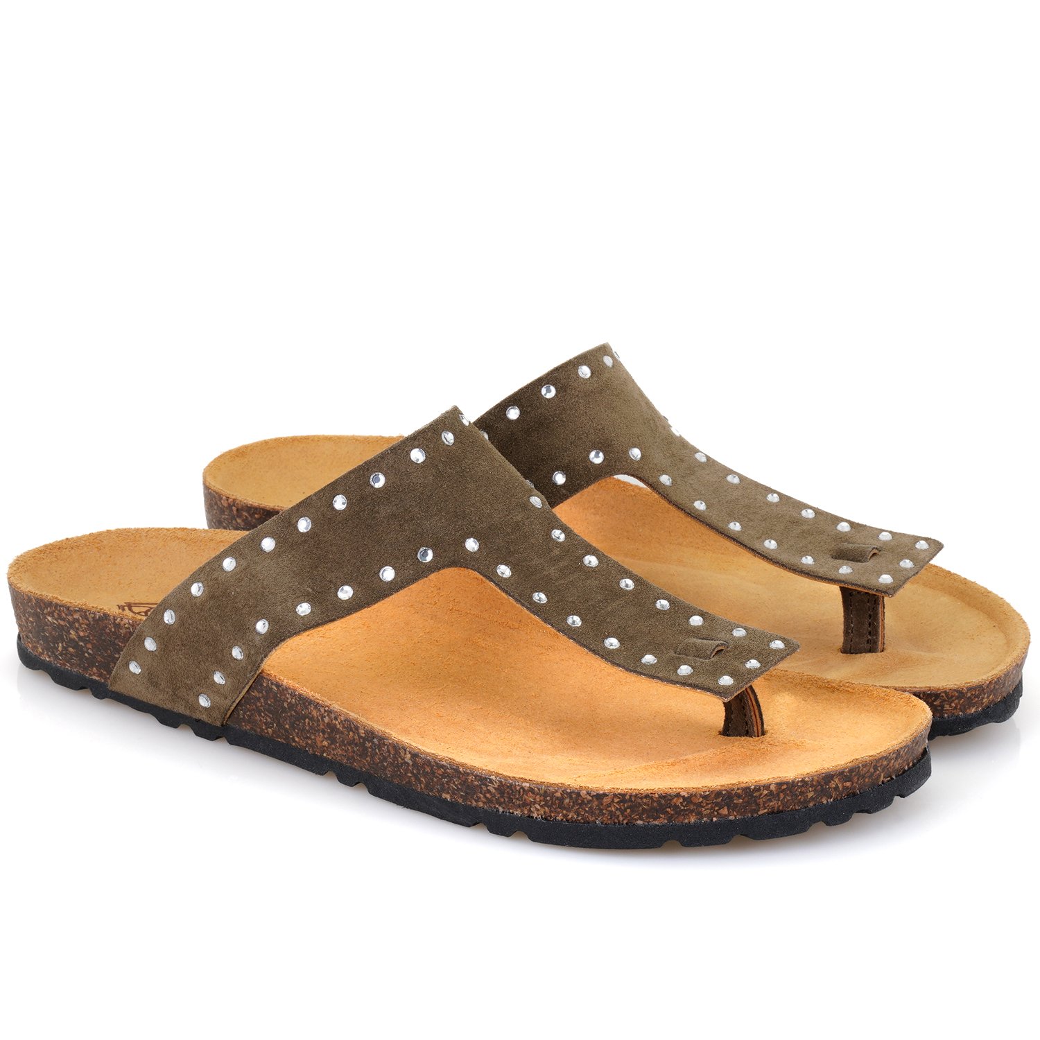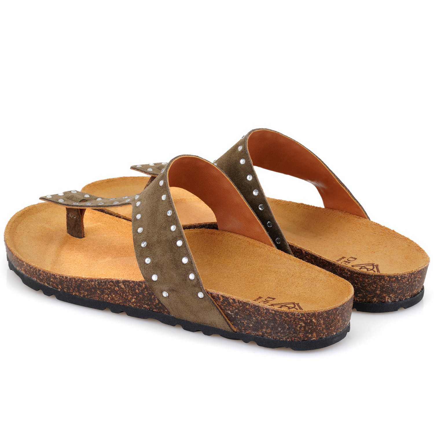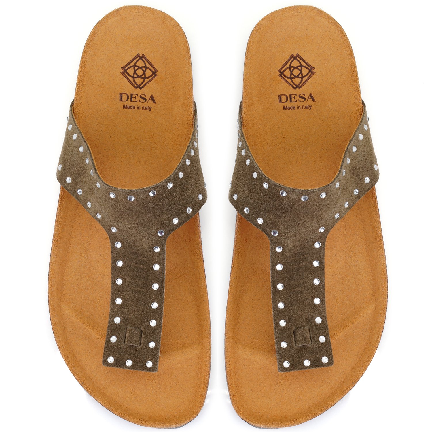 %100 süet, deri iç astarlı, deri iç tabanlı, parlak taş detaylı, mantar + tpu tabanlı,parmak arası kadın terlik.